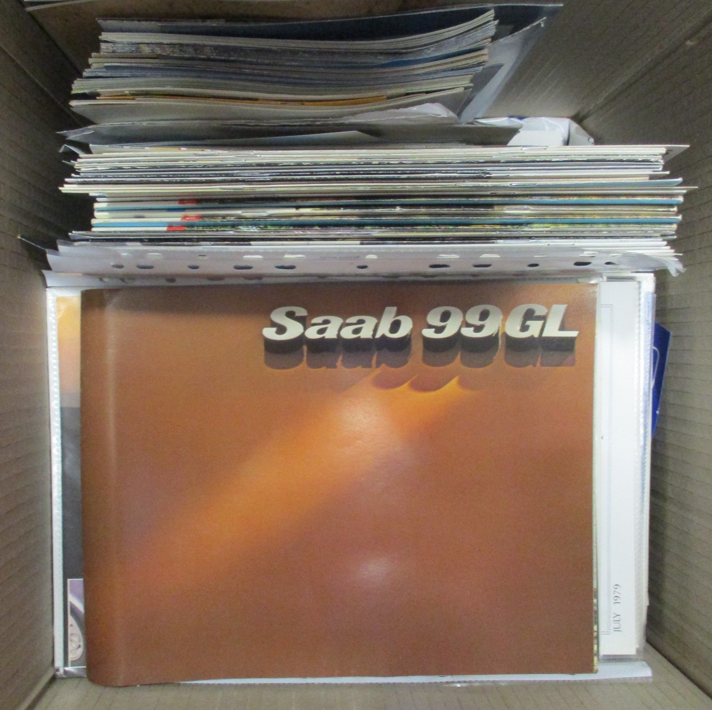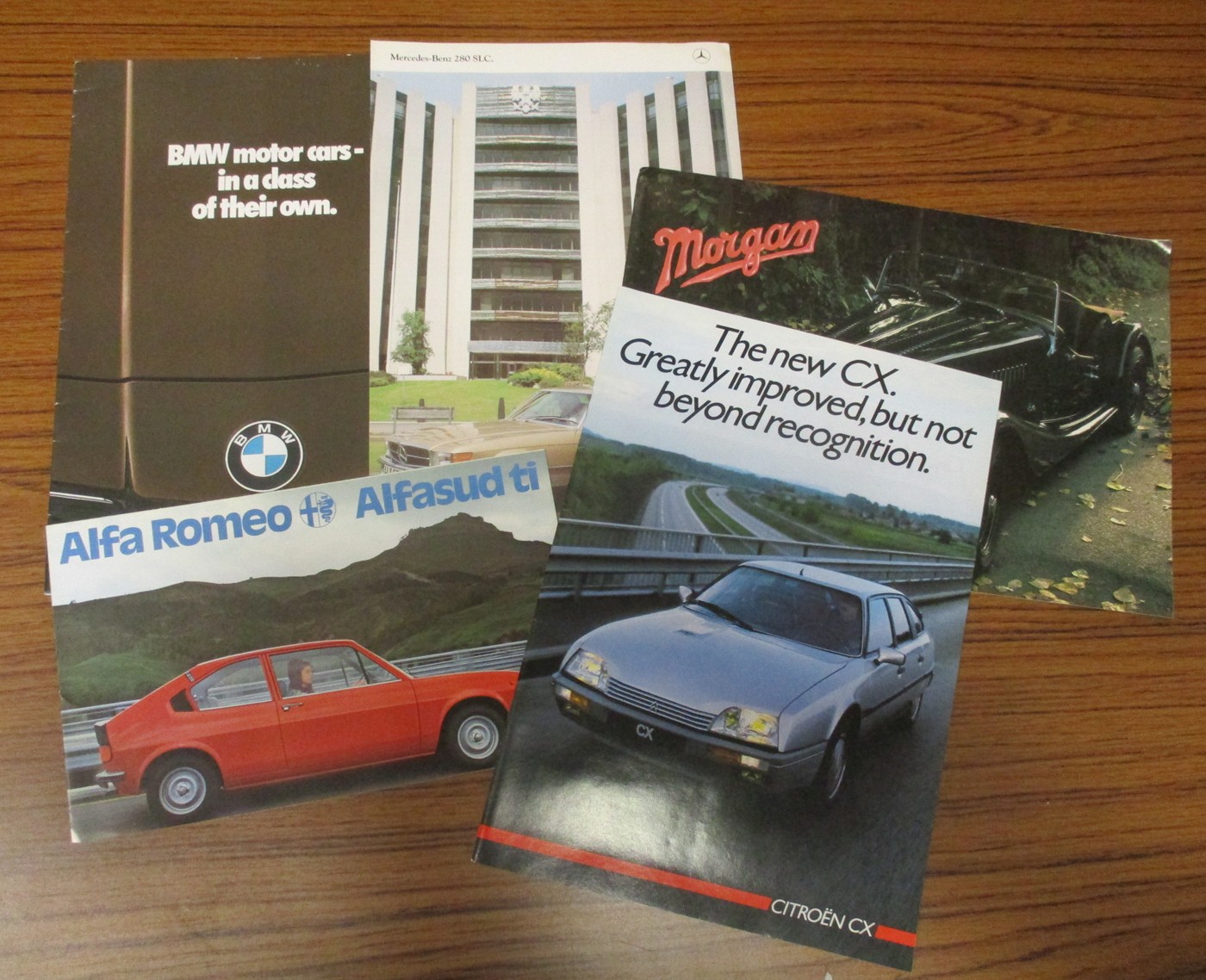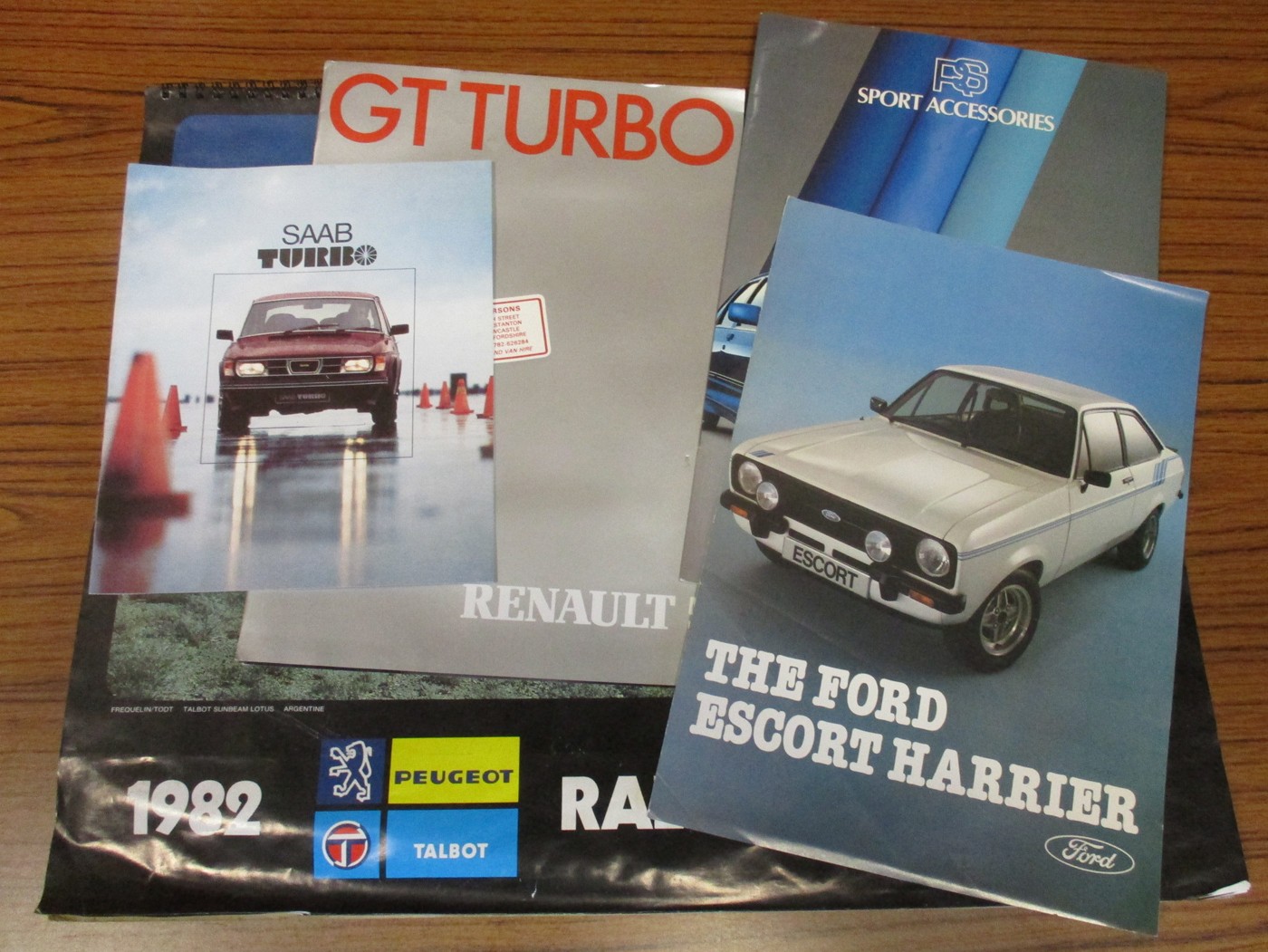 Motoring. 1970s onwards collection of car and truck brochures, price lists, colour and trim booklets, generally good plus to excellent, with Alfa Romeo, BMW, Porsche, Maserati, Lotus, Mercedes-Benz, Saab, etc., plus 1982 Peugeot Talbot Rally Champions calendar. Some duplication. Viewing highly recommended. BUYER MUST COLLECT Qty approx. 250+ (4B+Calendar)