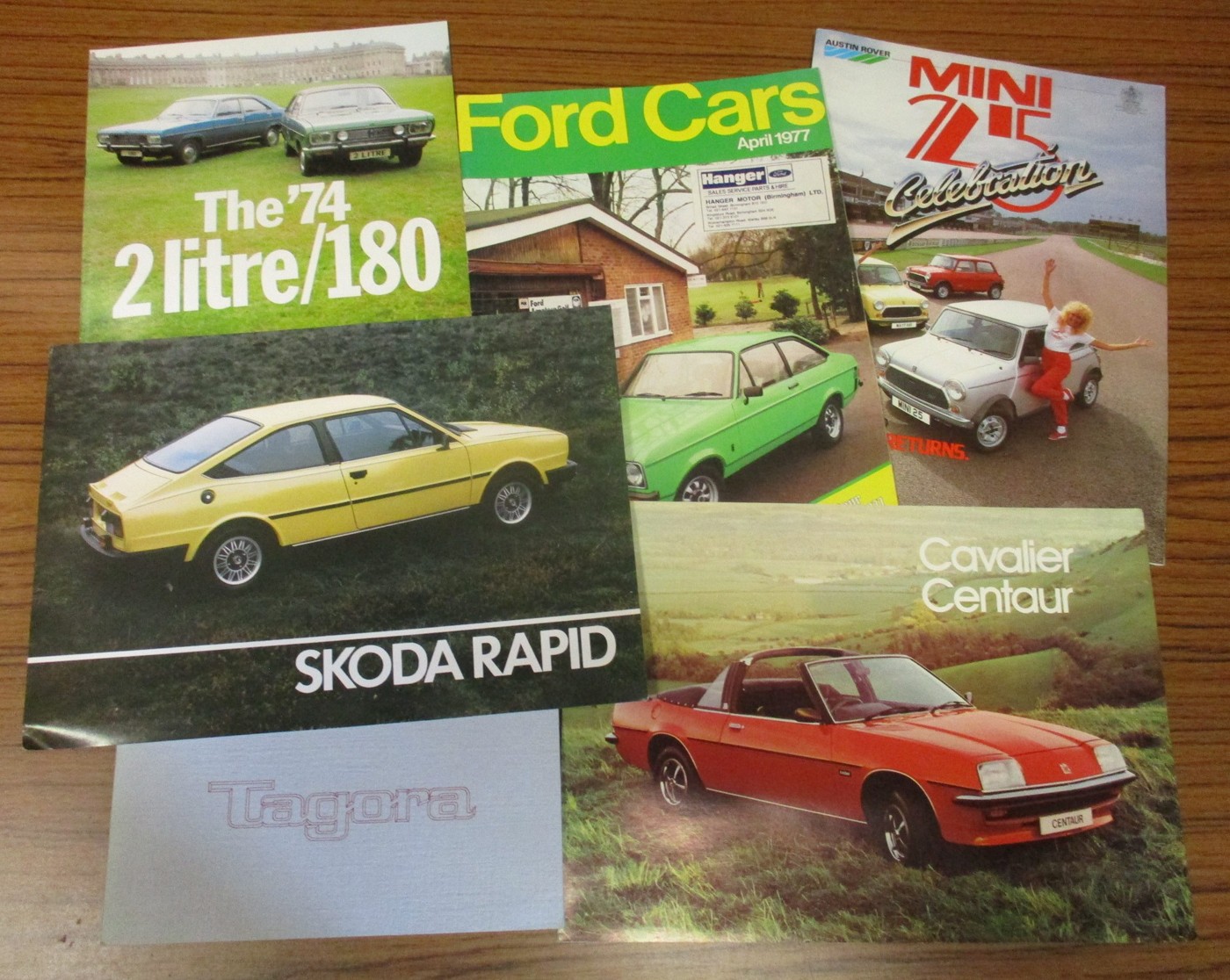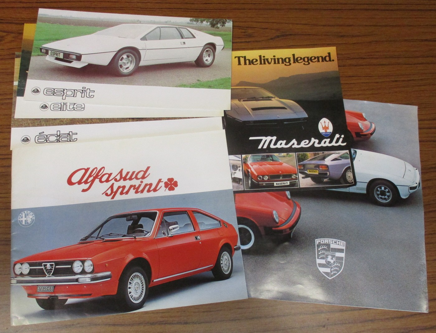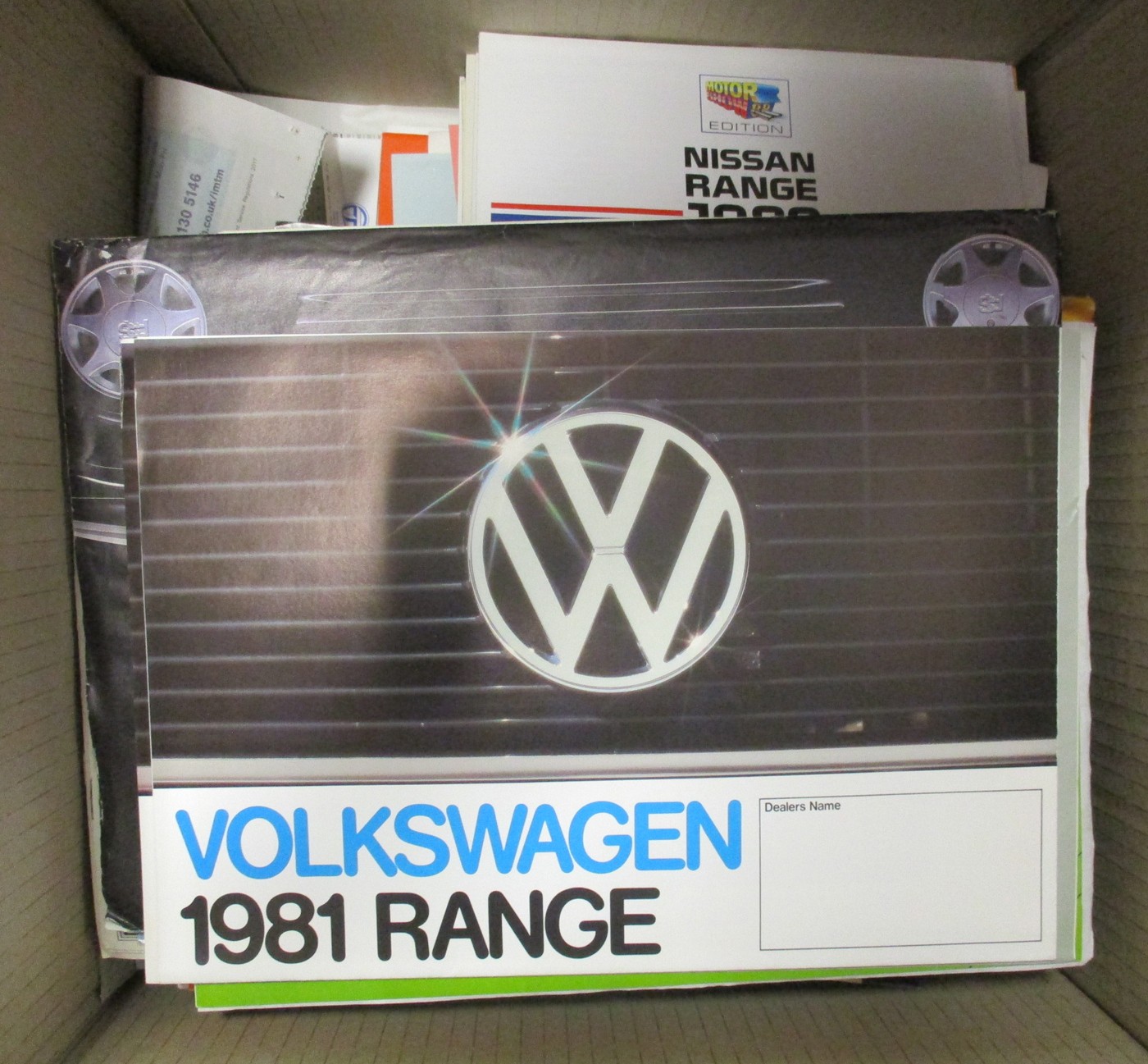 Motoring. 1970s onwards collection of car and truck brochures, price lists, colour and trim booklets, generally good plus to excellent, with Alfa Romeo, BMW, Porsche, Maserati, Lotus, Mercedes-Benz, Saab, etc., plus 1982 Peugeot Talbot Rally Champions calendar. Some duplication. Viewing highly recommended. BUYER MUST COLLECT Qty approx. 250+ (4B+Calendar)