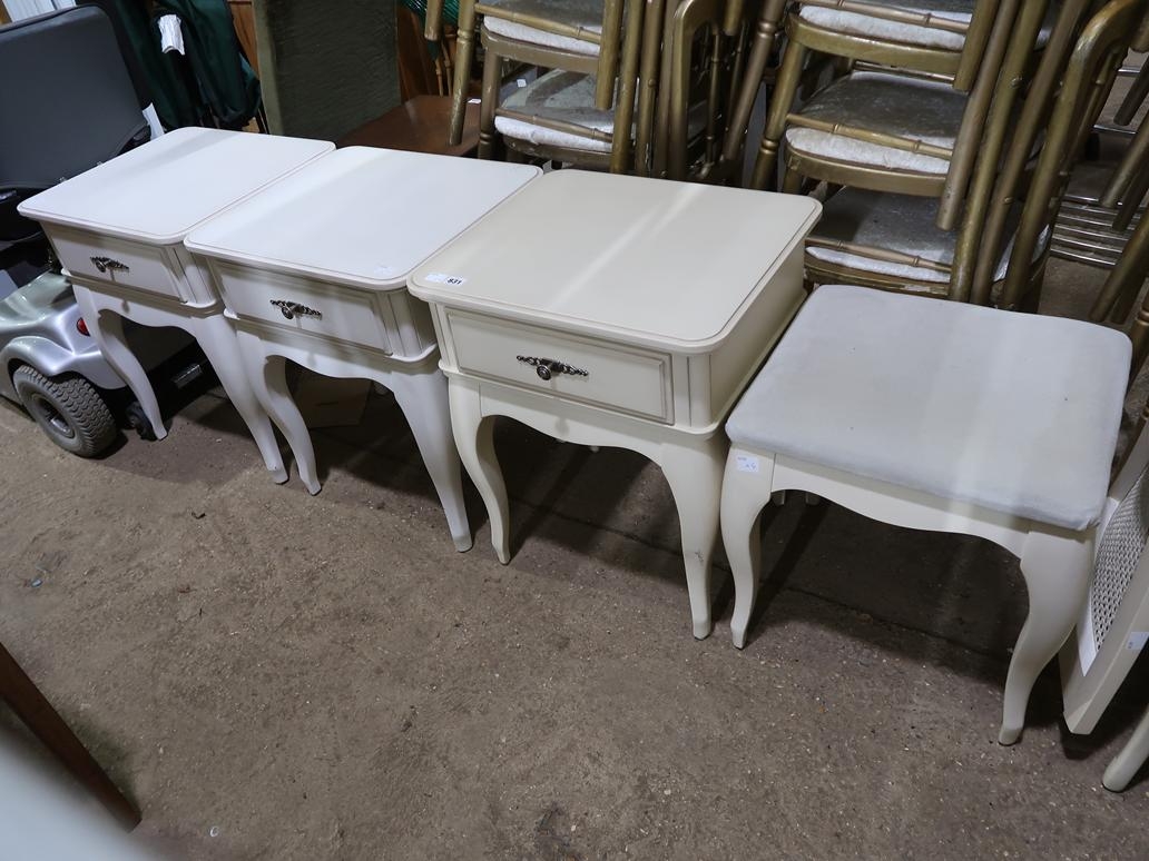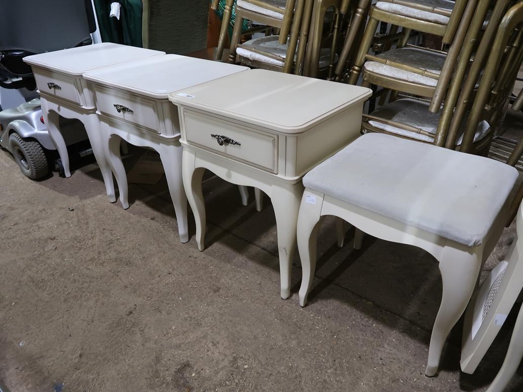 THREE BEDSIDE CHESTS; STOOL