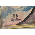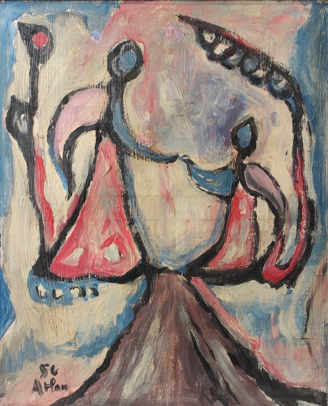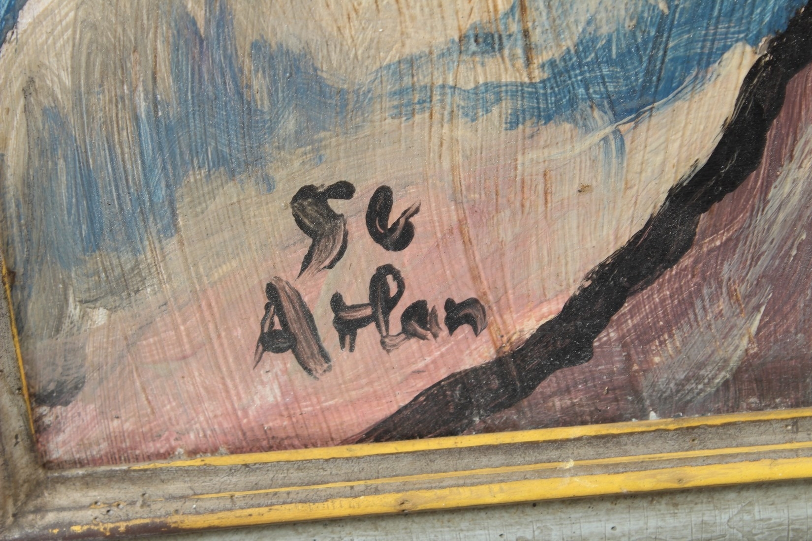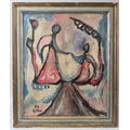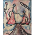 POSSIBLY EUROPEAN SCHOOL Two stylised figures in a landscape oil on canvas signed indistinctly 60 x 49cm