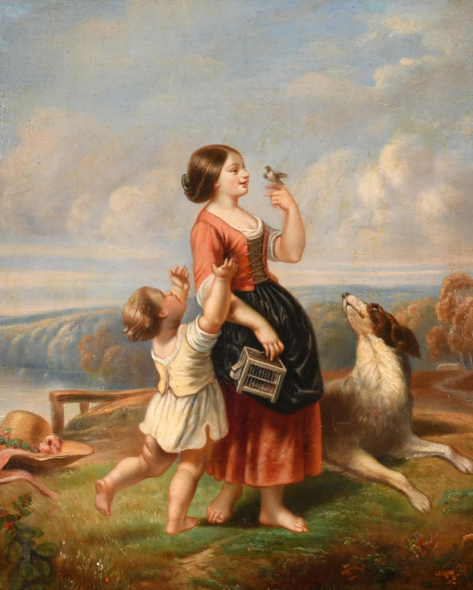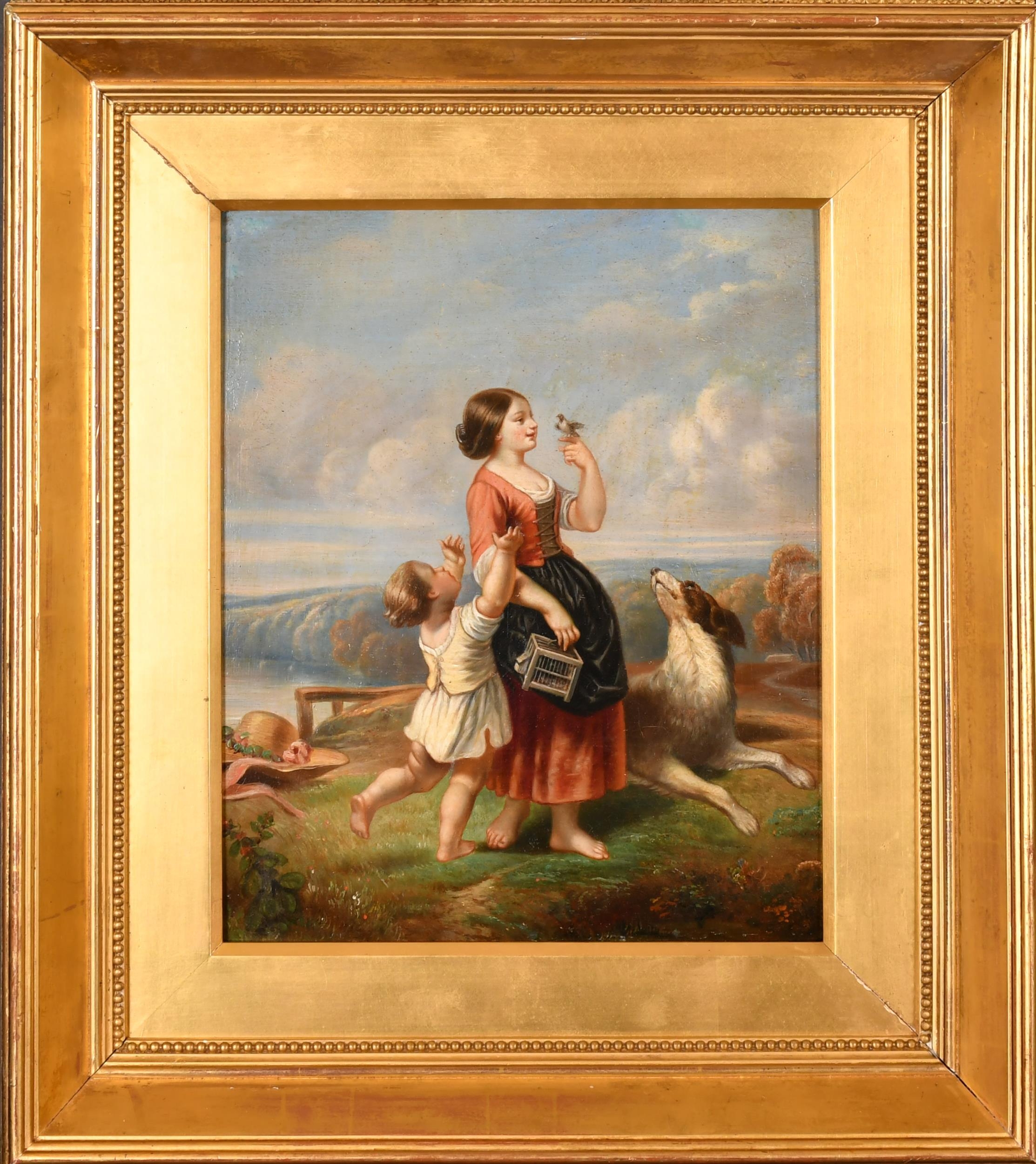 Circle of Charles Theodore Frere (1814-1888) French. 'The Pet Bird', Oil on board, 12.5" x 10" (31.8 x 25.4cm)