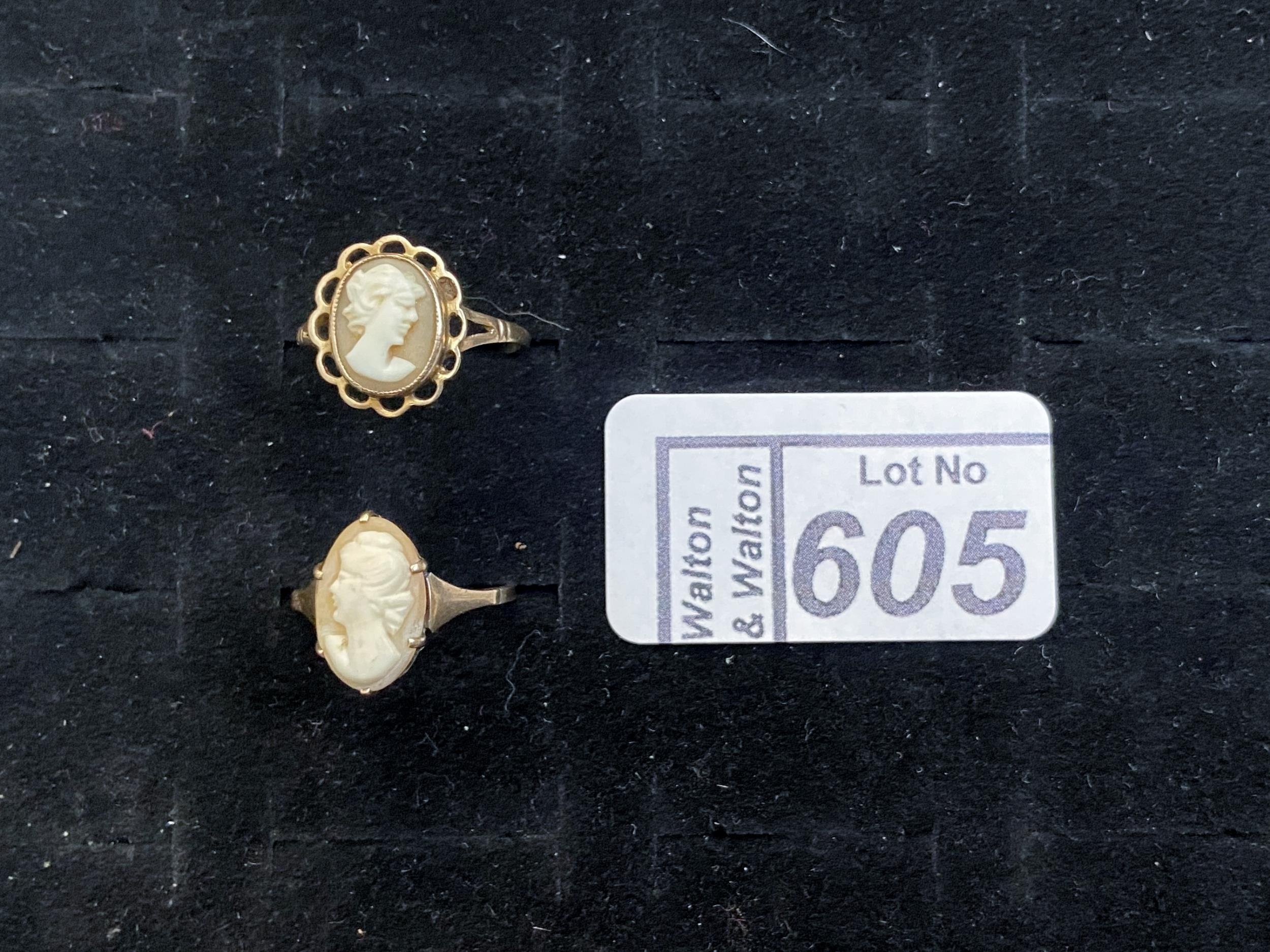 Pair of 9t gold cameo rings - Only 10% buyer's premium
