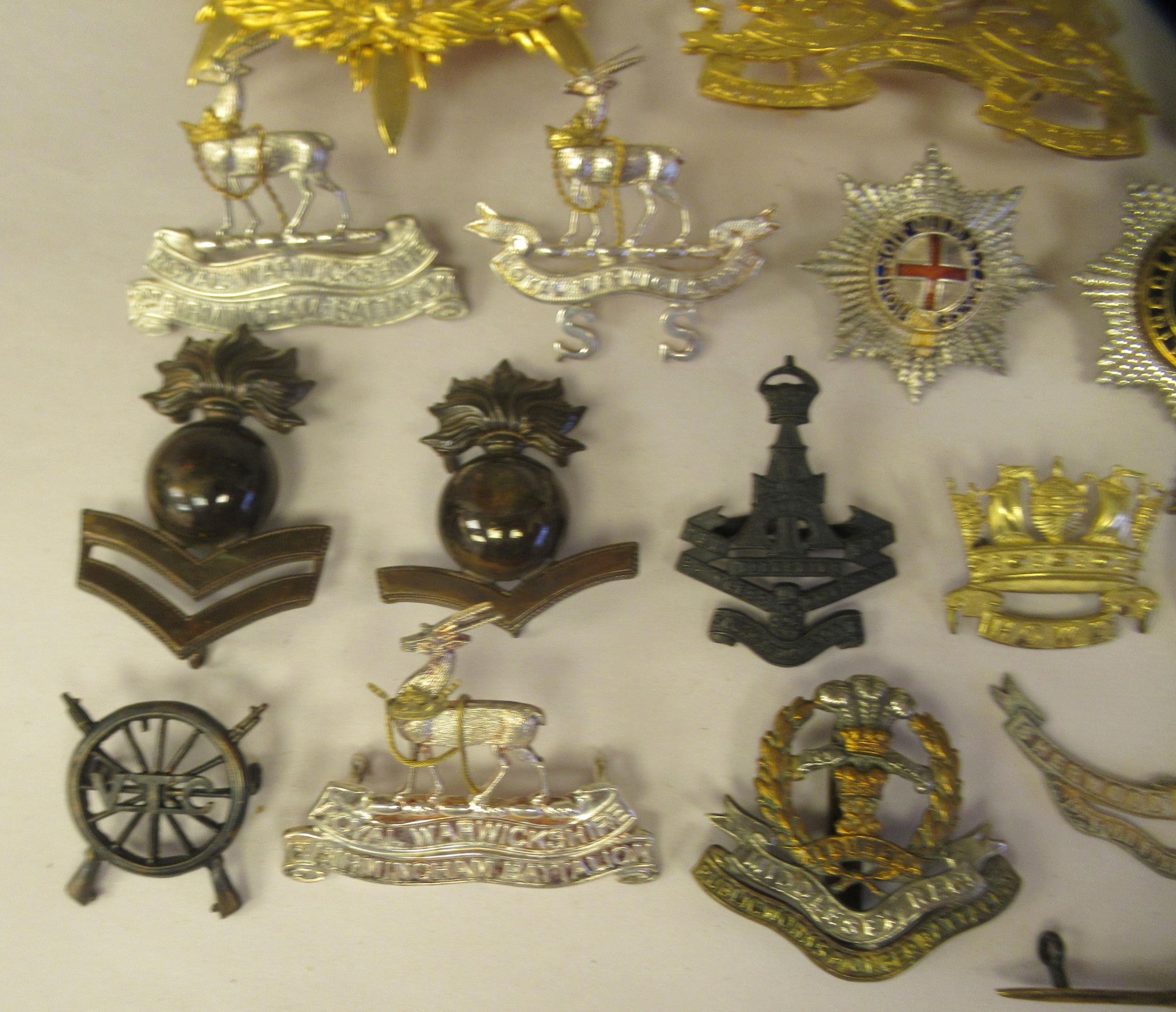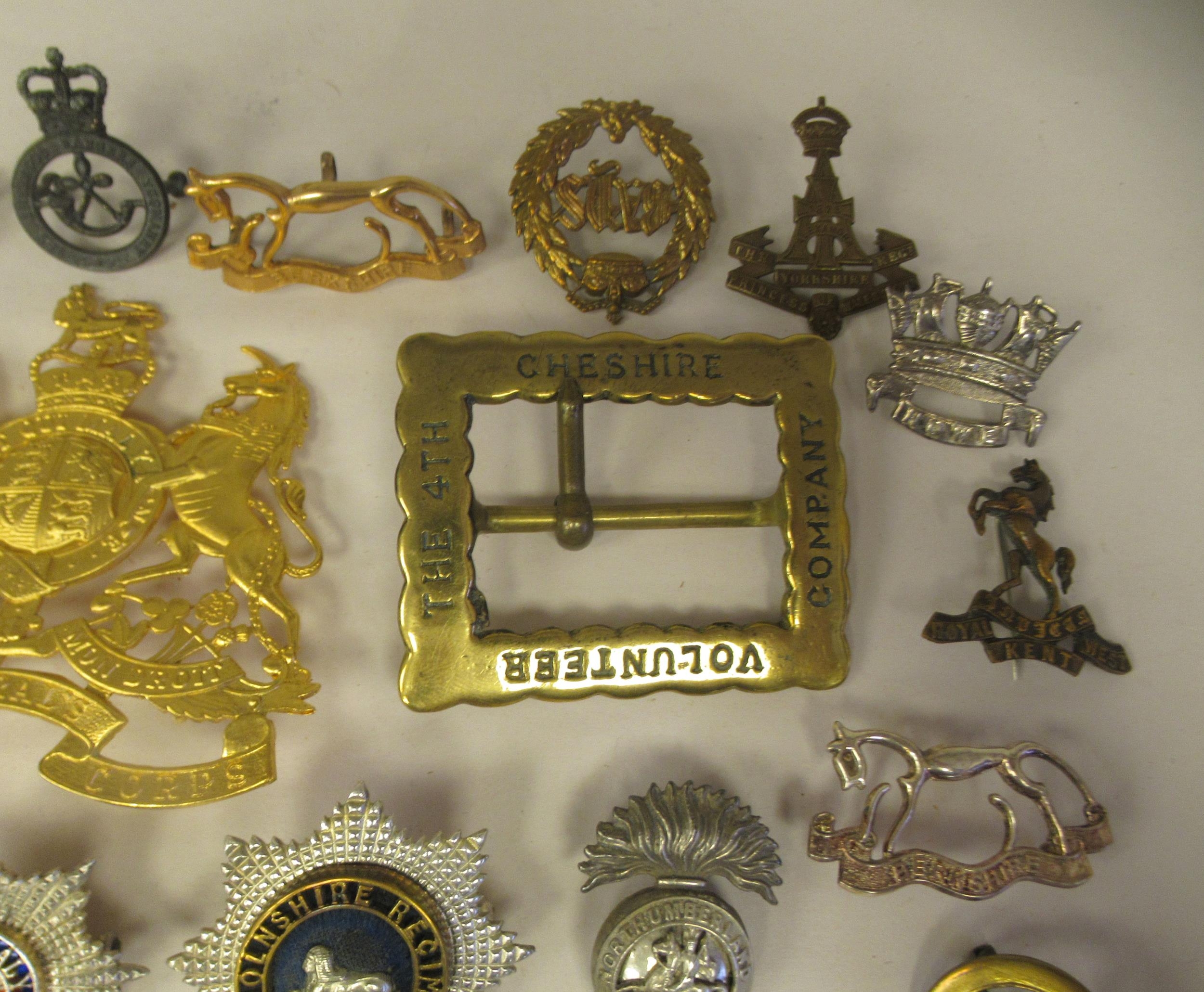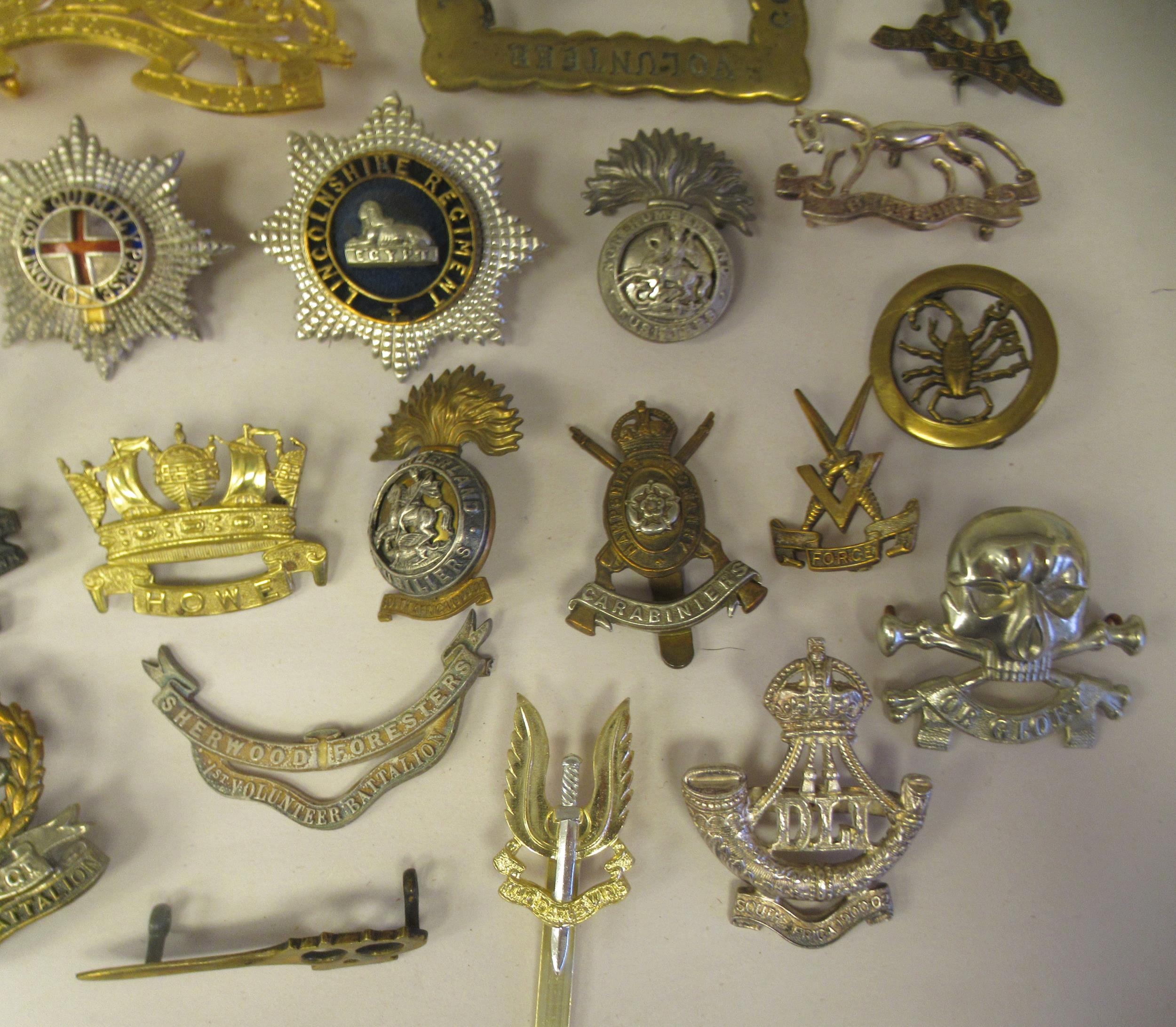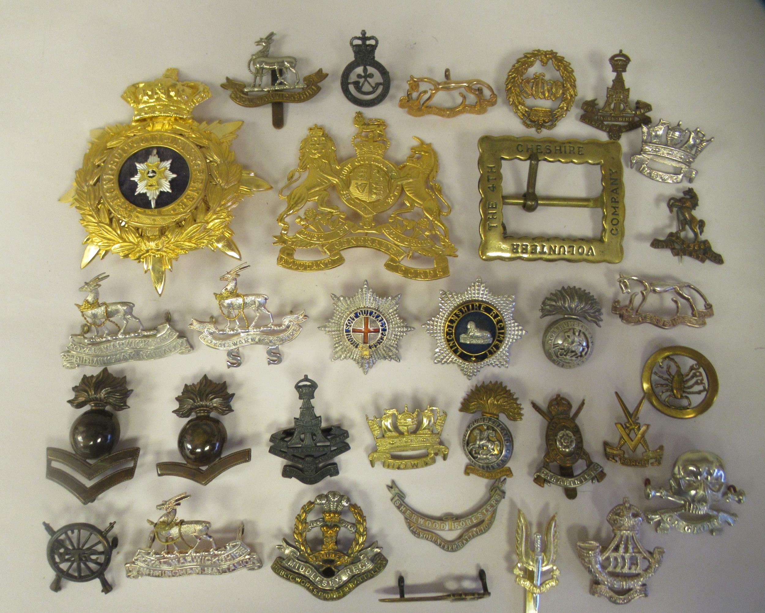 Approx. thirty-two military cap badges and other insignia, some copies: to include the 4th Cheshire Volunteer Company, The Royal Warwickshire and BADS