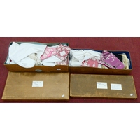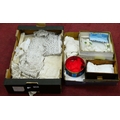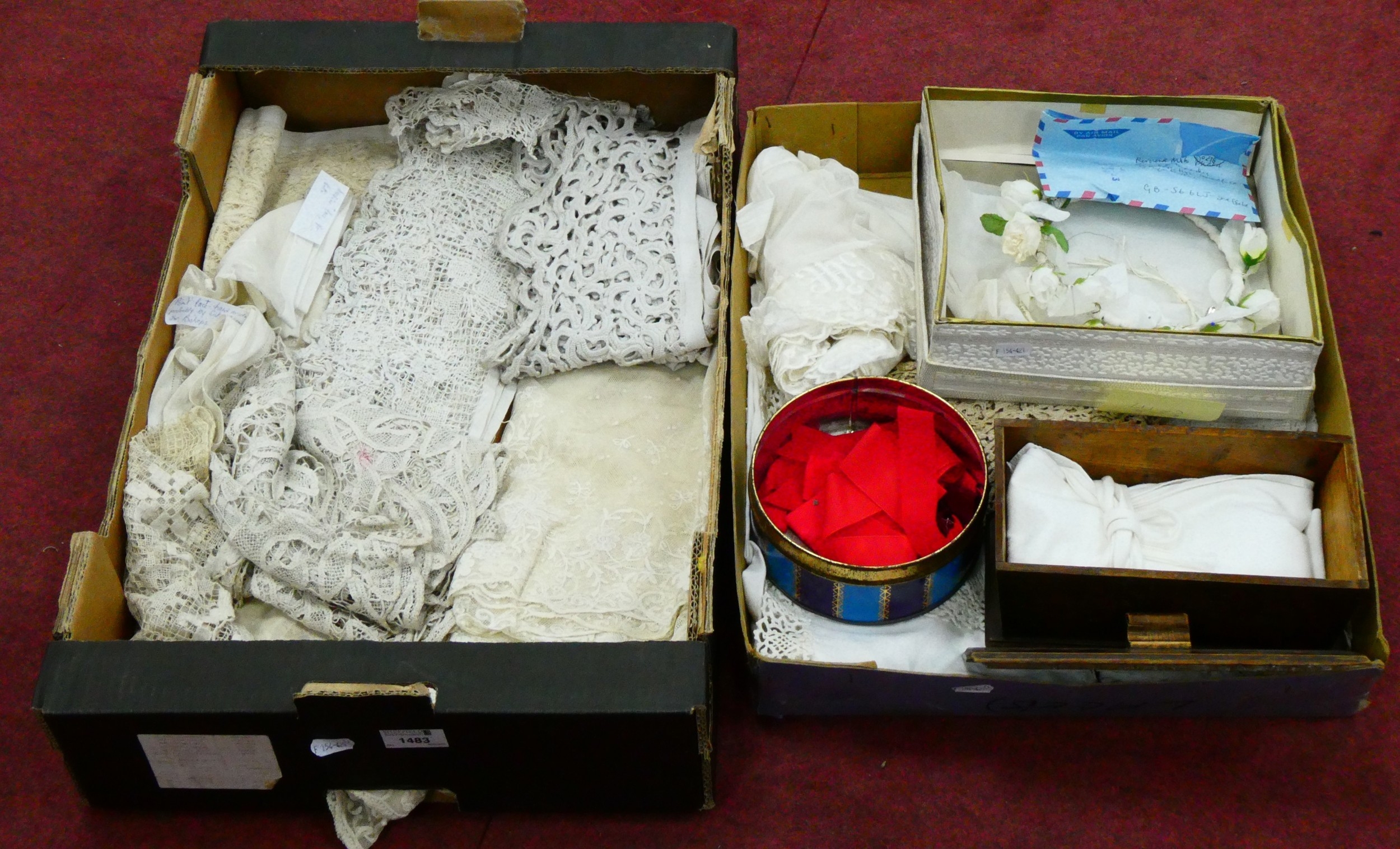 A Piece of Needlepoint Lace, crochet work and machine lace trim in various widths and lengths, a white rose coronet:- Two Boxes