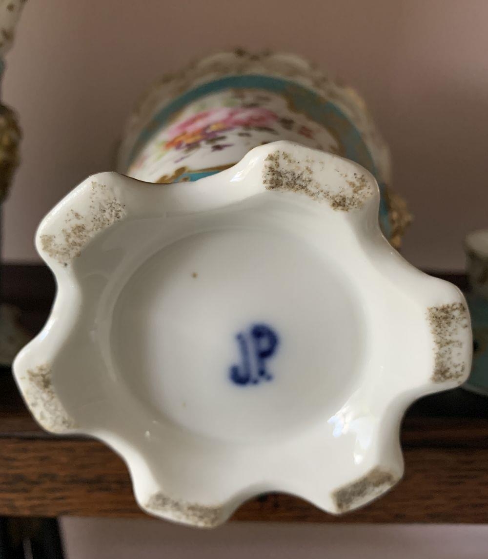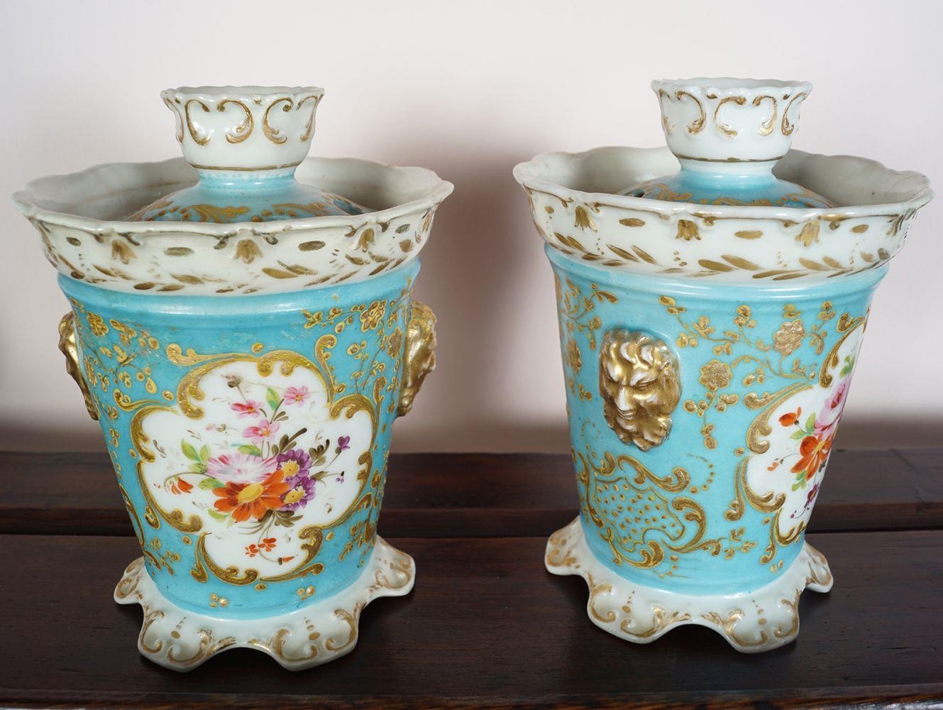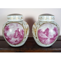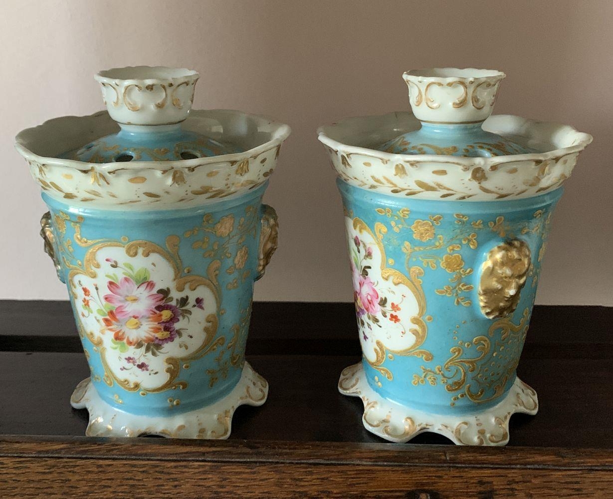 each of vase shape, raised on splayed feet. 13 cm. high; 9 cm. diameter