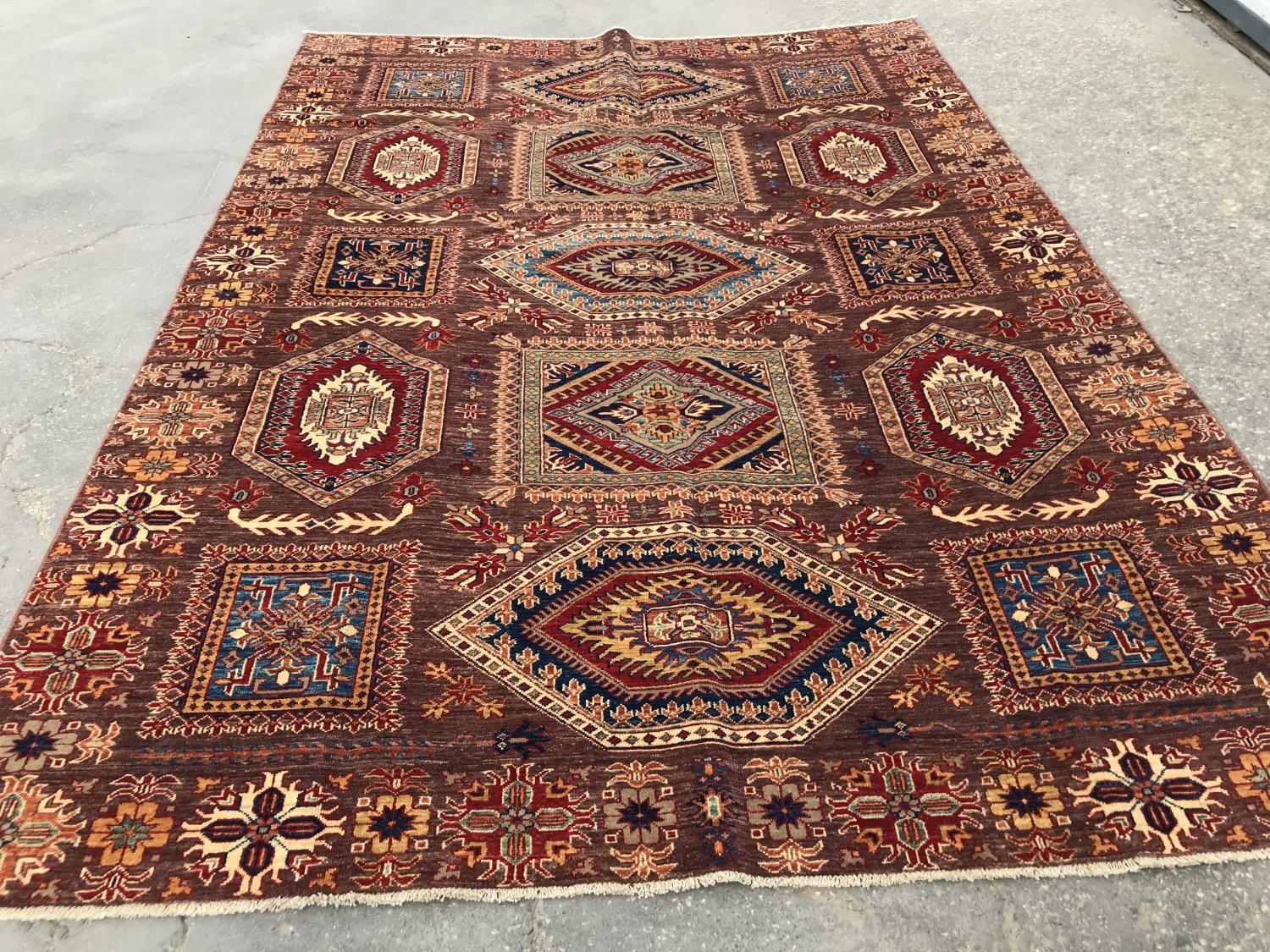 Handmade, Pakistan, Super Karak Brown Geometric New Design Carpet (303 x 213cm) (6.5 sq.mts) (New)