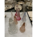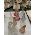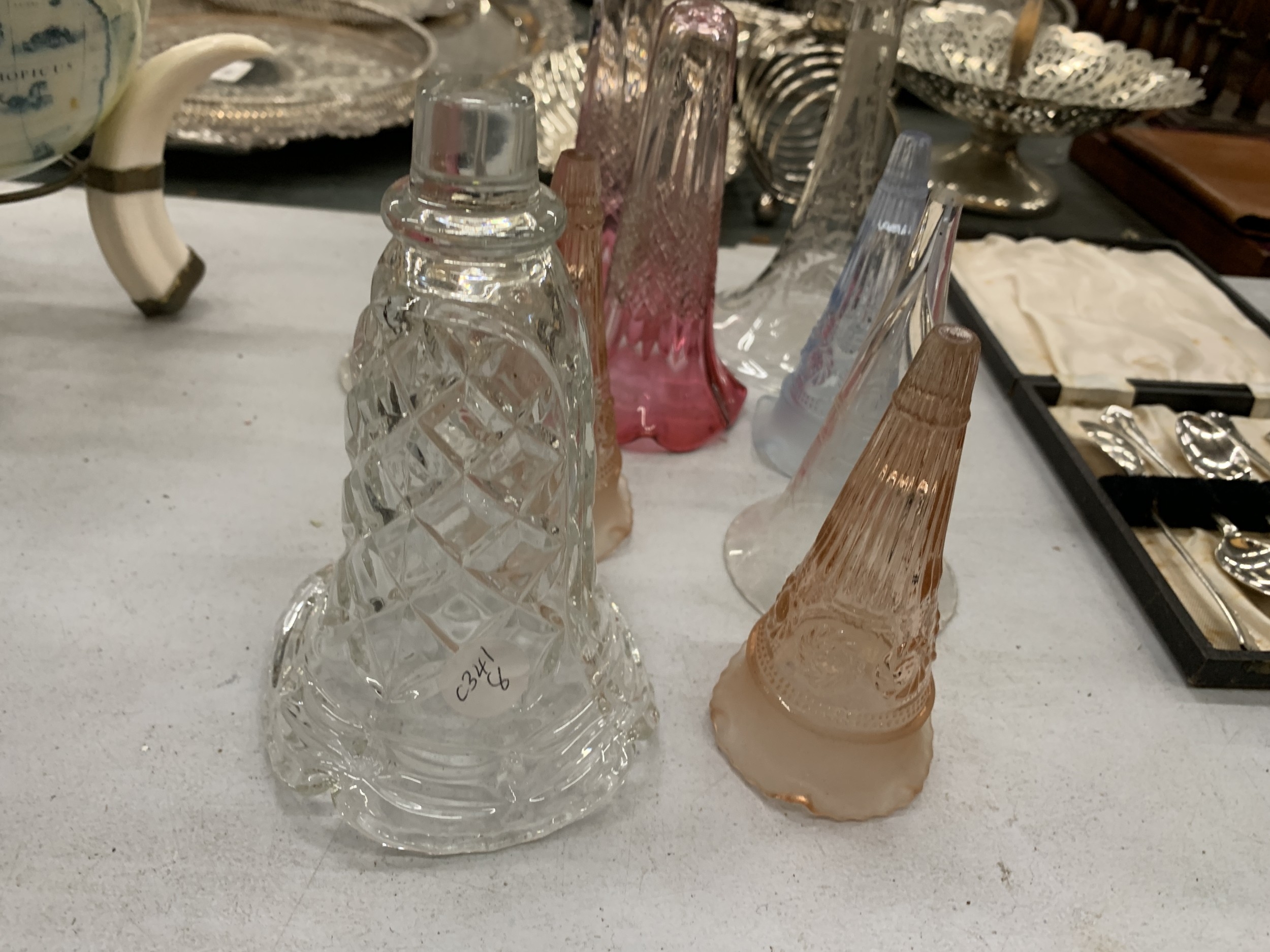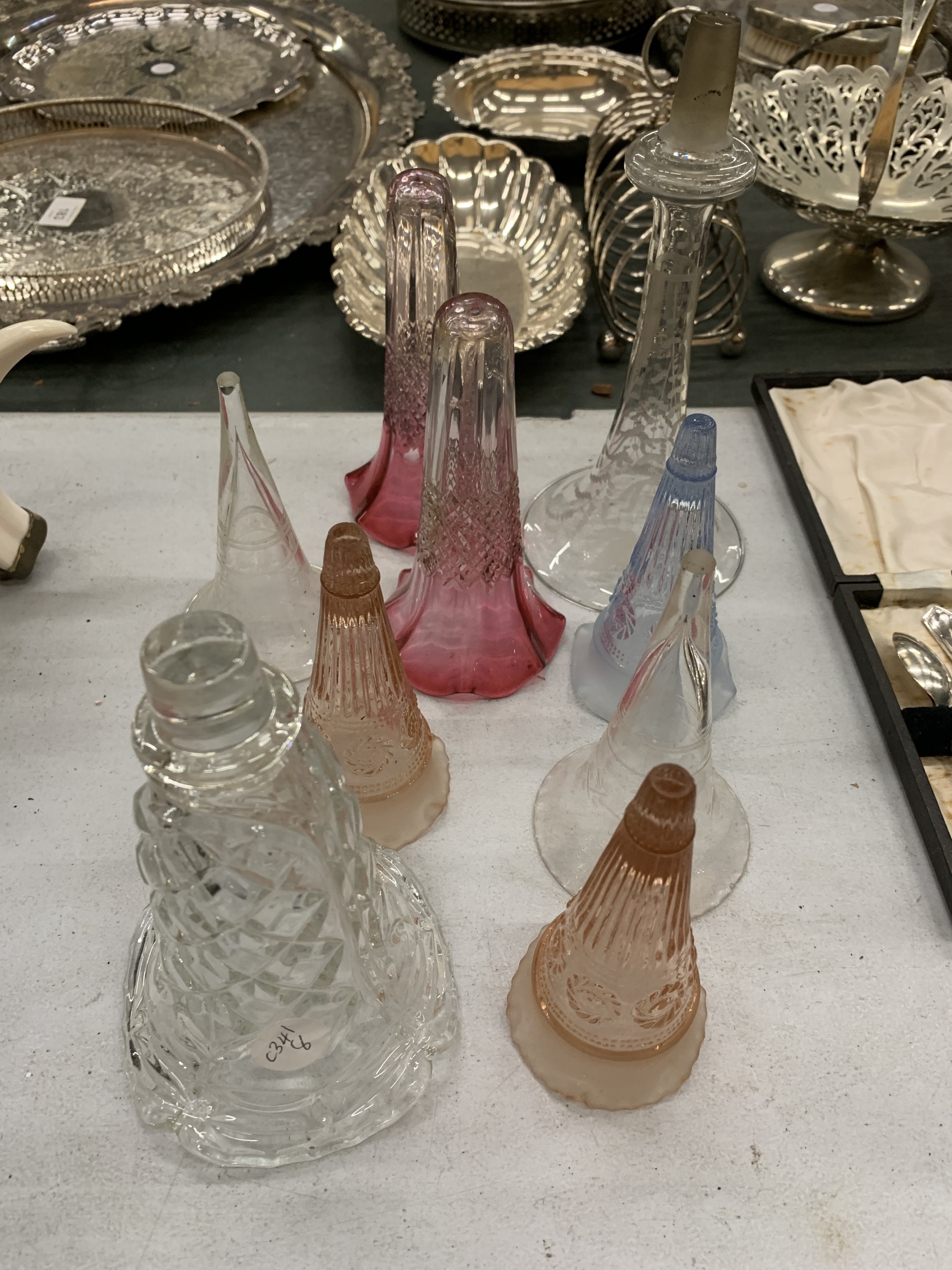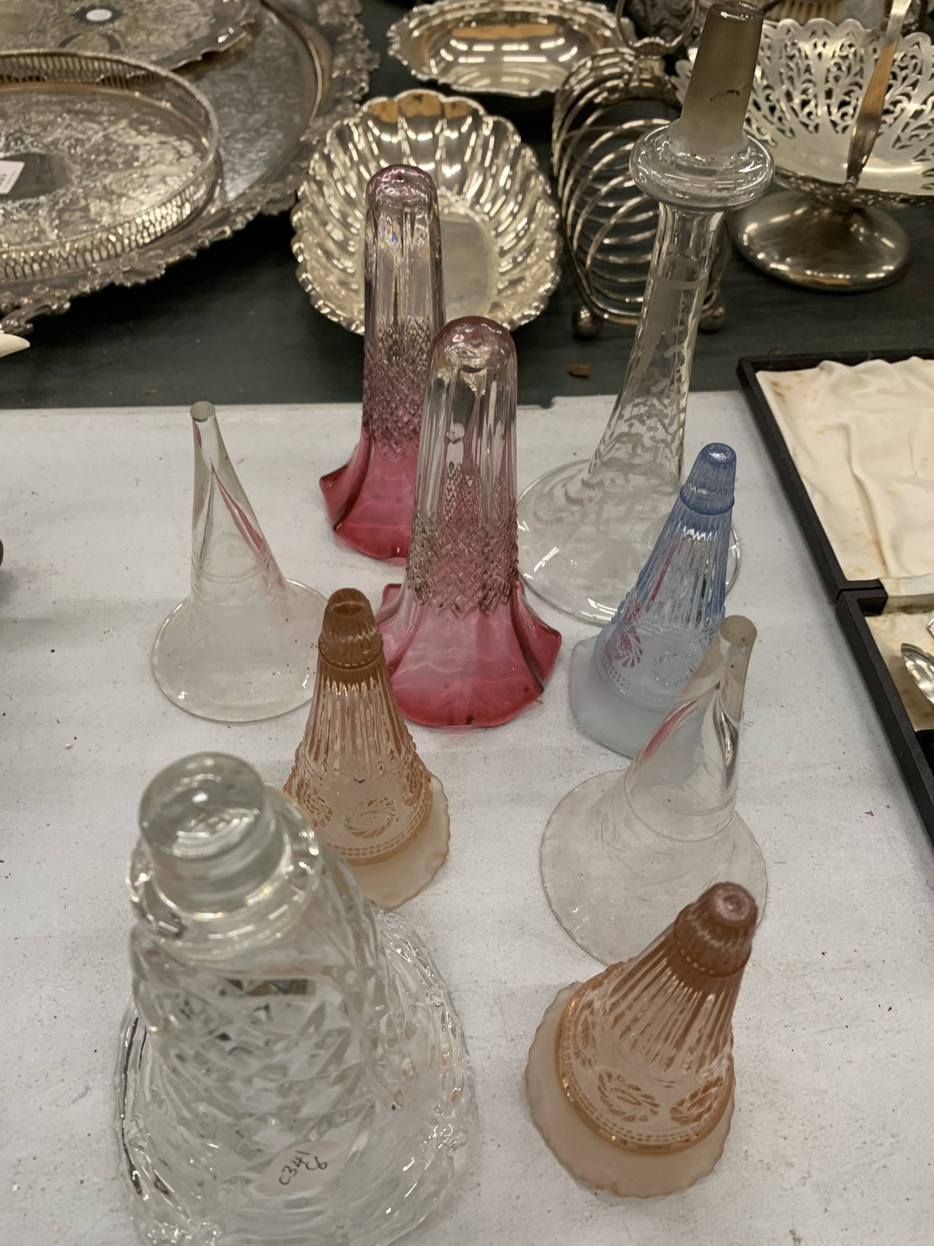 A COLLECTION OF EPERGNE GLASS POSY HOLDERS IN VARIOUS COLOURS
