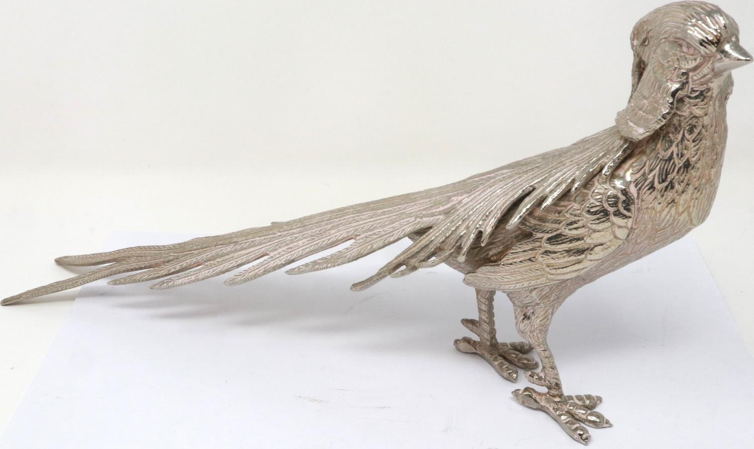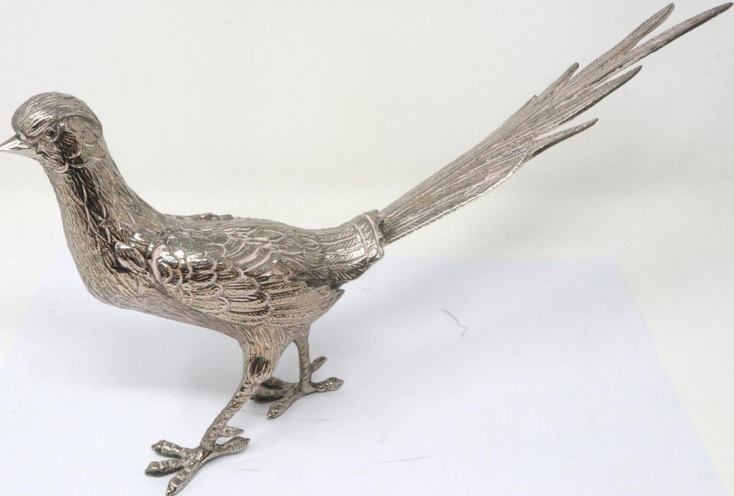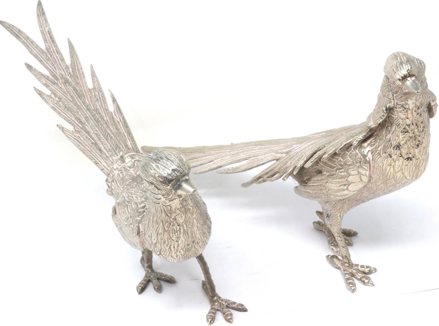 Silver plated cock and hen pheasant, cock L: 35 cm. P&P Group 2 (£18+VAT for the first lot and £3+VAT for subsequent lots)