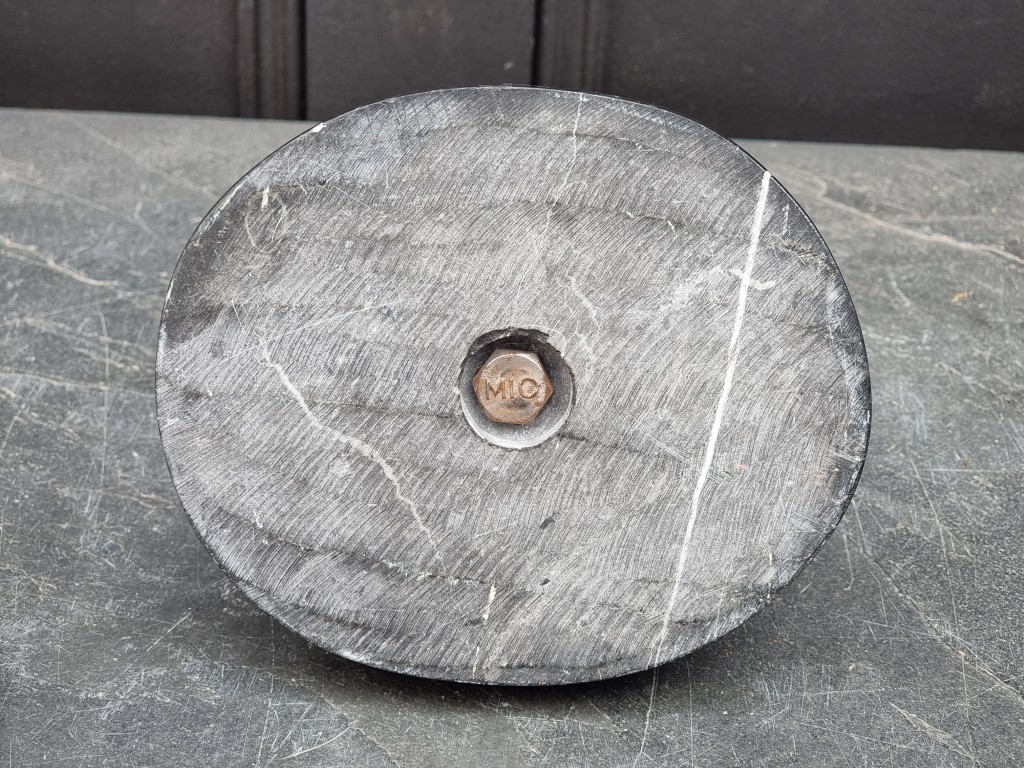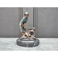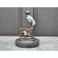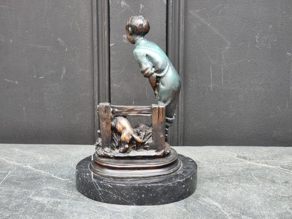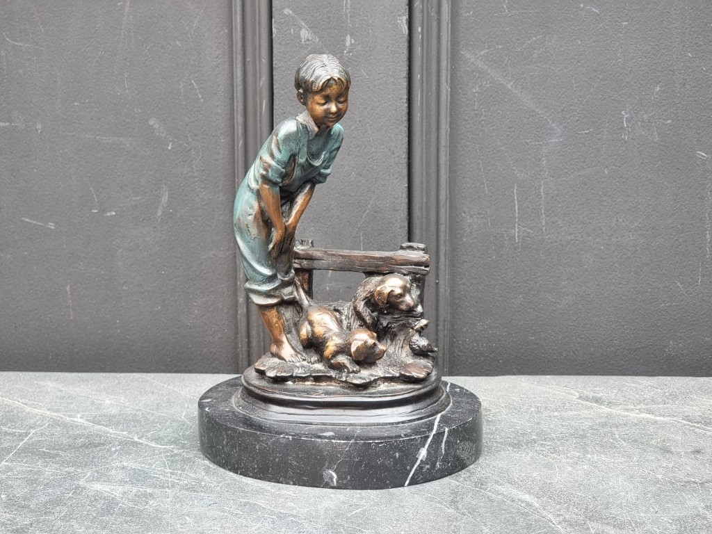A bronze figure group of a boy and two dogs, on marble base, 24cm high.