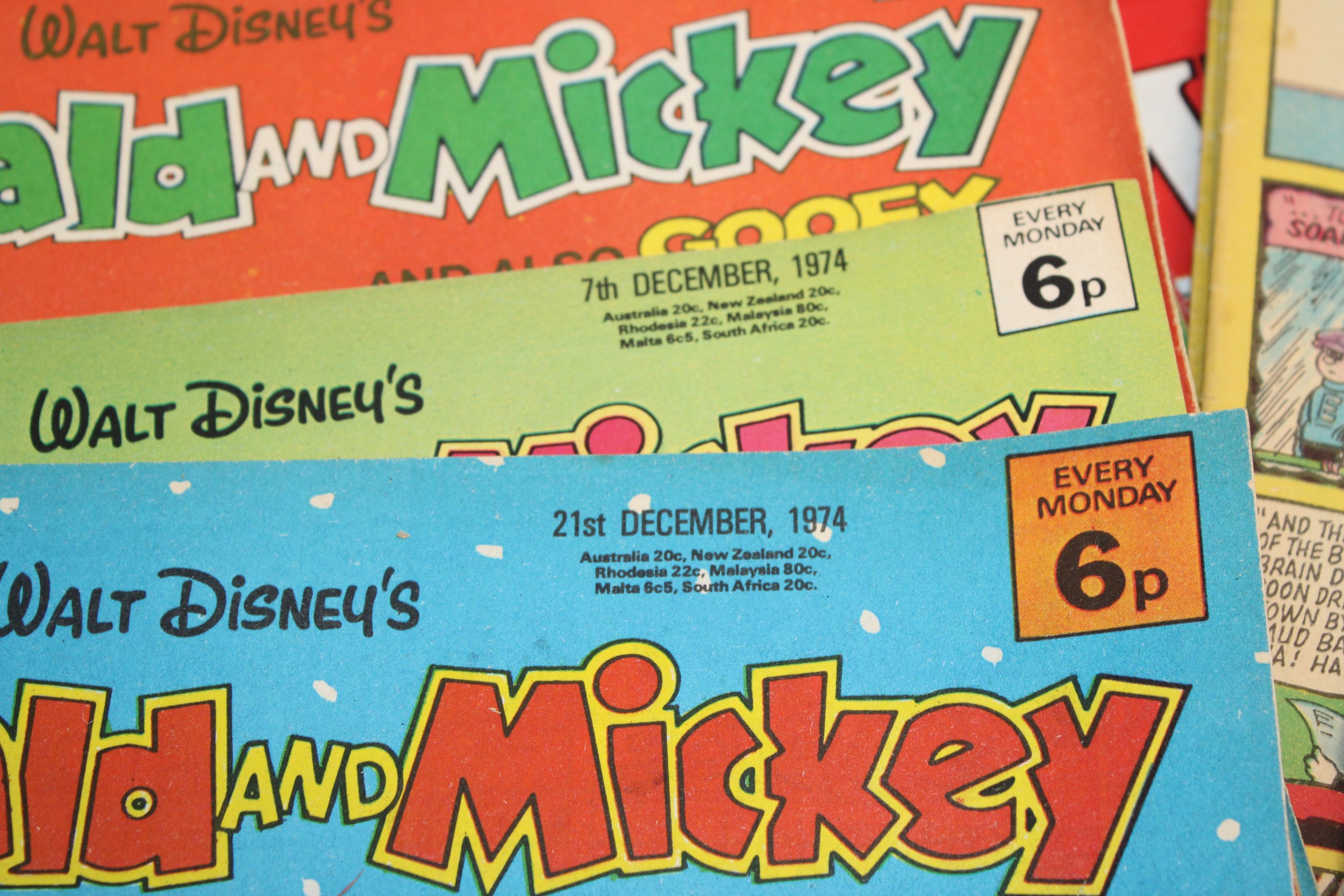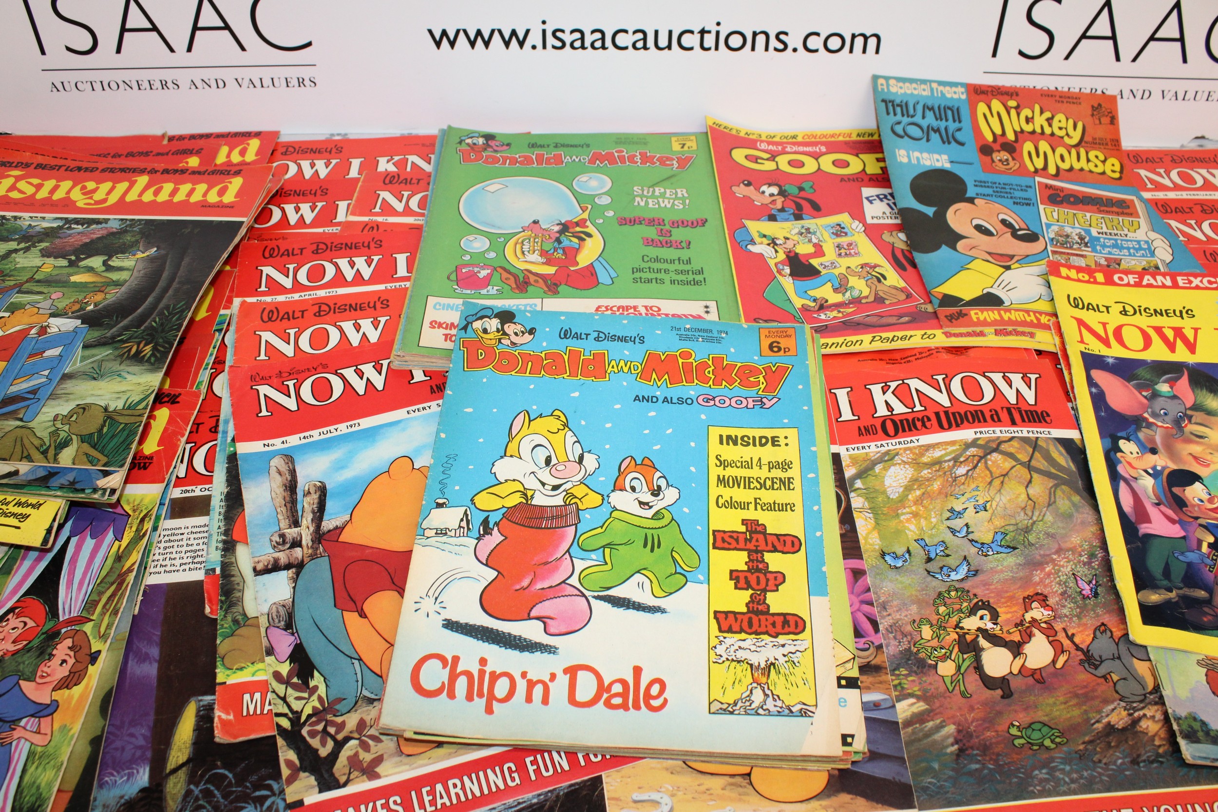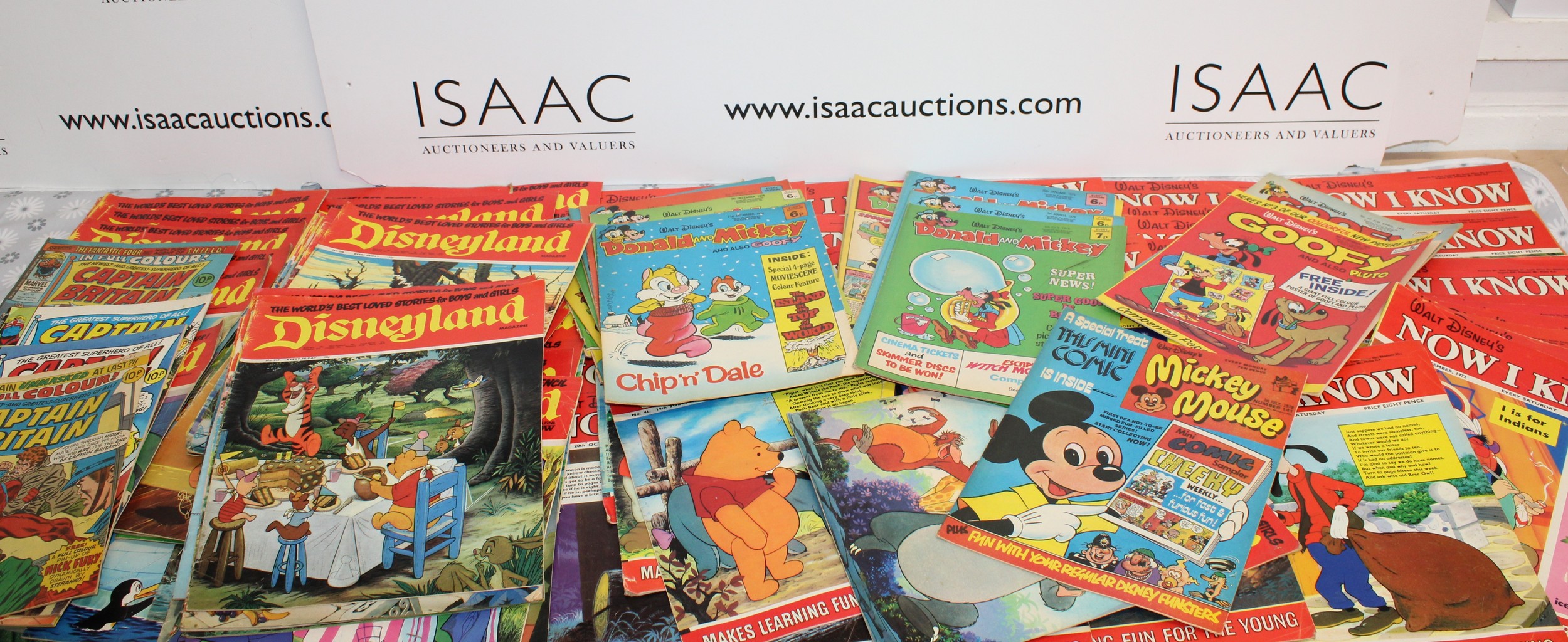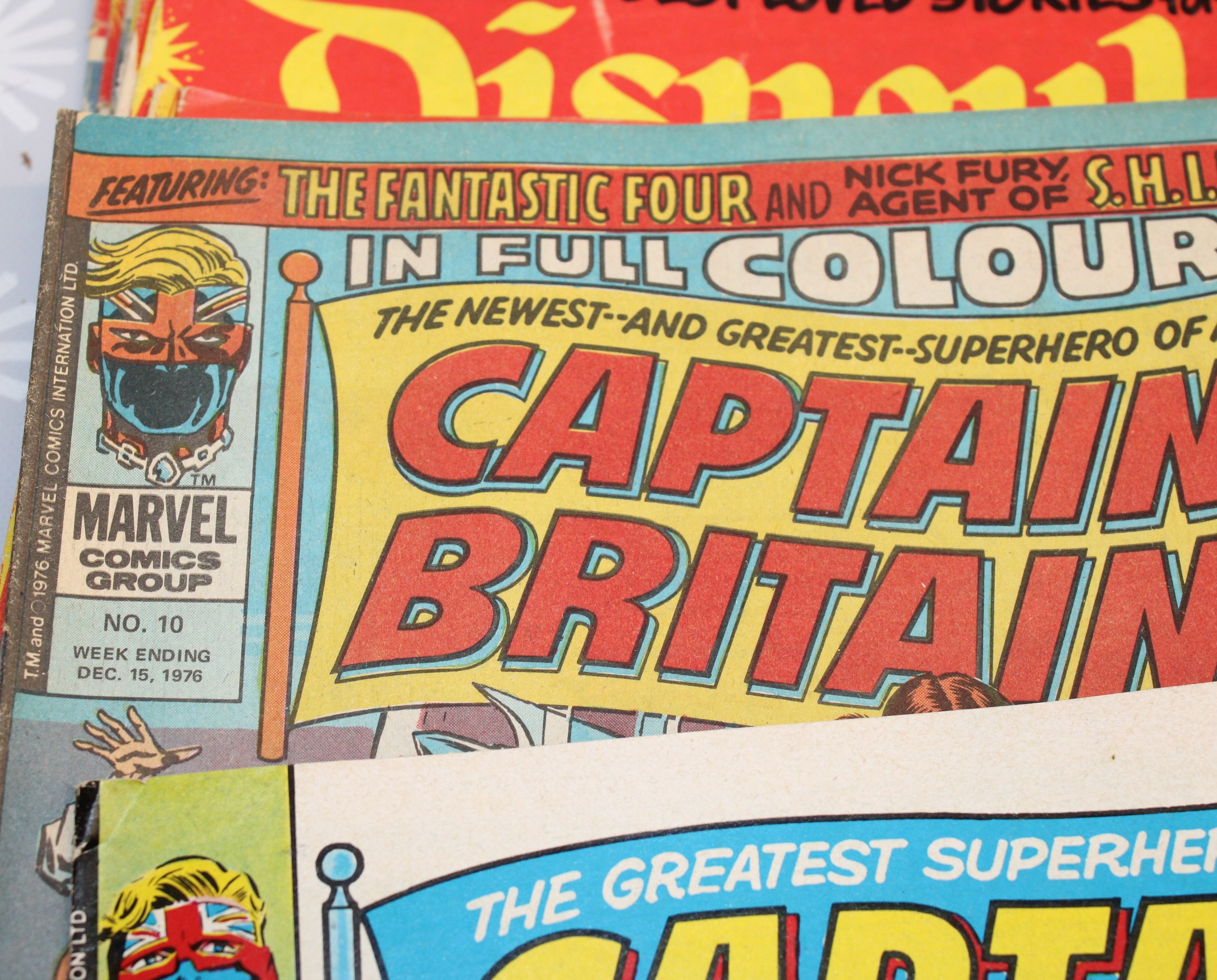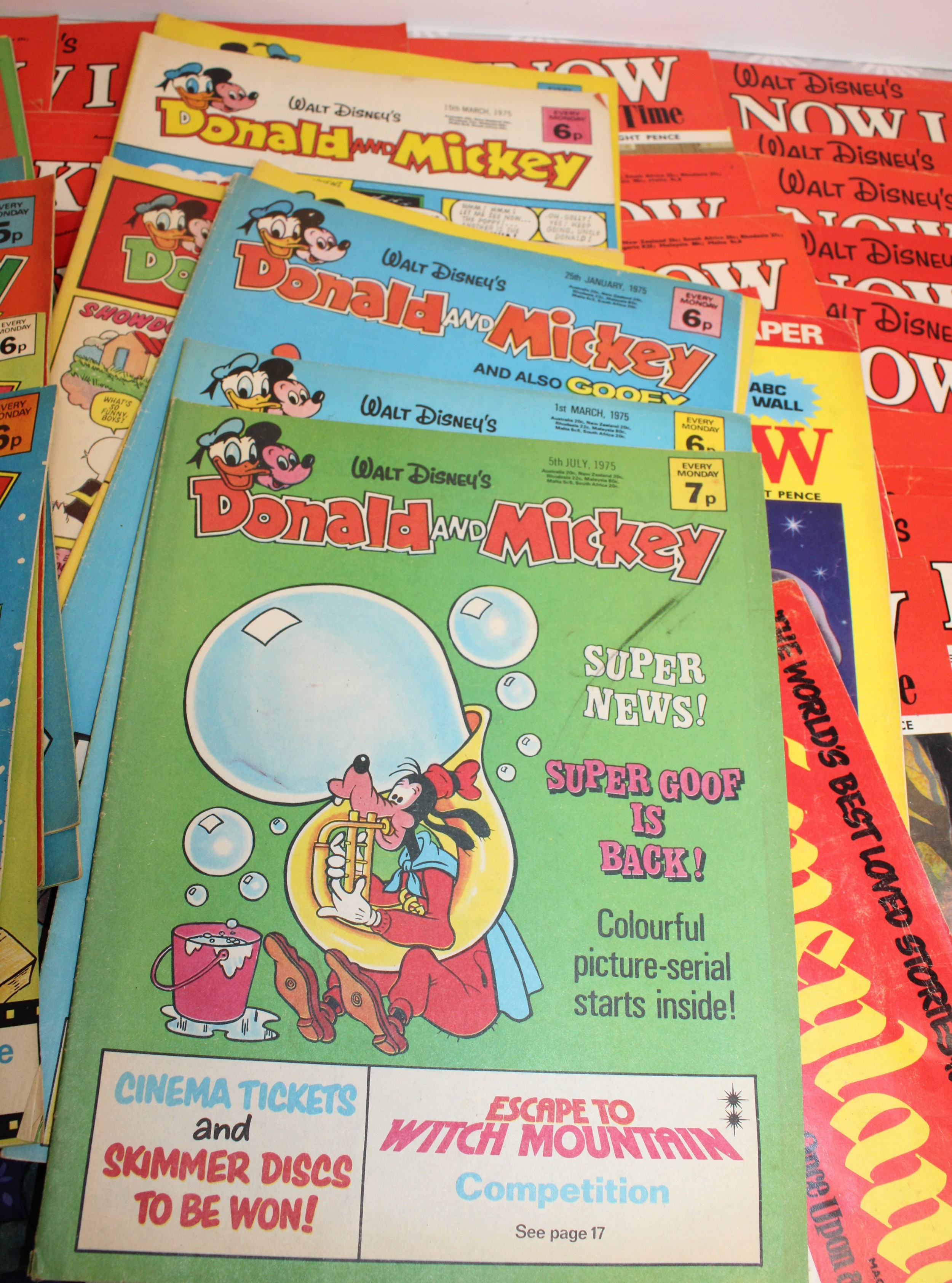 Quantity Of WALT DISNEY NOW I KNOW 1972. 1973, DISNEYLAND,DONALD AND MICKEY 1974, 1975, GOOFY AND ALSO PLUTO 1973,1974, MICKEY MOUSE 1978, CAPTAIN BRITAIN 1976,1977 Magazines As Found
