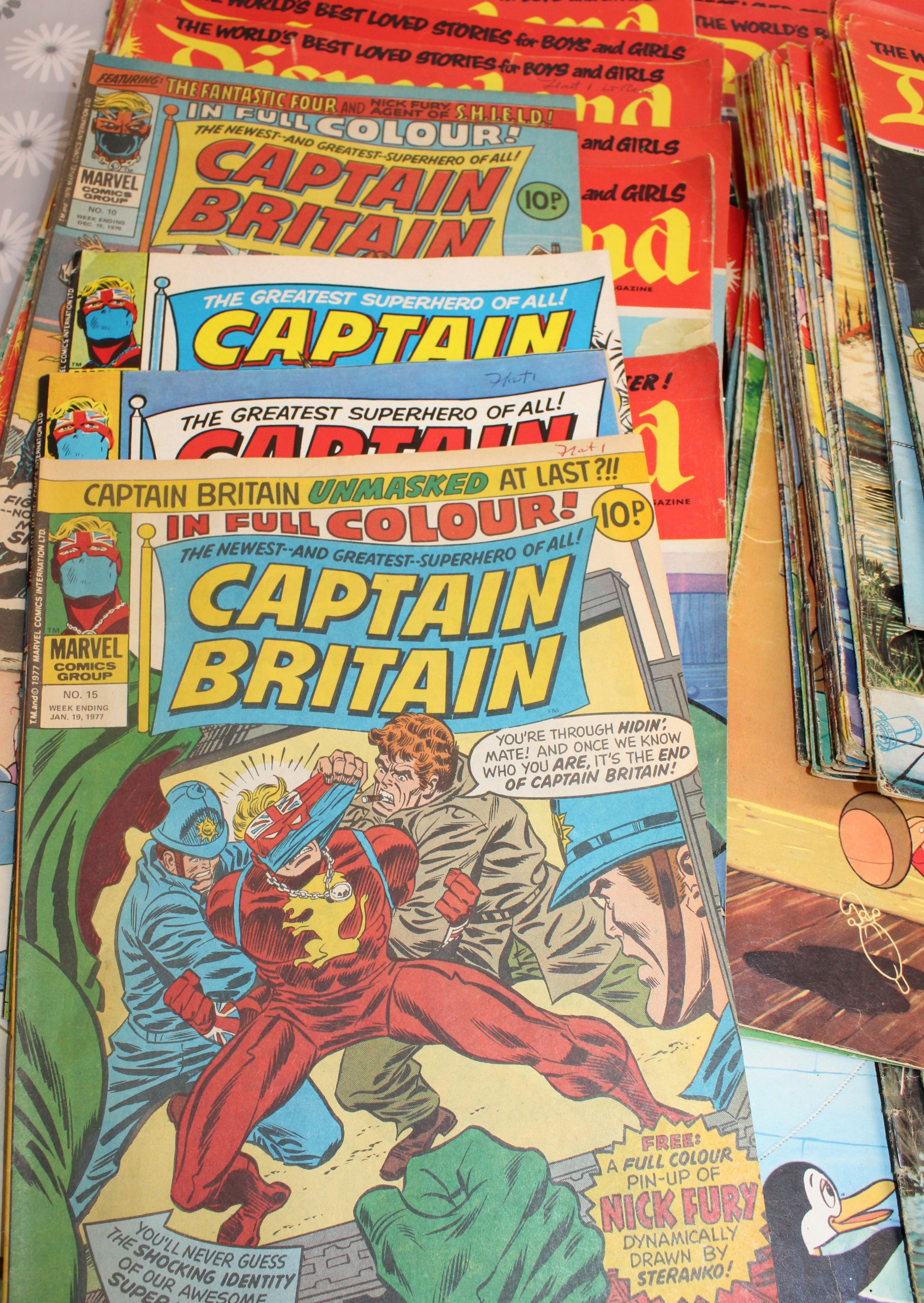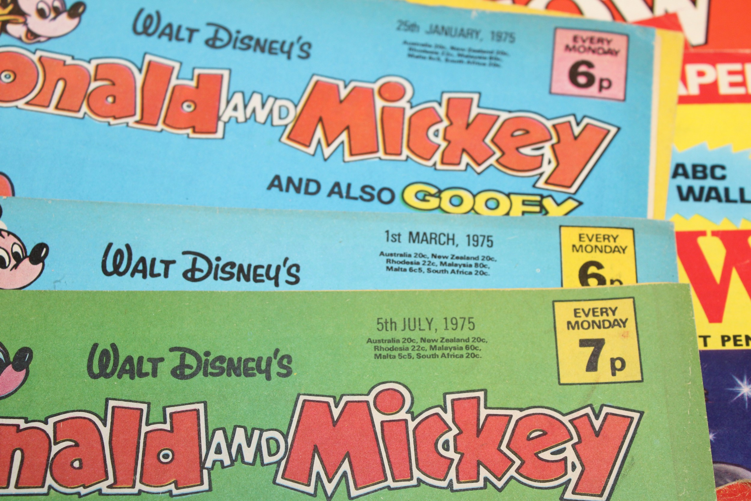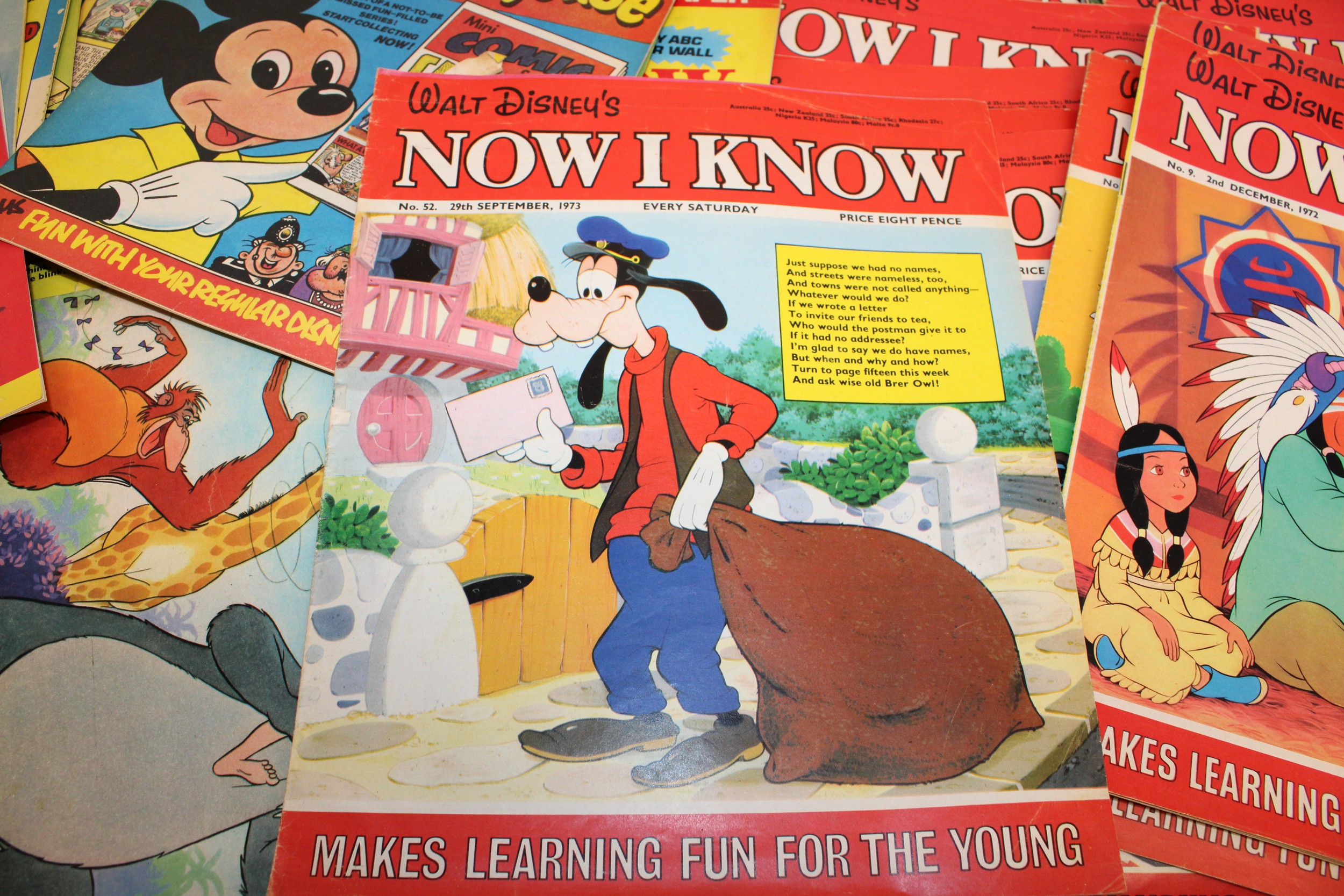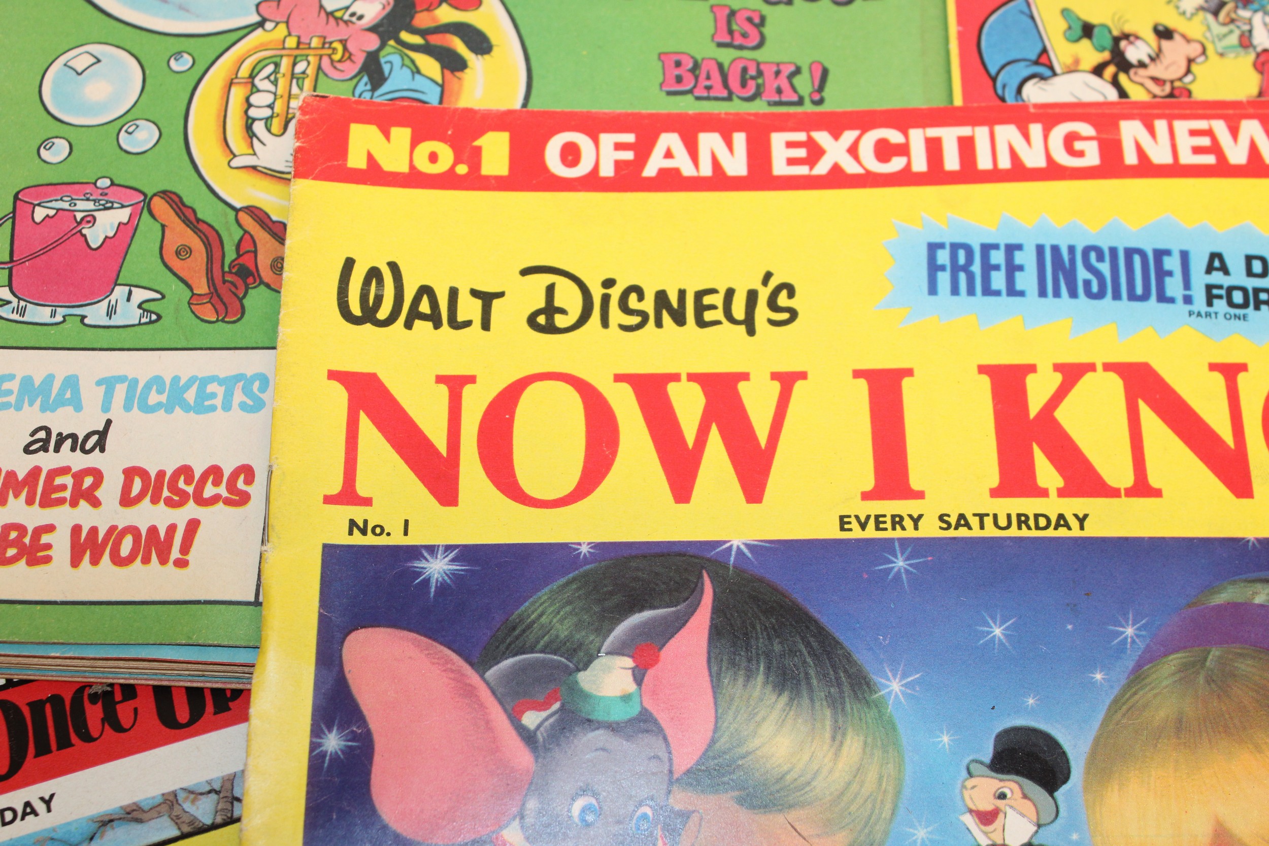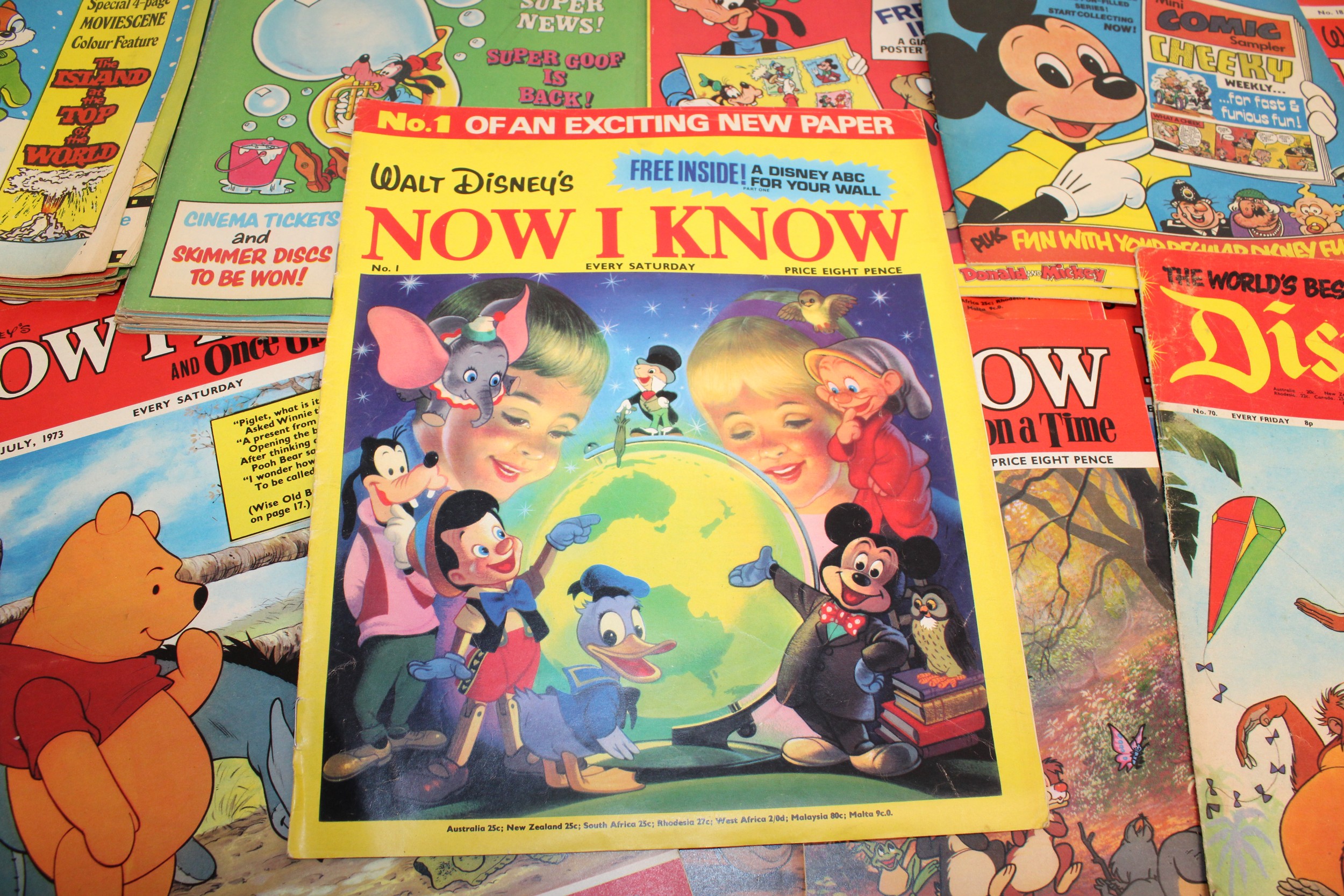 Quantity Of WALT DISNEY NOW I KNOW 1972. 1973, DISNEYLAND,DONALD AND MICKEY 1974, 1975, GOOFY AND ALSO PLUTO 1973,1974, MICKEY MOUSE 1978, CAPTAIN BRITAIN 1976,1977 Magazines As Found