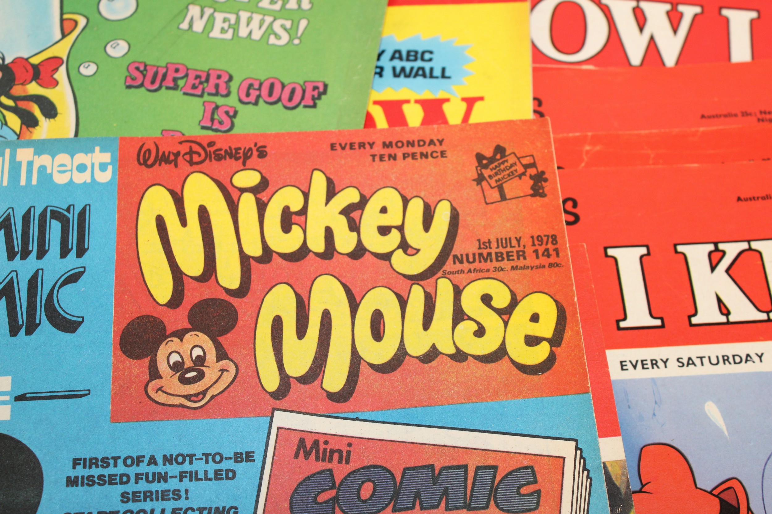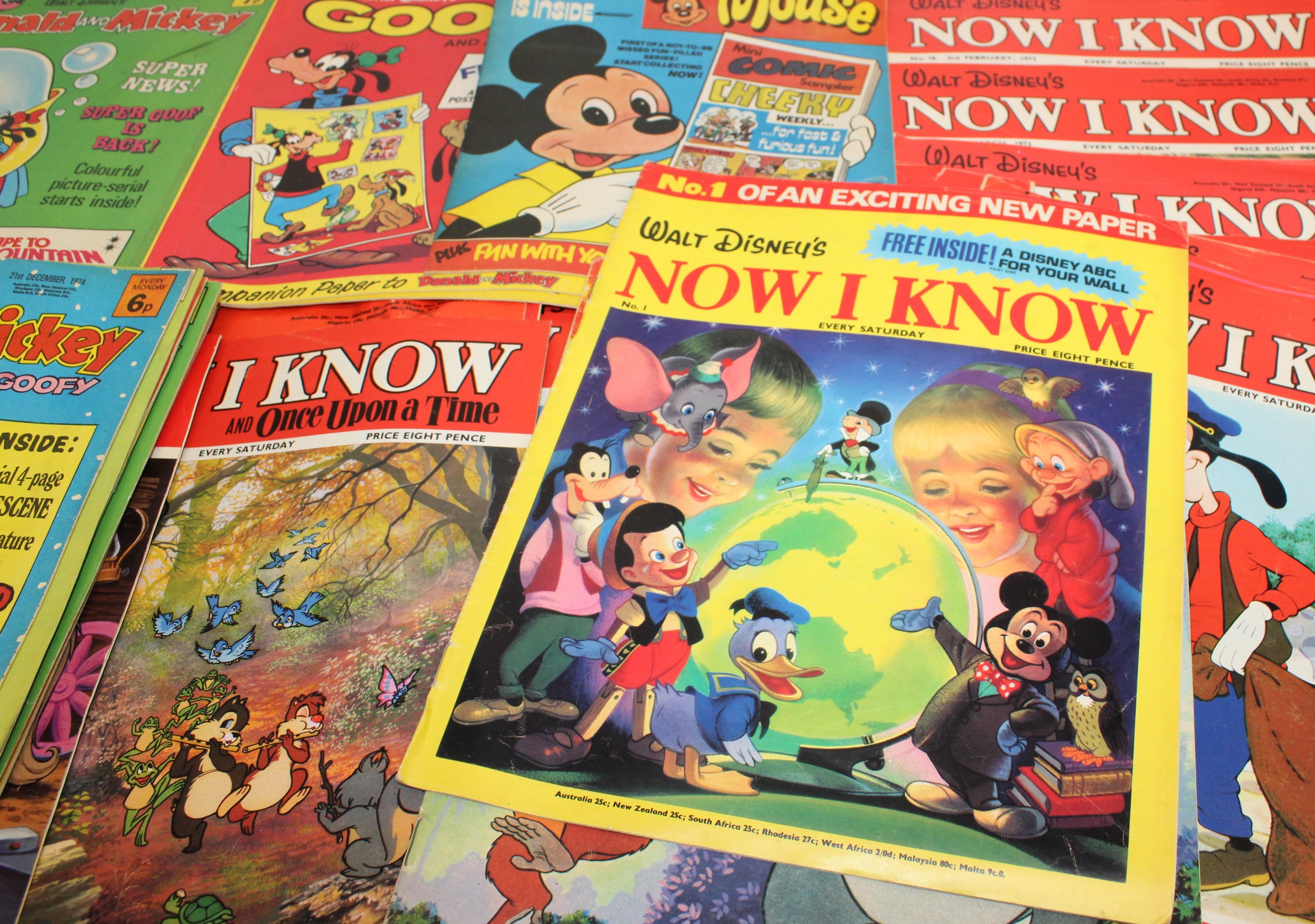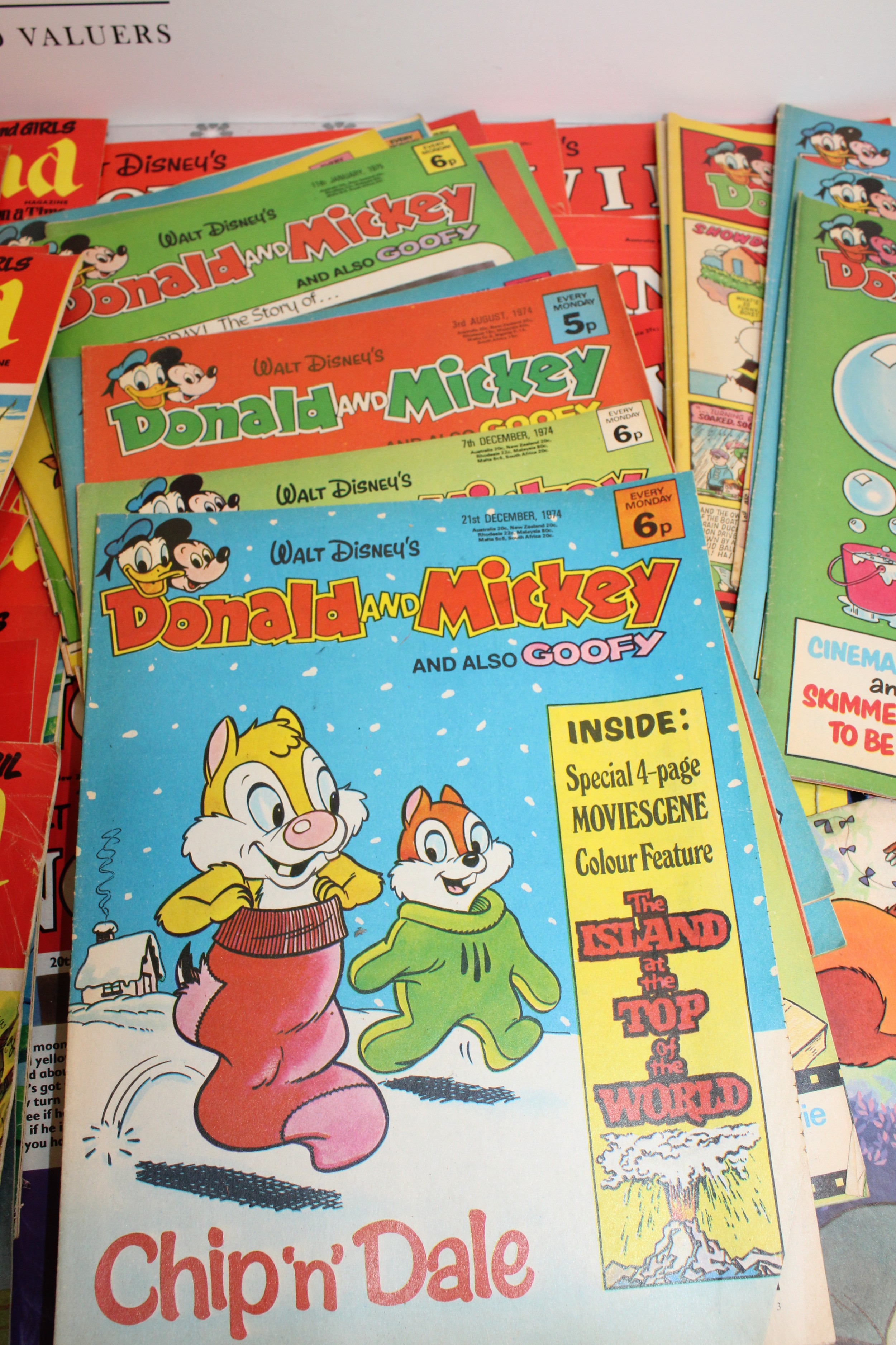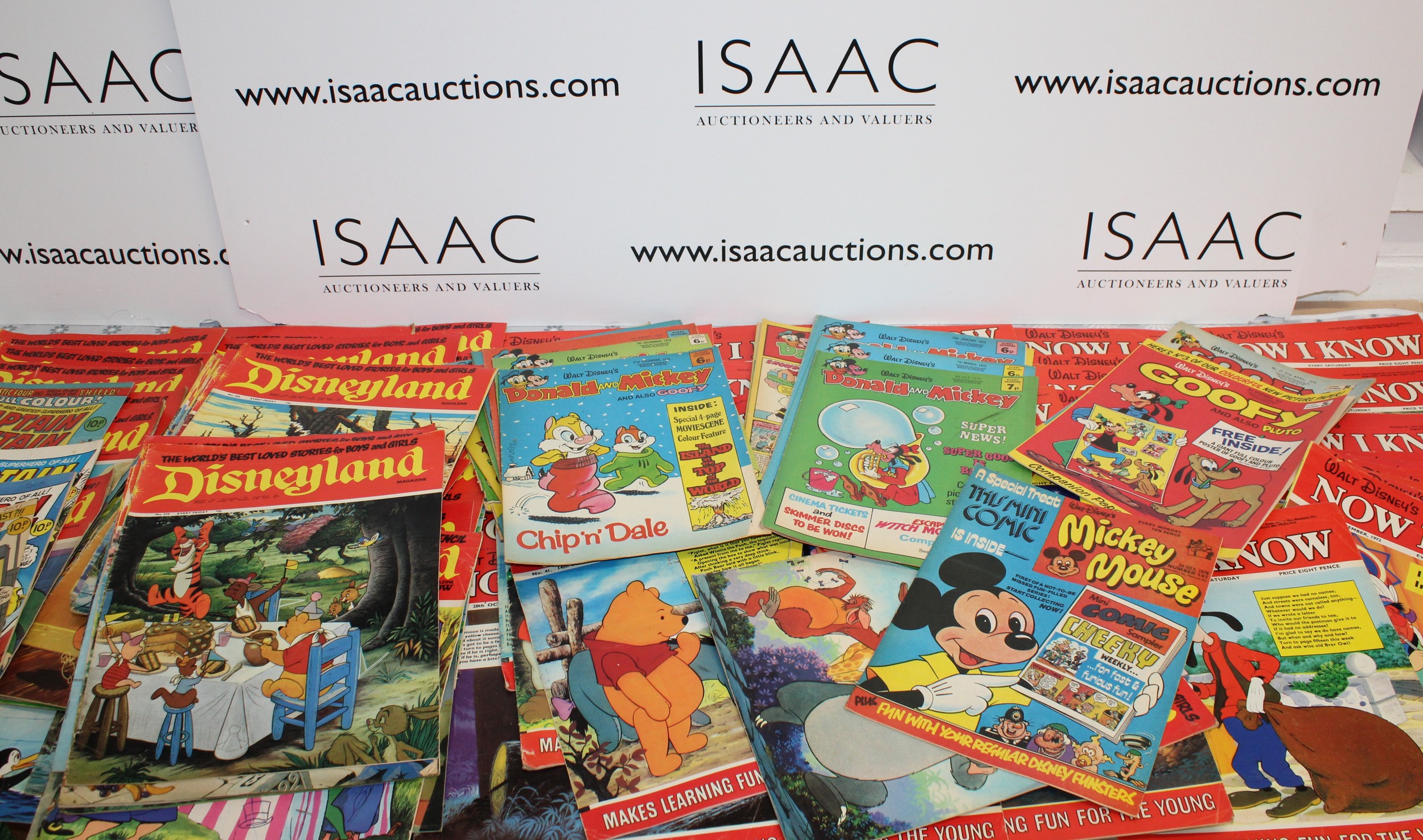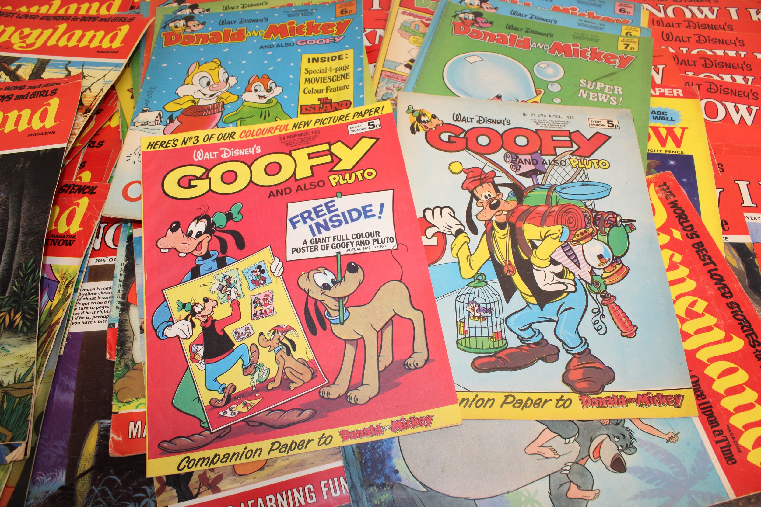 Quantity Of WALT DISNEY NOW I KNOW 1972. 1973, DISNEYLAND,DONALD AND MICKEY 1974, 1975, GOOFY AND ALSO PLUTO 1973,1974, MICKEY MOUSE 1978, CAPTAIN BRITAIN 1976,1977 Magazines As Found
