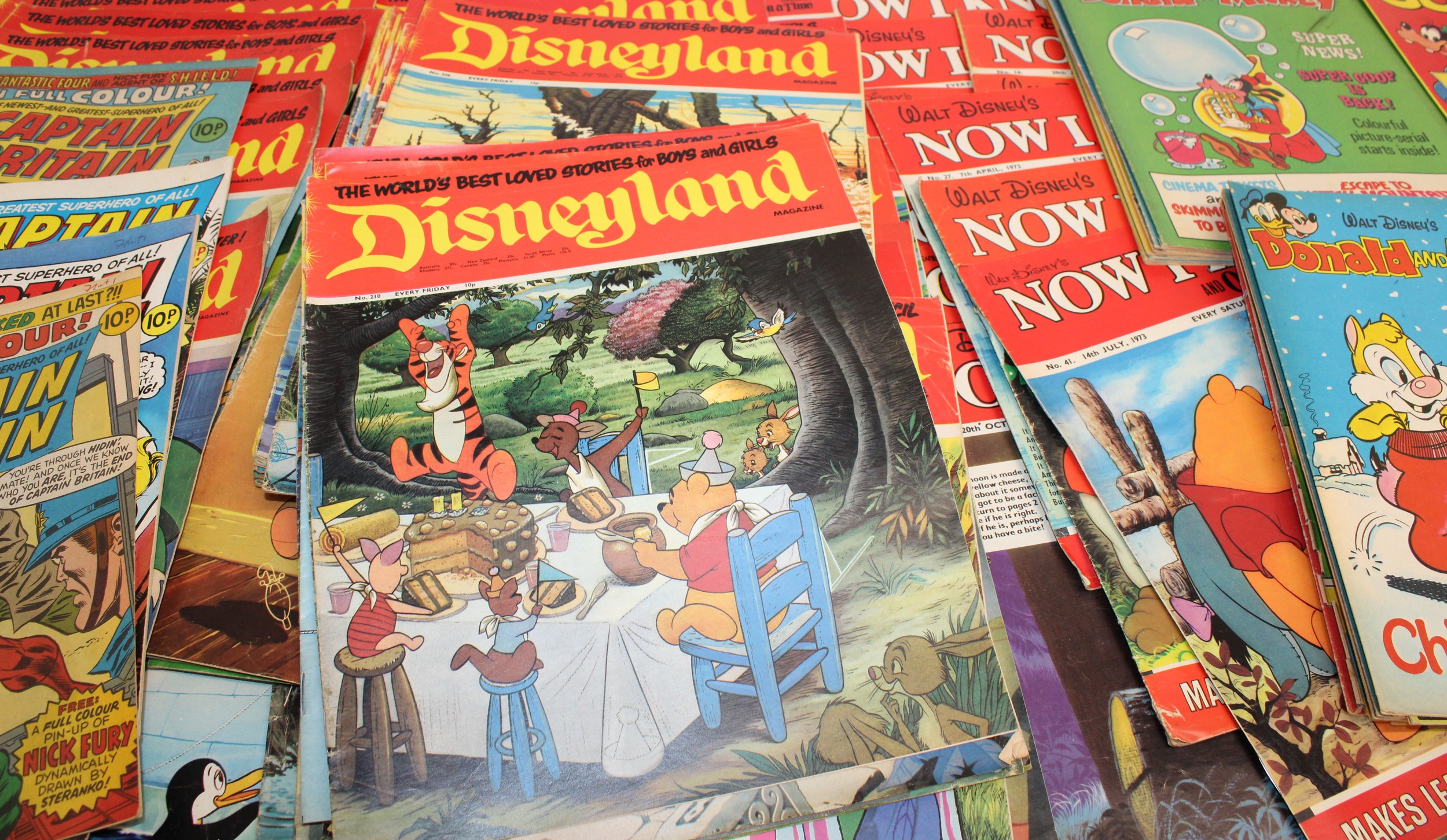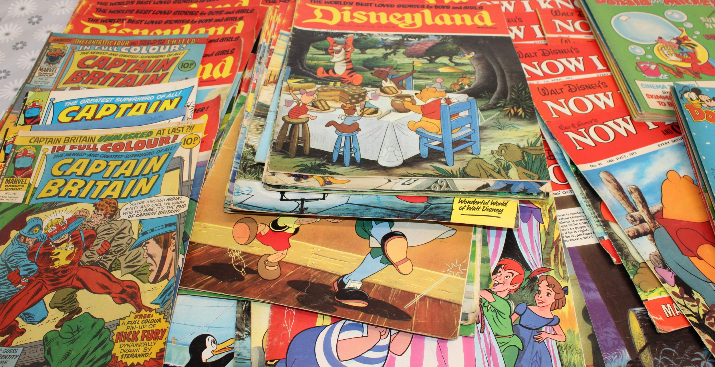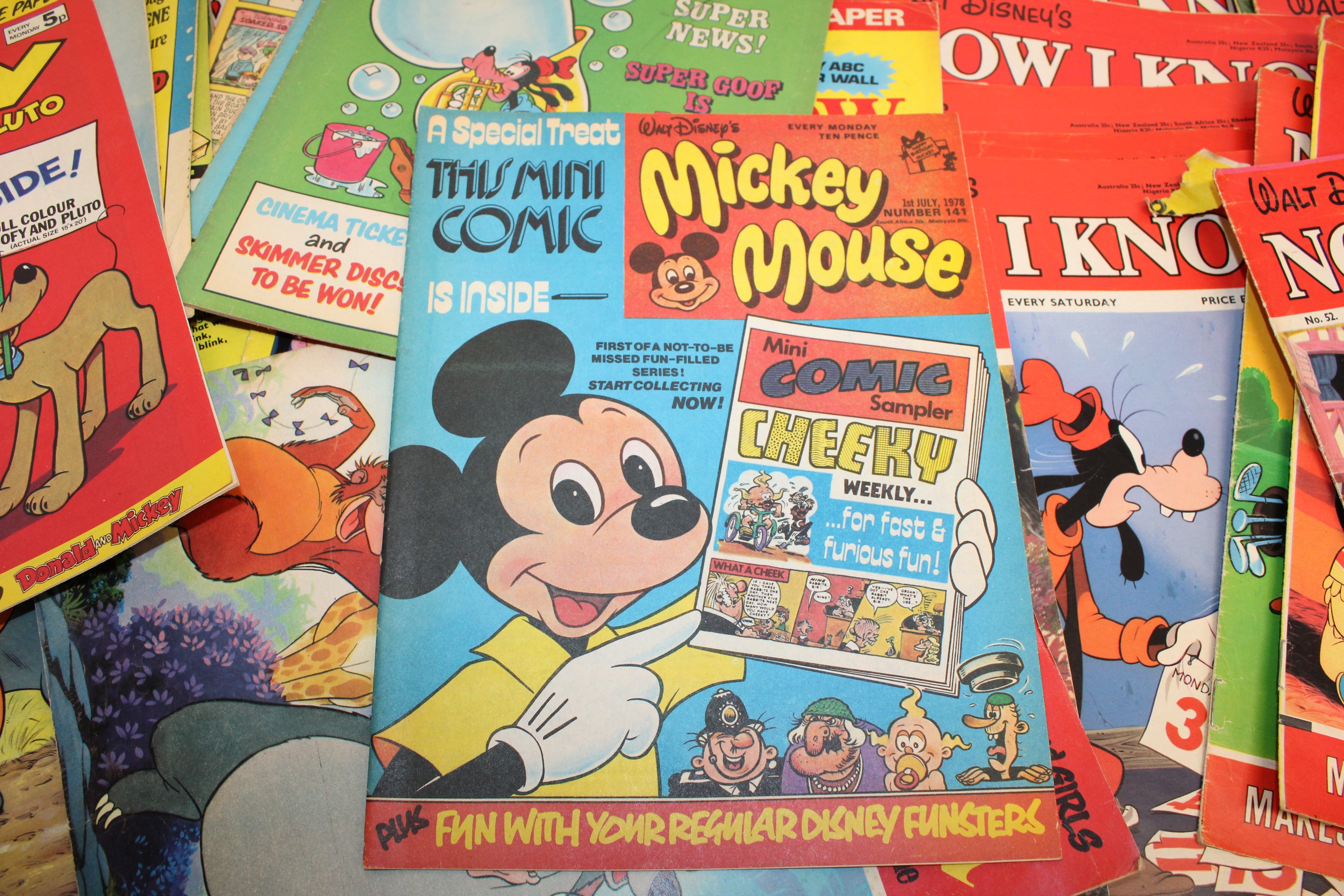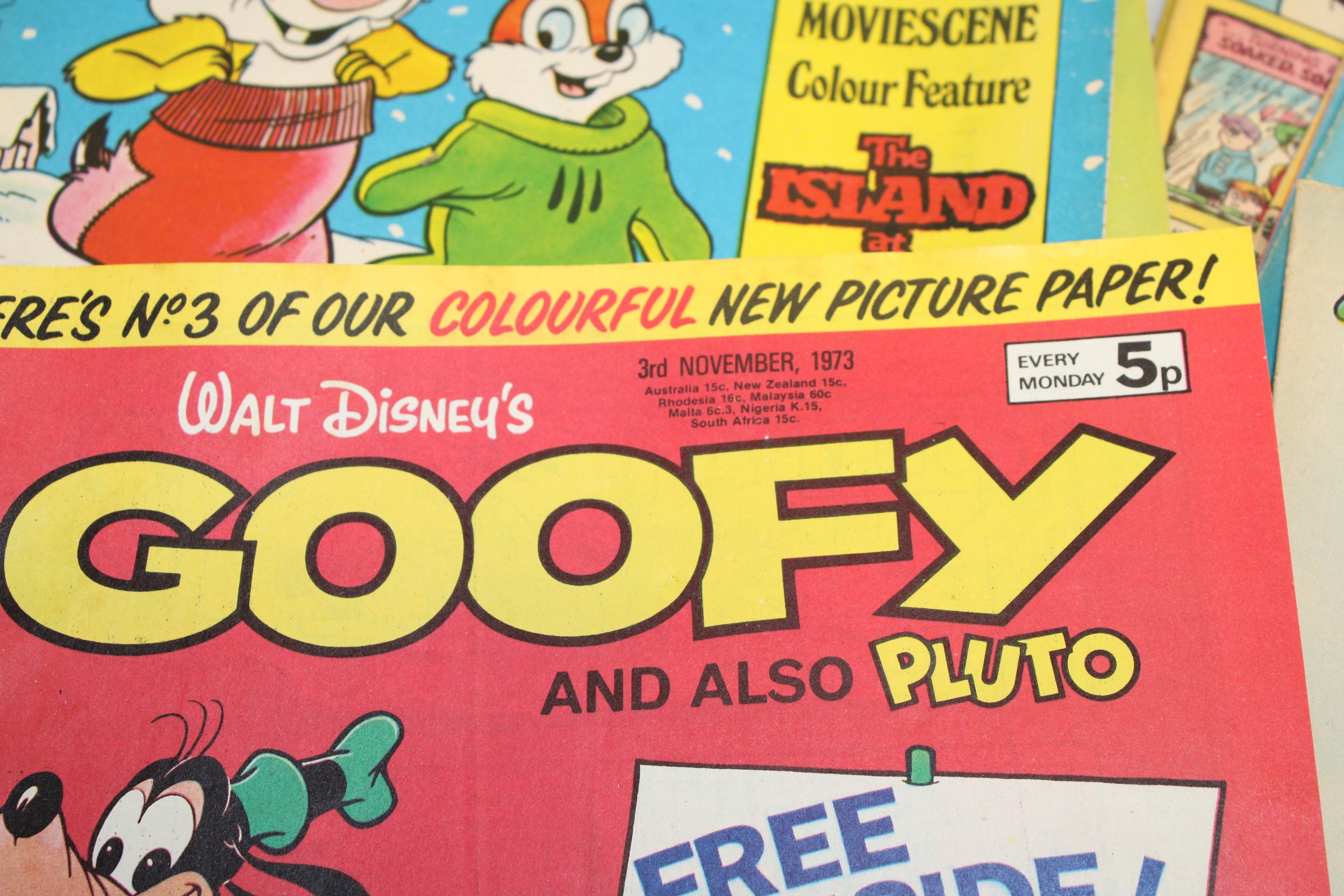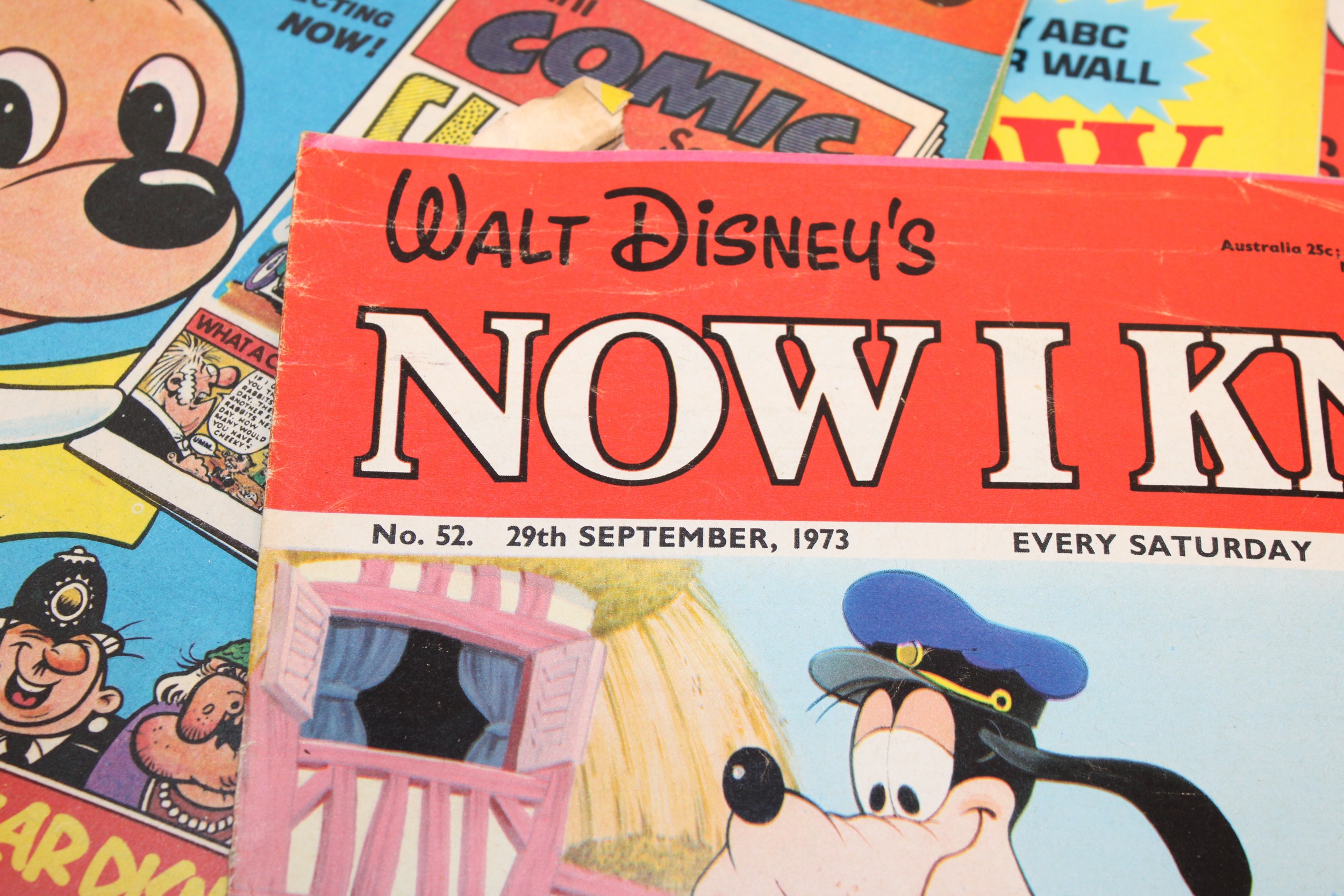 Quantity Of WALT DISNEY NOW I KNOW 1972. 1973, DISNEYLAND,DONALD AND MICKEY 1974, 1975, GOOFY AND ALSO PLUTO 1973,1974, MICKEY MOUSE 1978, CAPTAIN BRITAIN 1976,1977 Magazines As Found