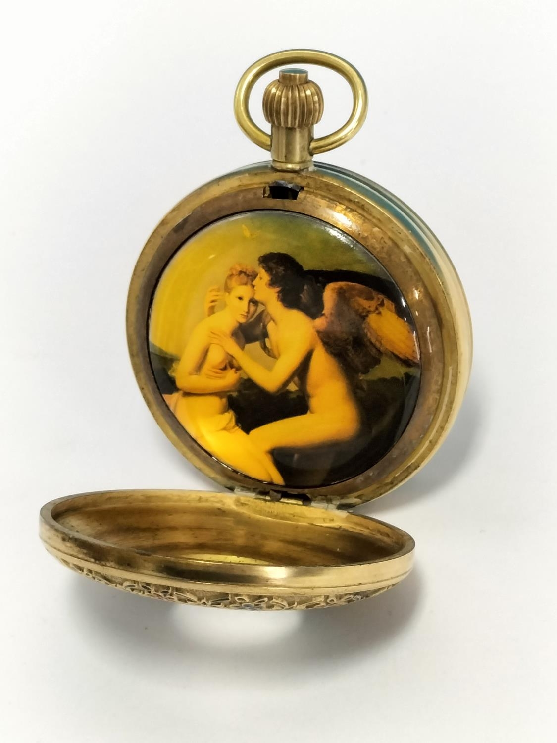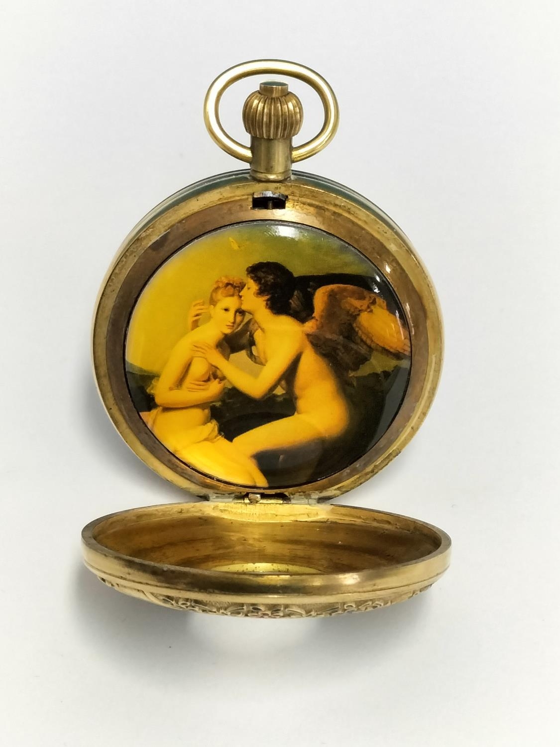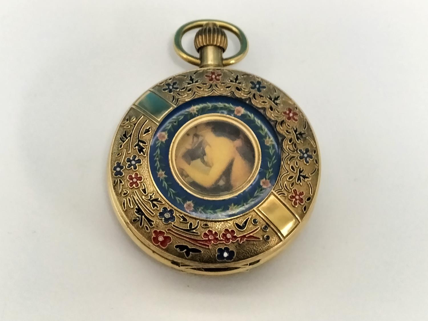 Gold Coloured and Enameled Case Wind Up Half Hunter Pocket W...