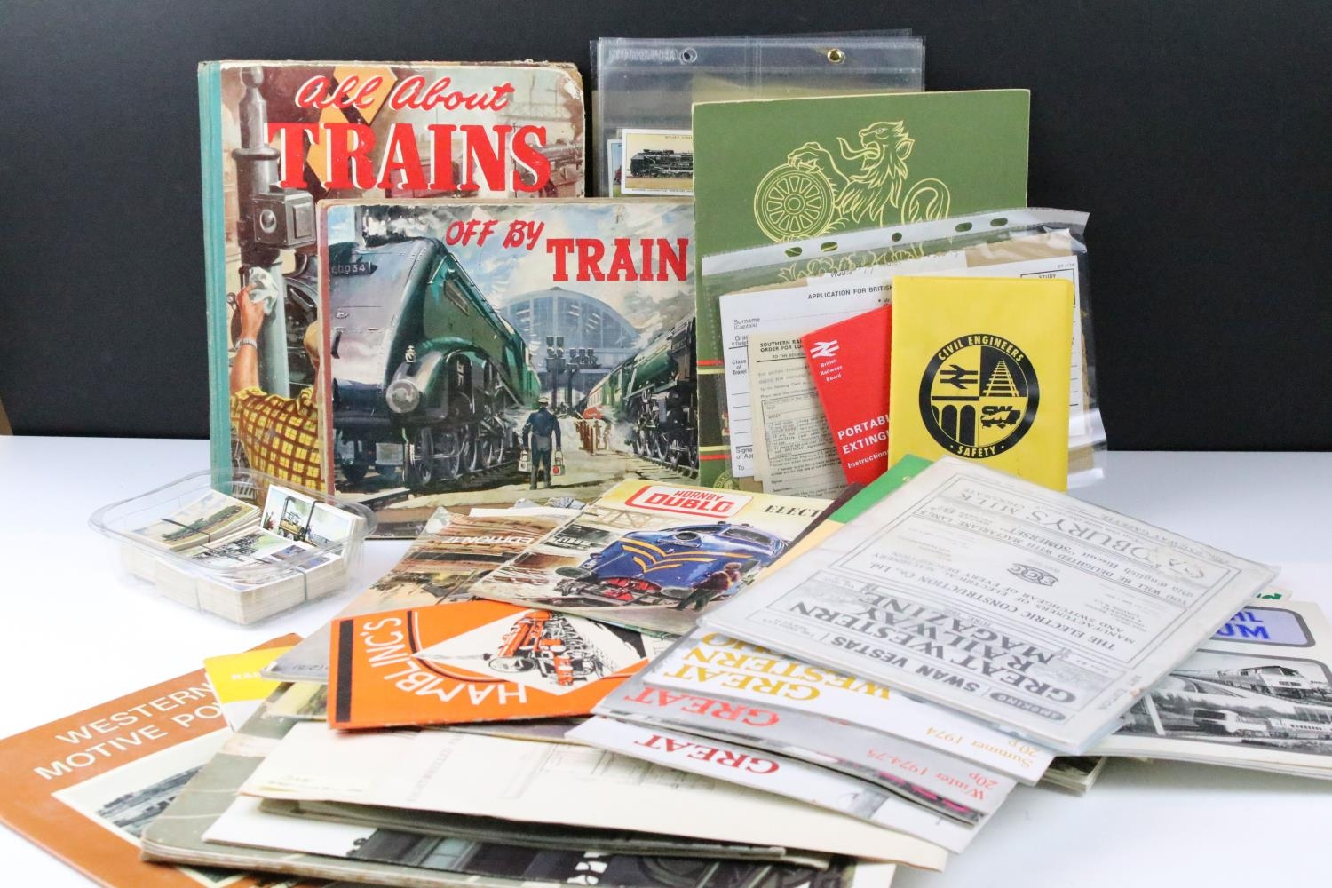 Railwayana - A collection of vintage ephemera, books, booklets, cigarette cards (Wills+, 3 full sets, 4+ part sets), magazines (inc Great western Railway, 1932), model catalogues (Hornby Dublo etc), schematic/illustrations from The Engineer c1895, BR staff issue ephemera, calendars, etc, the lot with significant GWR interest, c1895-1970's, 50+ items4