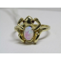 9ct YELLOW GOLD RUBY & DIAMOND CLUSTER RING, size N/O