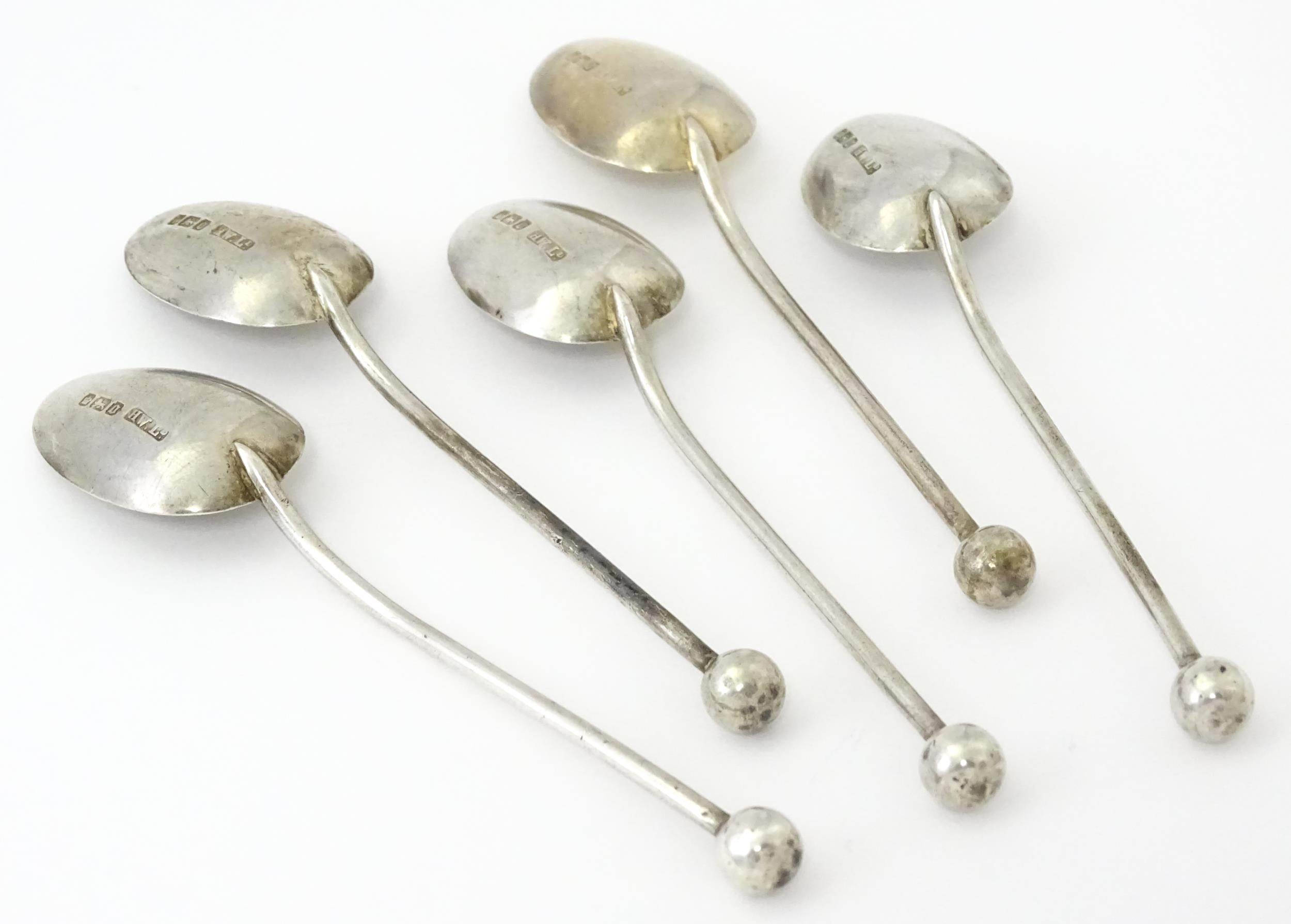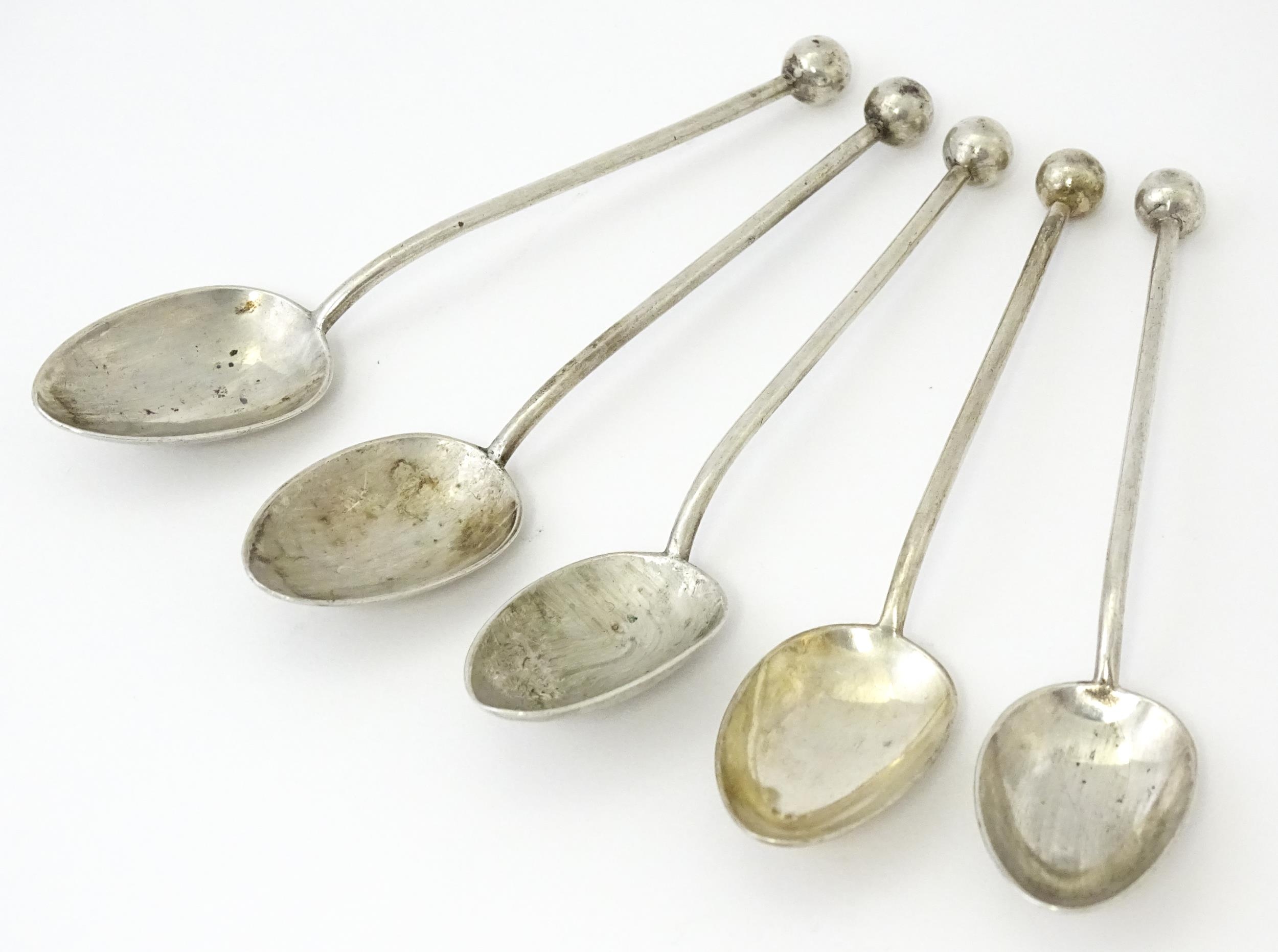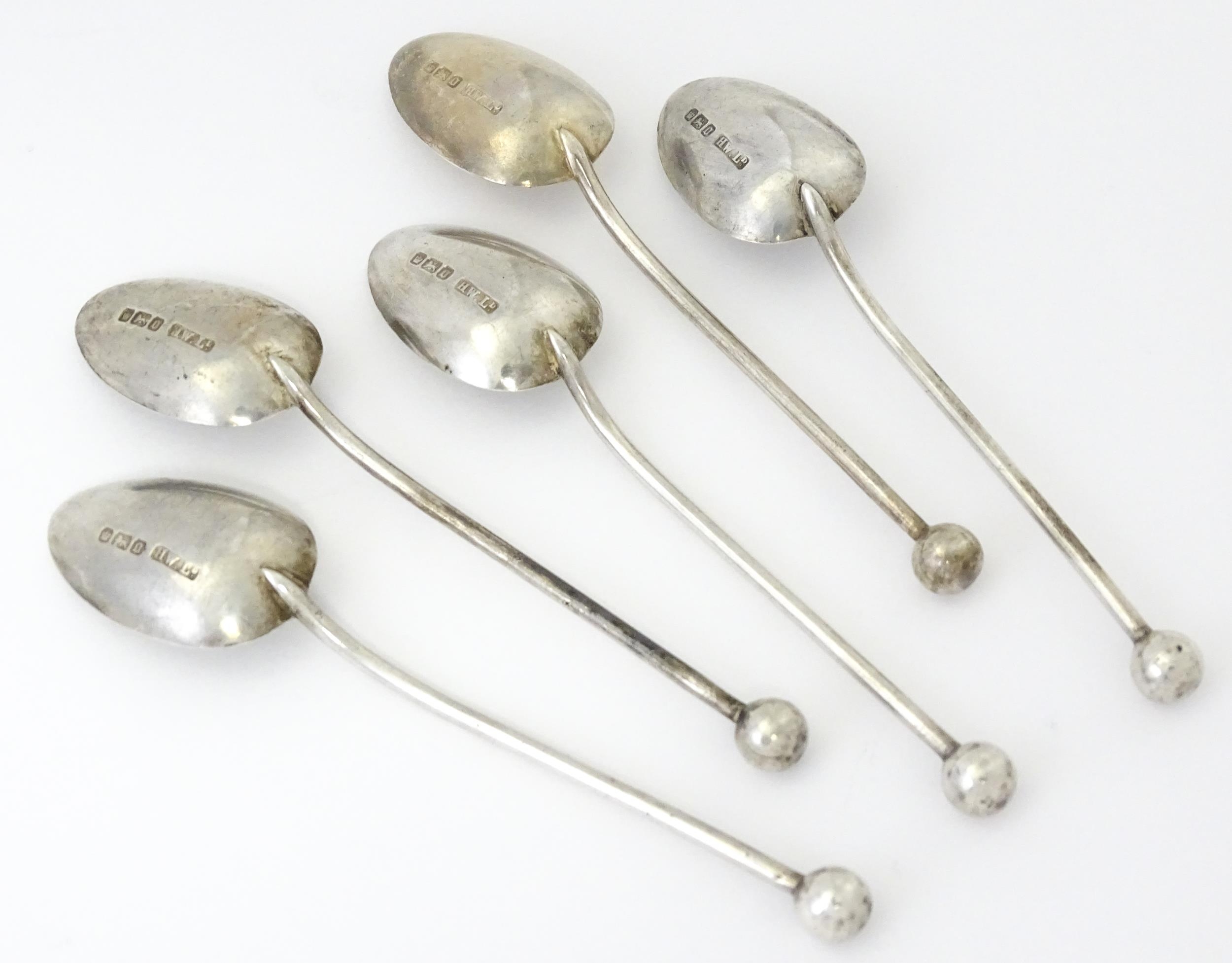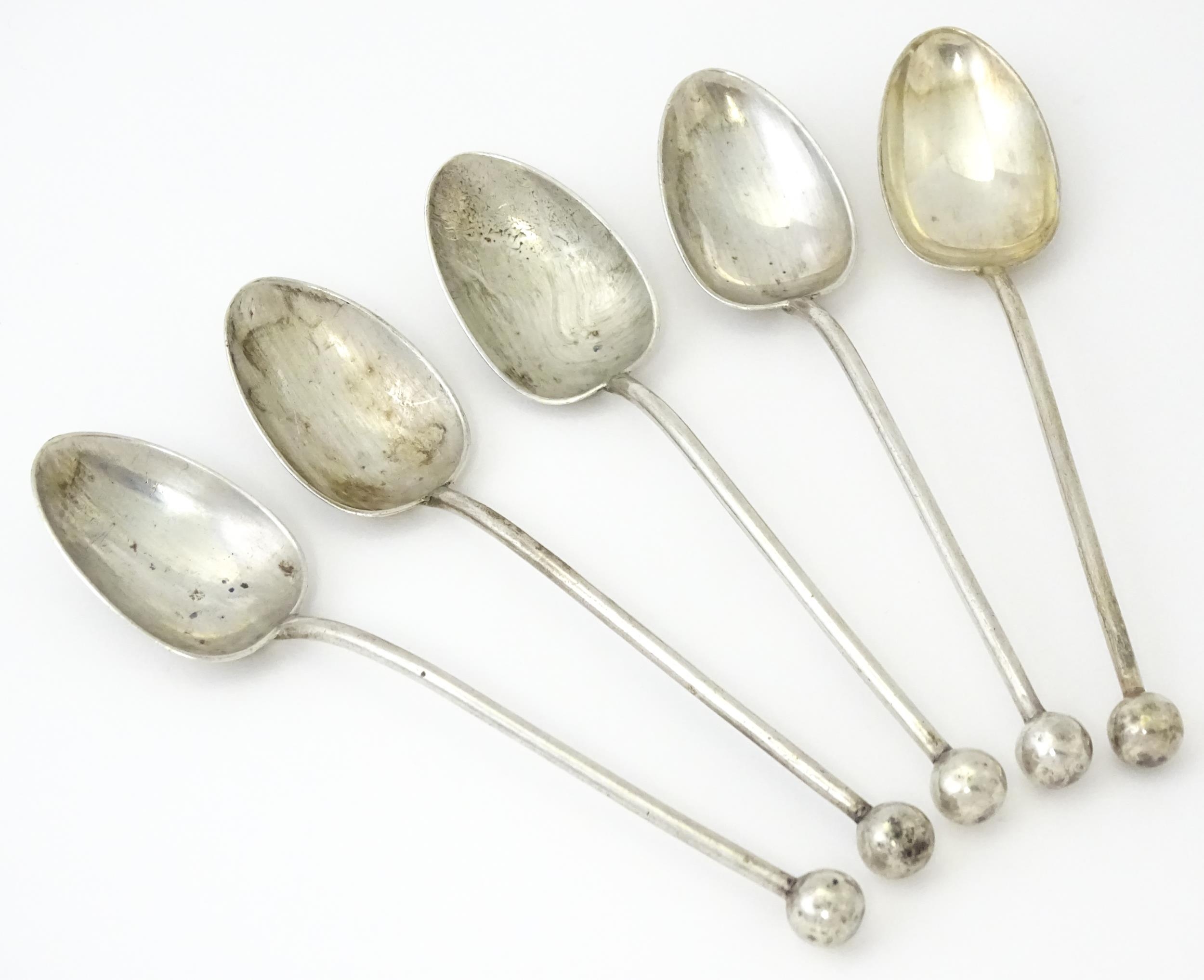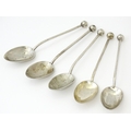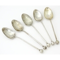 Five silver teaspoons with spherical finials hallmarked Sheffield 1906, maker Henry Williamson Ltd. Approx. 4 1/2" long (5)
