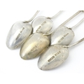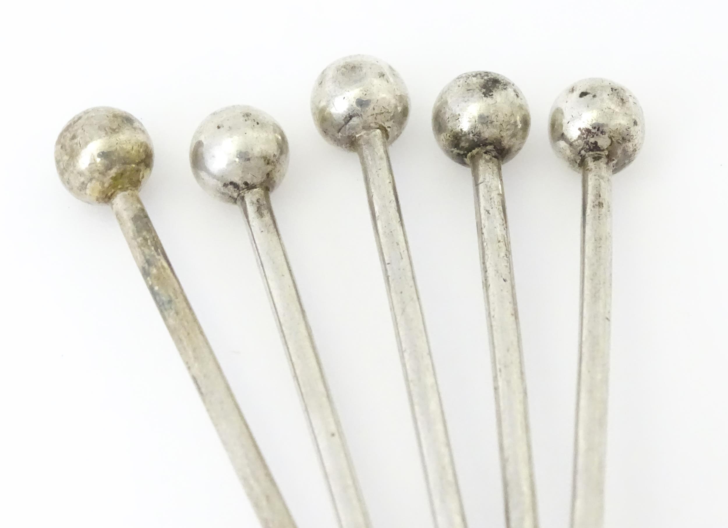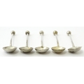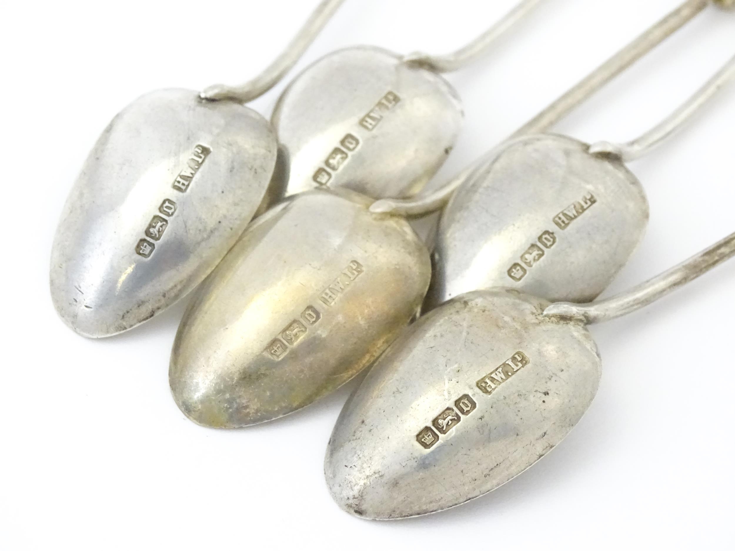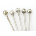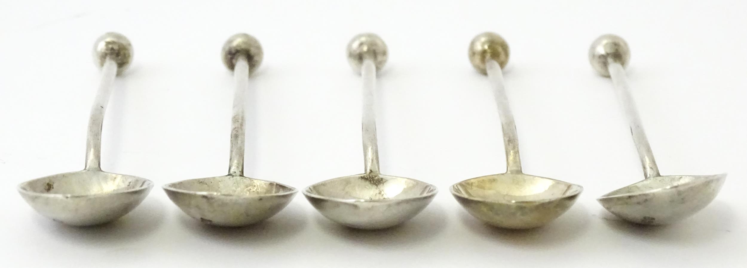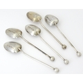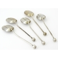 Five silver teaspoons with spherical finials hallmarked Sheffield 1906, maker Henry Williamson Ltd. Approx. 4 1/2" long (5)