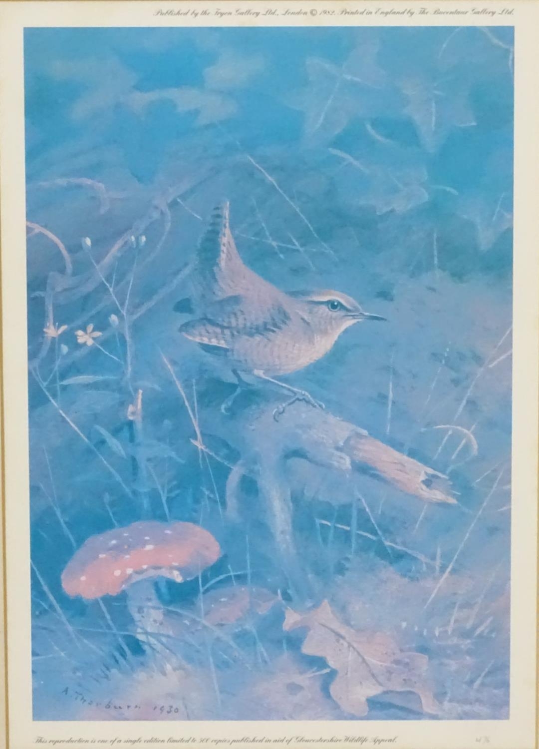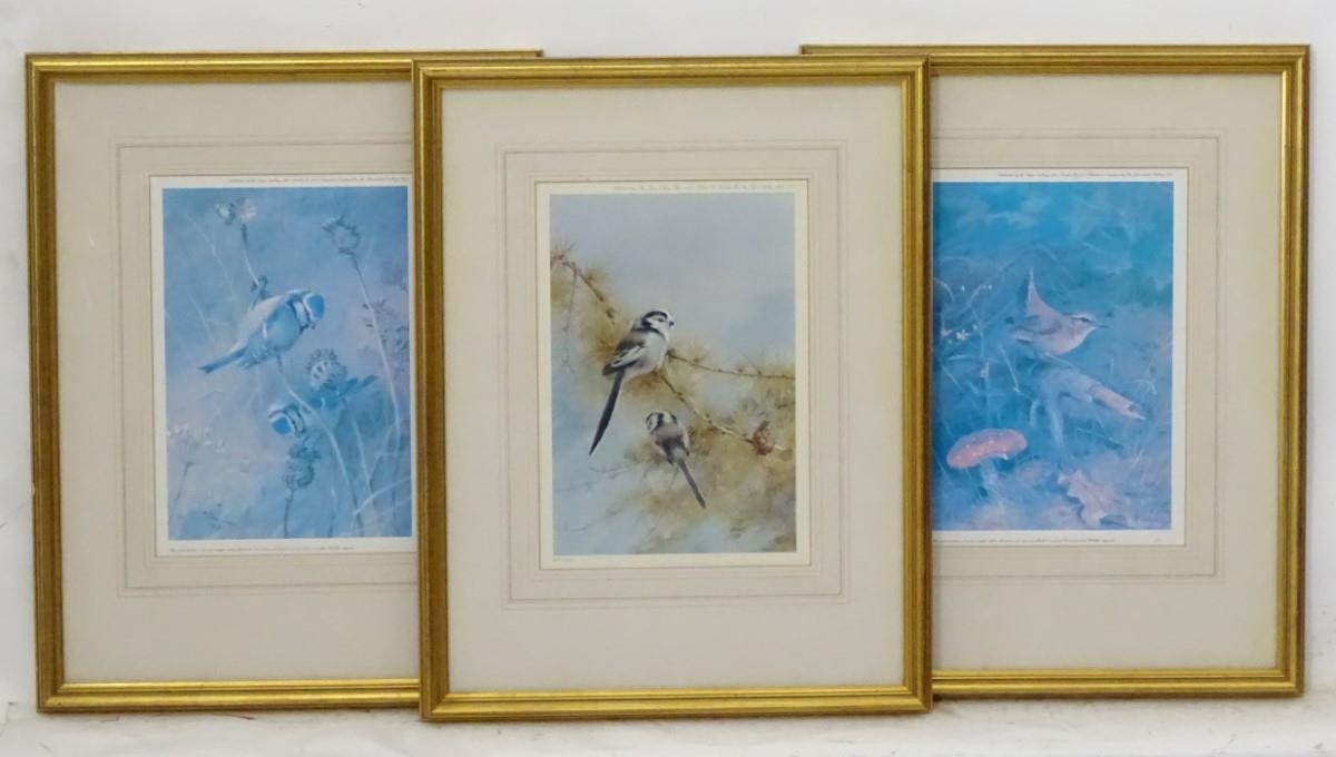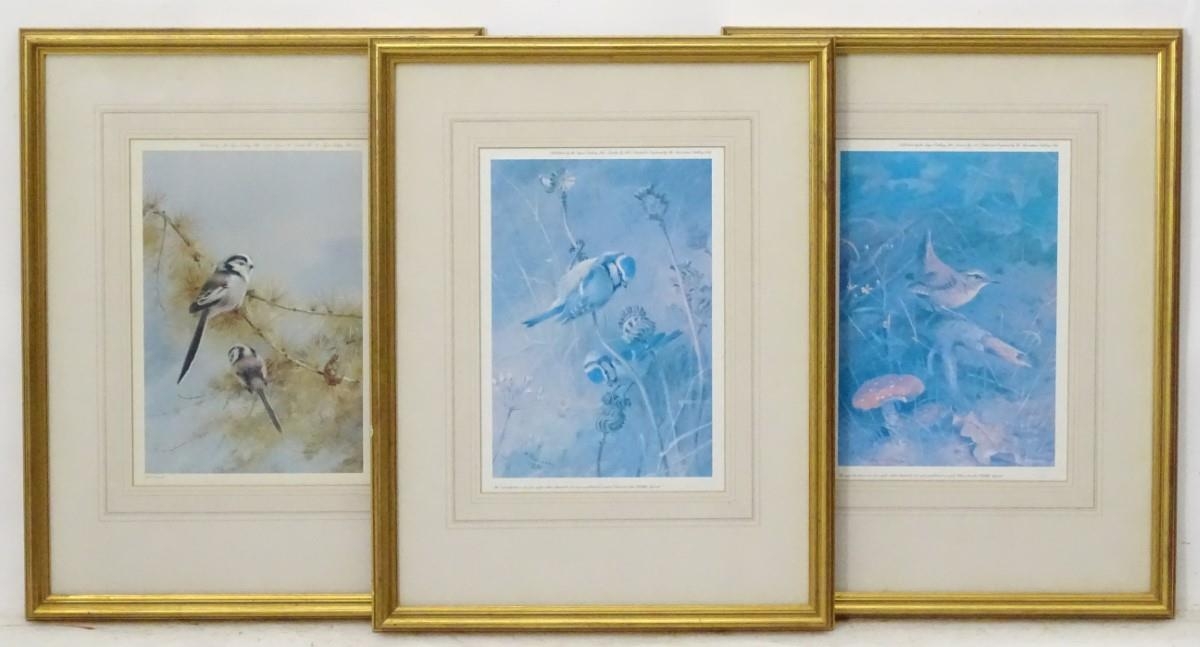 After Archibald Thornburn (1860-1935), 3 limited edition coloured prints for Tryon Gallery, Ornithological School, 475/500 (blue tits), 495/500 (Llong-tailed tits), 476/500 (Wren). Approximate aperture 11 1/2 x 8''