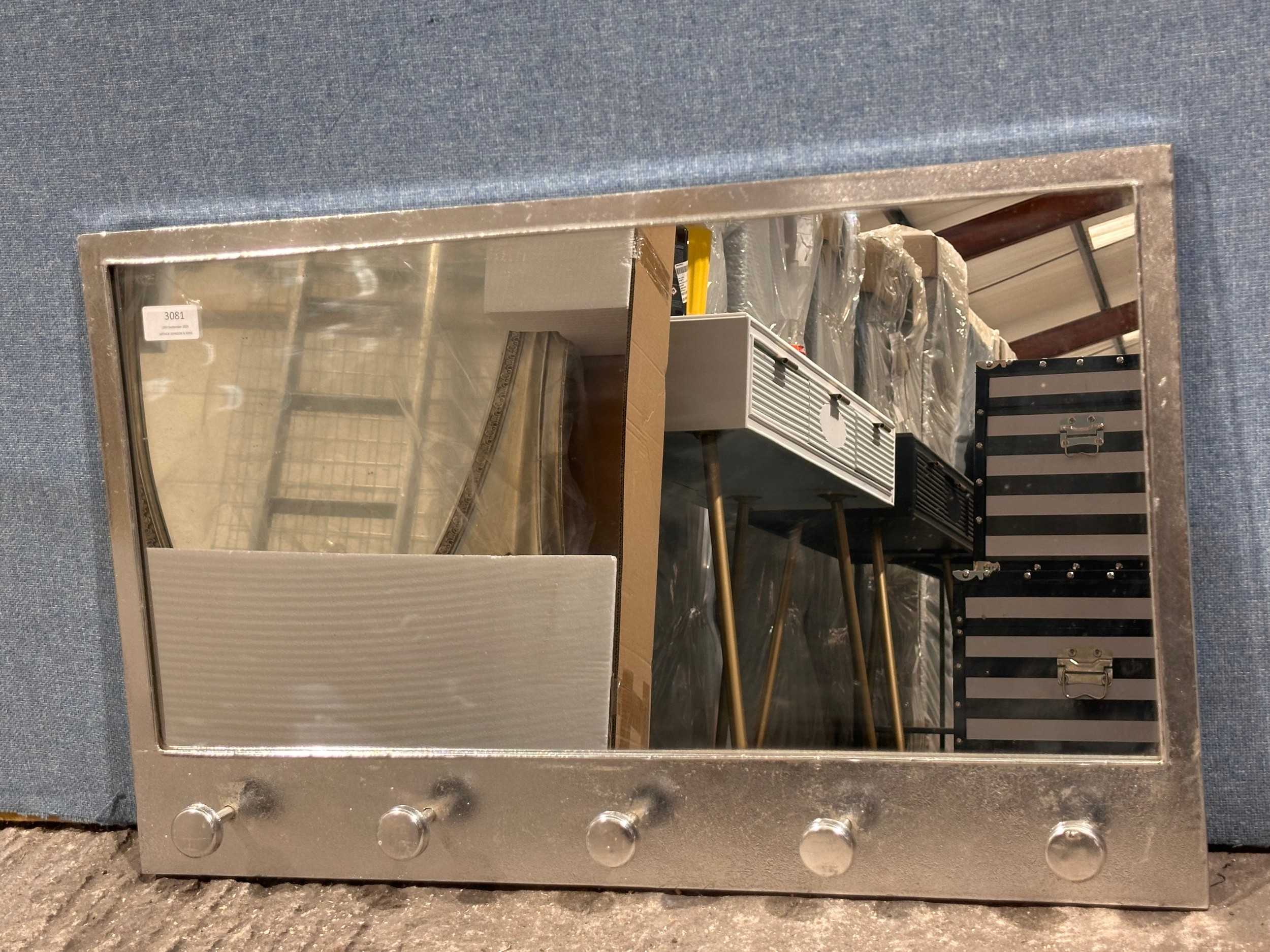 A five hook silver framed coat hook mirror