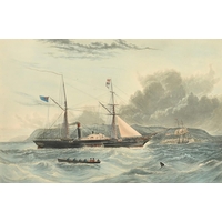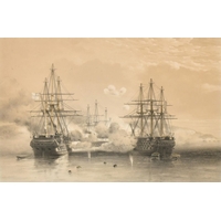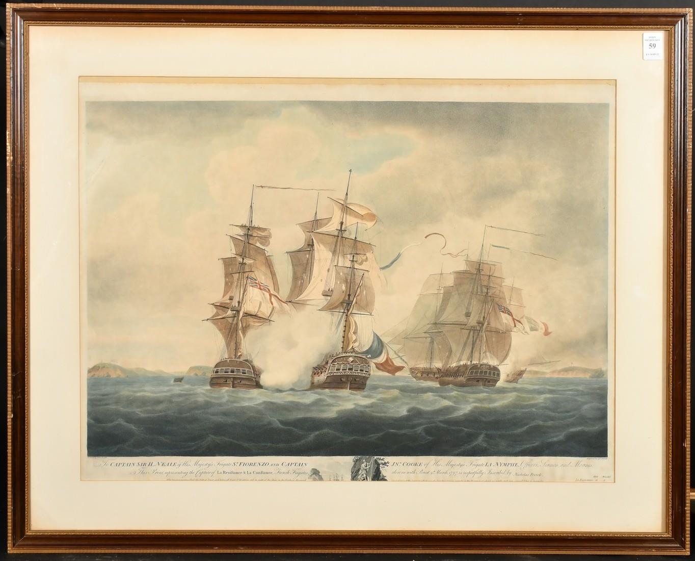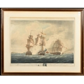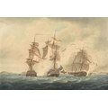 Robert Pollard after Pocock, a naval engagement off Brest, a hand-coloured aquatint, 18" x 24", (46x61cm) (a/f).