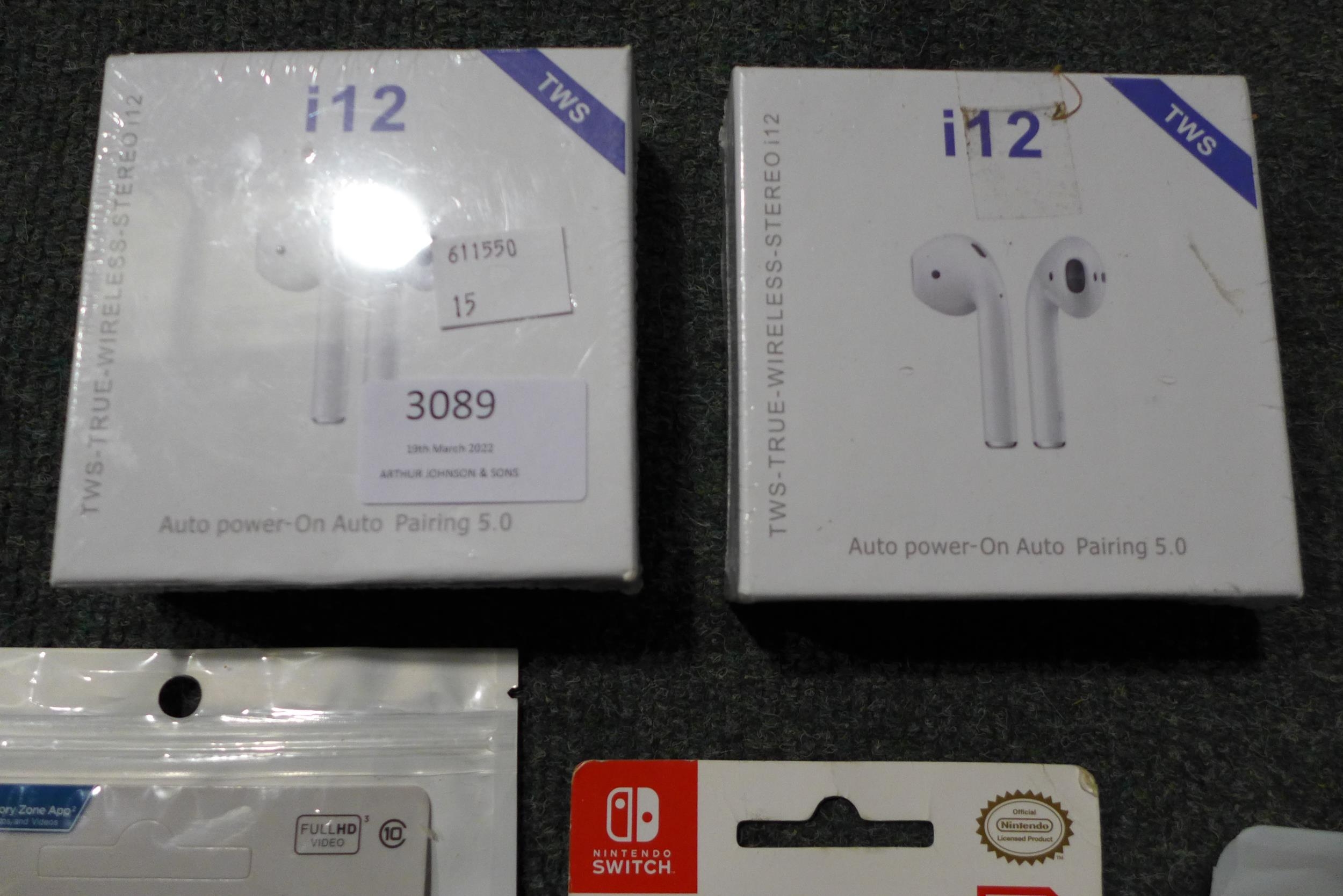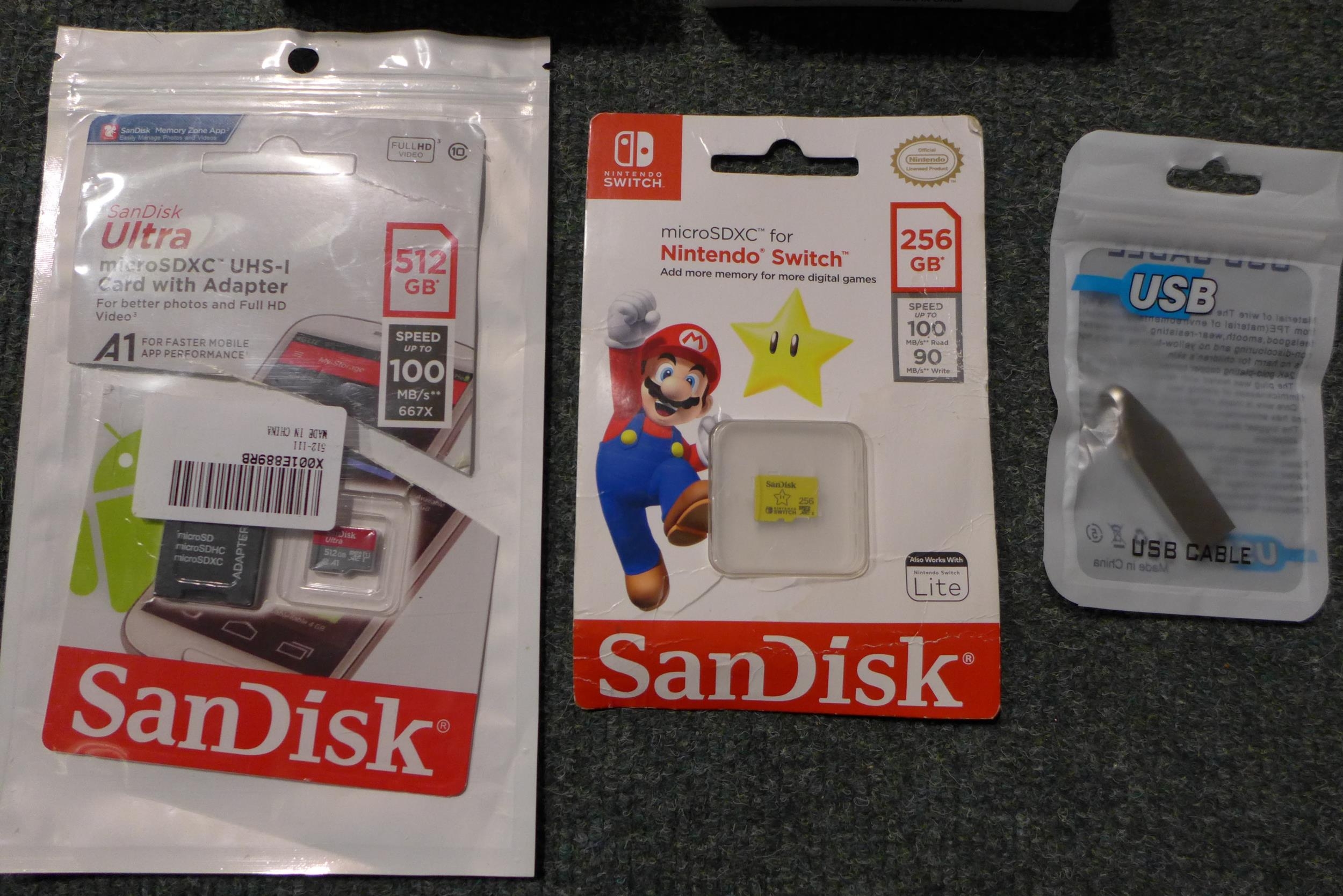 2 i12 wireless ear buds, a 1TB USB flash drive and two Sandisk micro SD cards: 512gb & 256gb