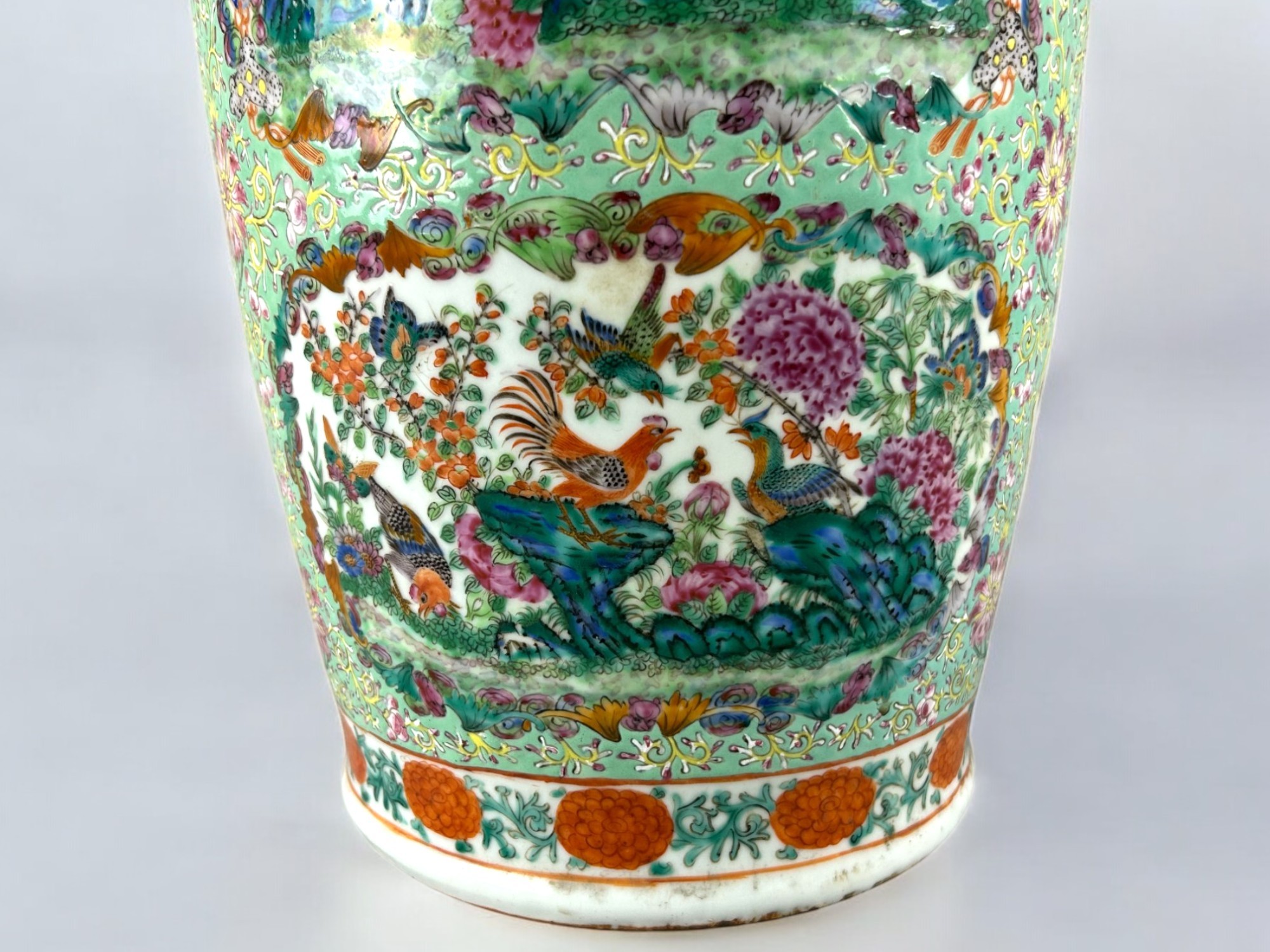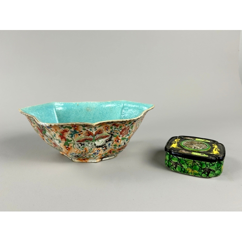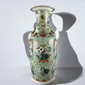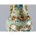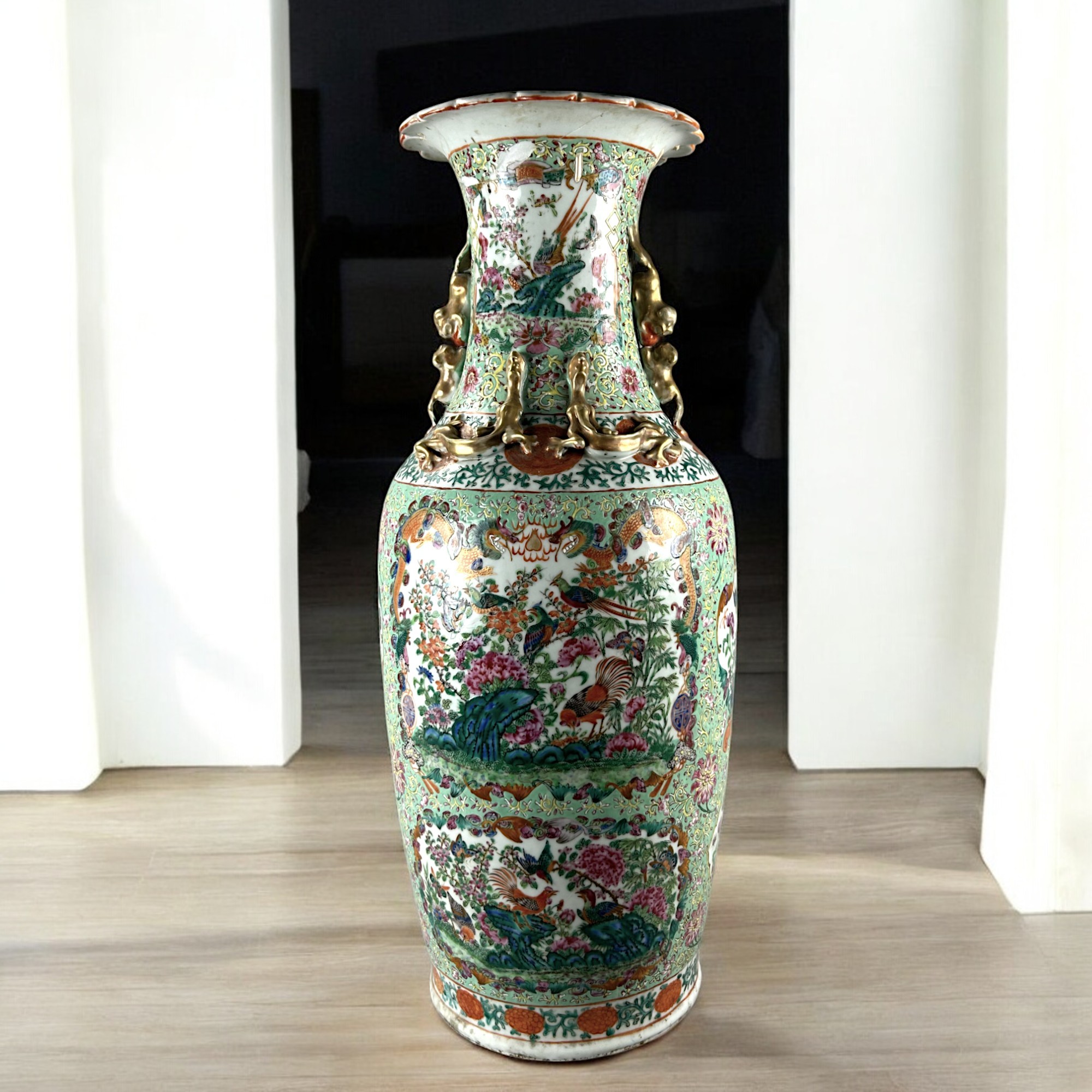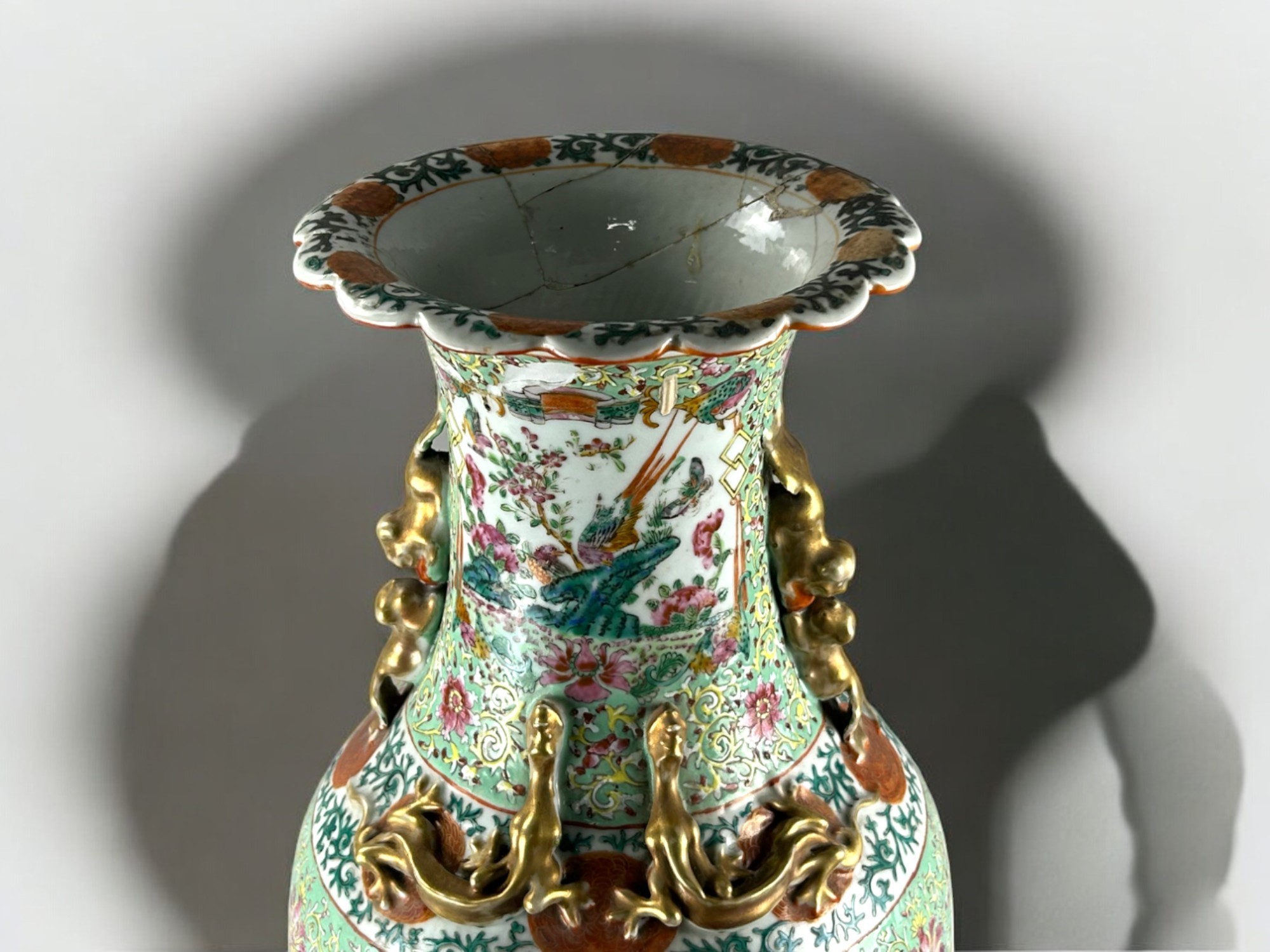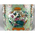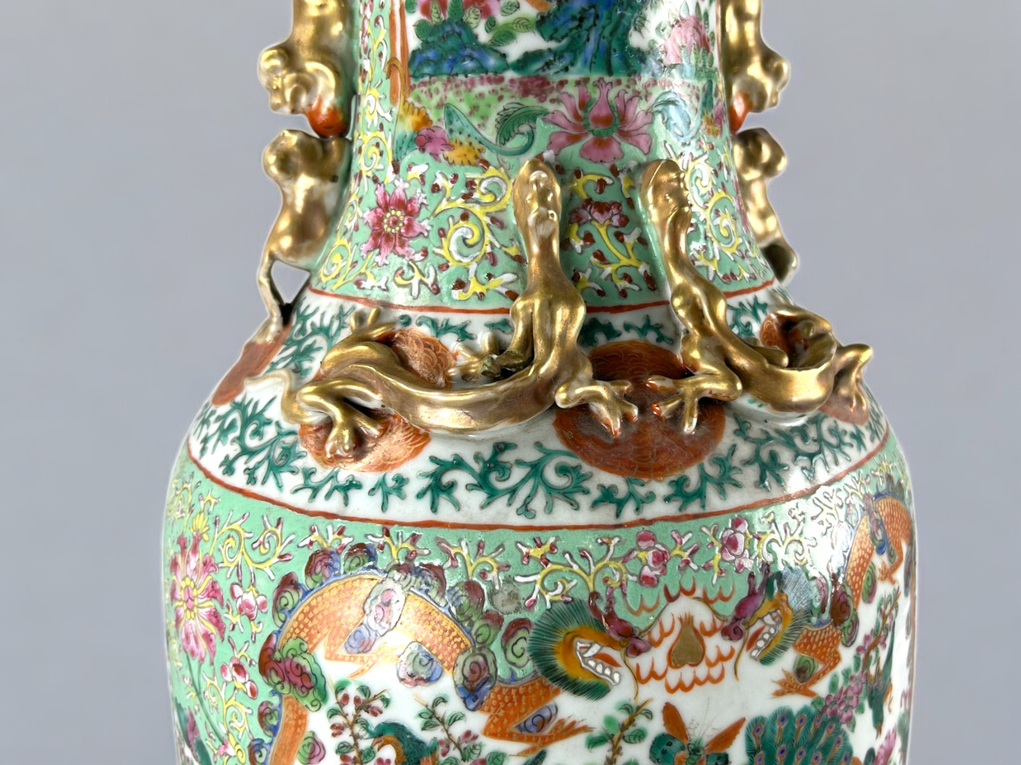 Turquoise ground, finely painted with panels of exotic birds and foliage amongst stylised blossoming foliate and mounted with gilt dragons.