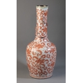 A LARGE CHINESE PORCELAIN CORAL RED GLAZED BOTTLE VASE