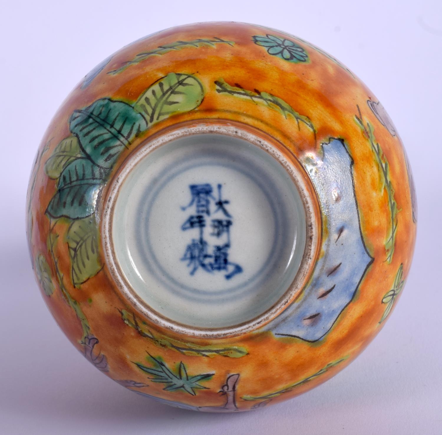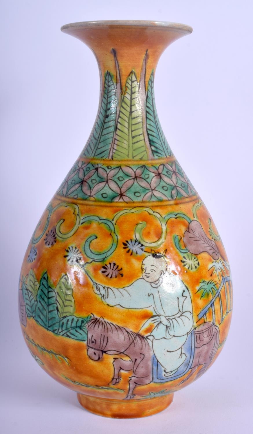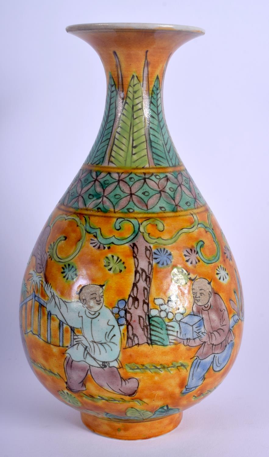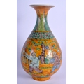 A CHINESE YELLOW GLAZED PORCELAIN VASE 20th Century, painted with figures. 20 cm high.