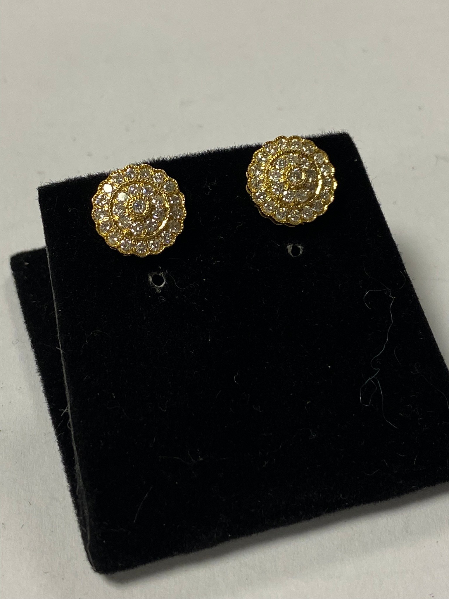 A pair of diamond cluster earrings, each of circular tiered design, set in 18ct yellow gold -
