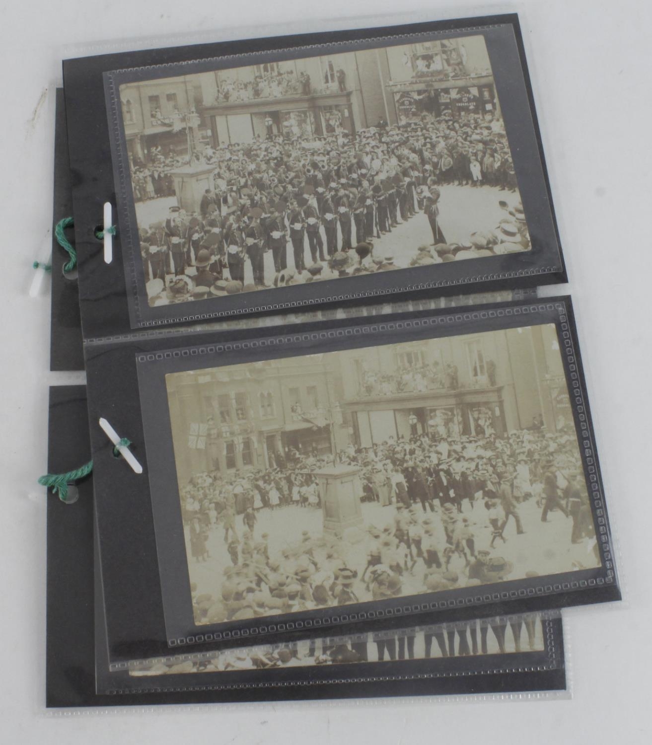 Suffolk, Bungay: 1911 Coronation Day Celebrations - a series of RP cards showing various groups inc military in Bungay Town cantre. Fine and rare assembly (8 cards)