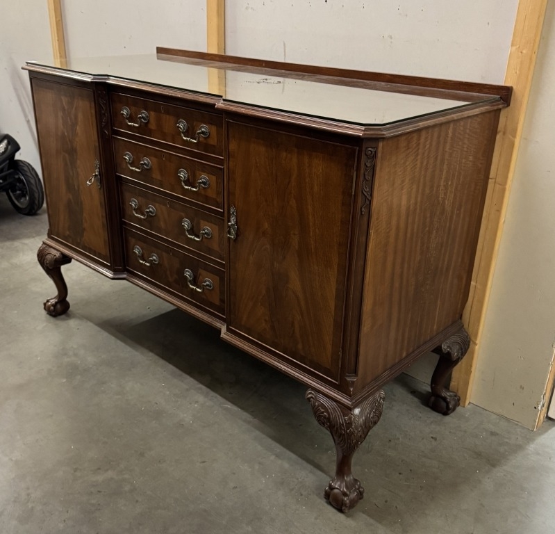 A large Edwardian mahogany sideboard with cupboard & drawers on ball & claw feet