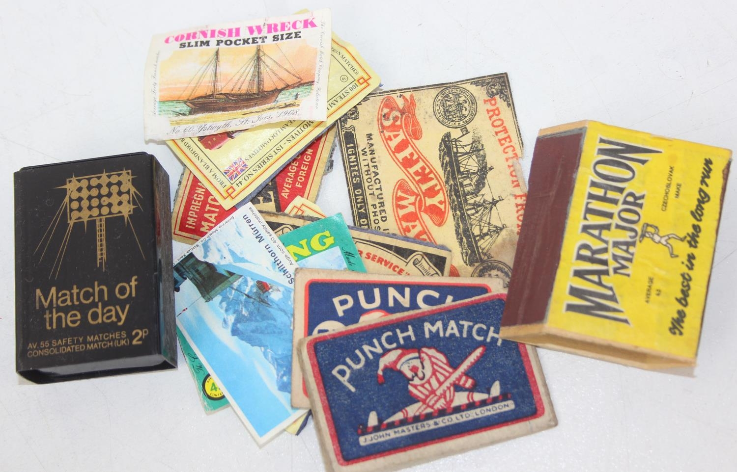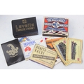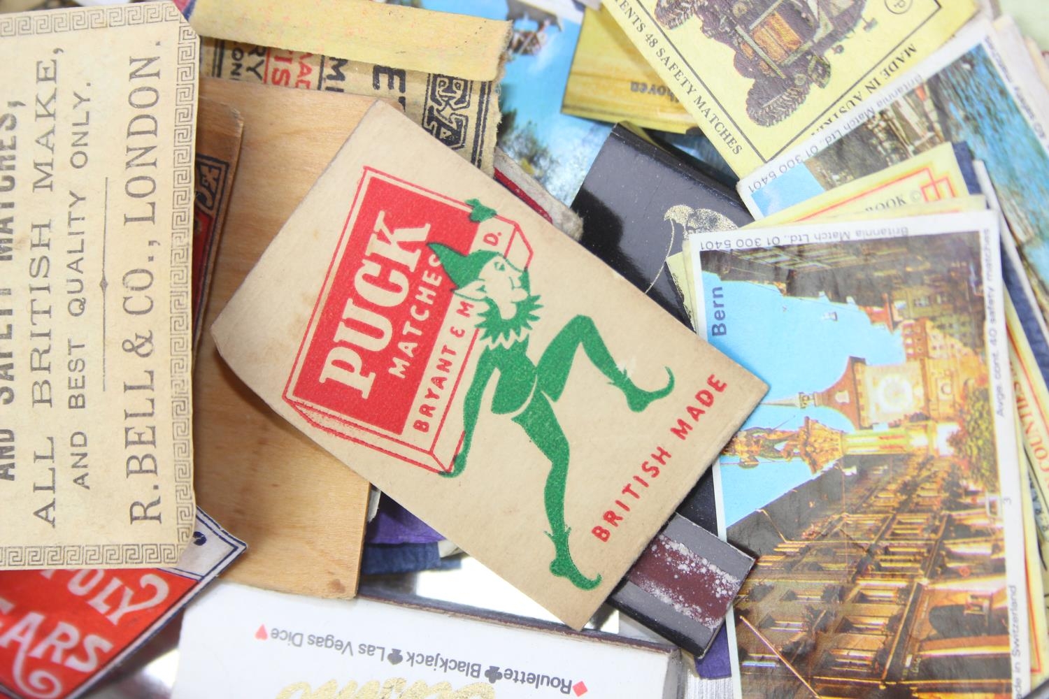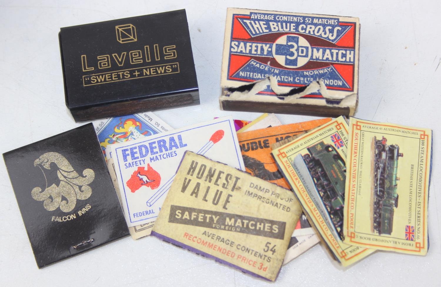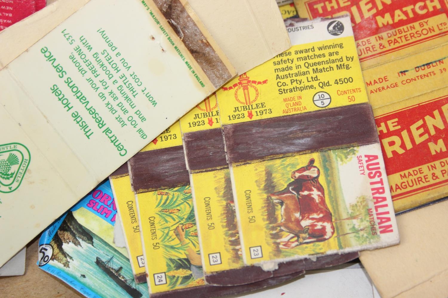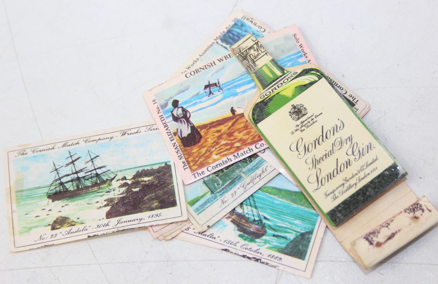 Advertising - Phillumeny - two vintage tins containing antique and later matchbox advertising covers or labels, Huntley & Palmers Afternoon Tea Biscuits & Olde Edinburgh Scotch Shortbread tins [2]