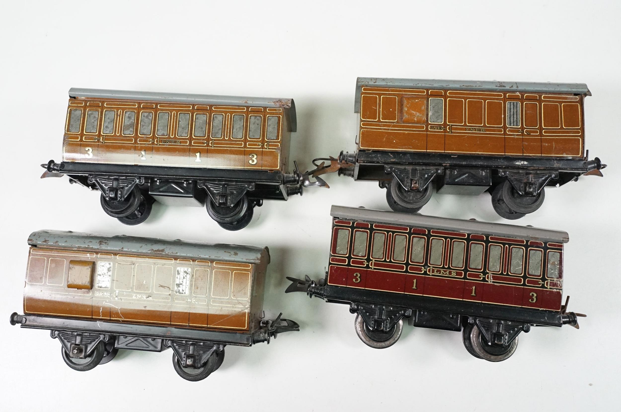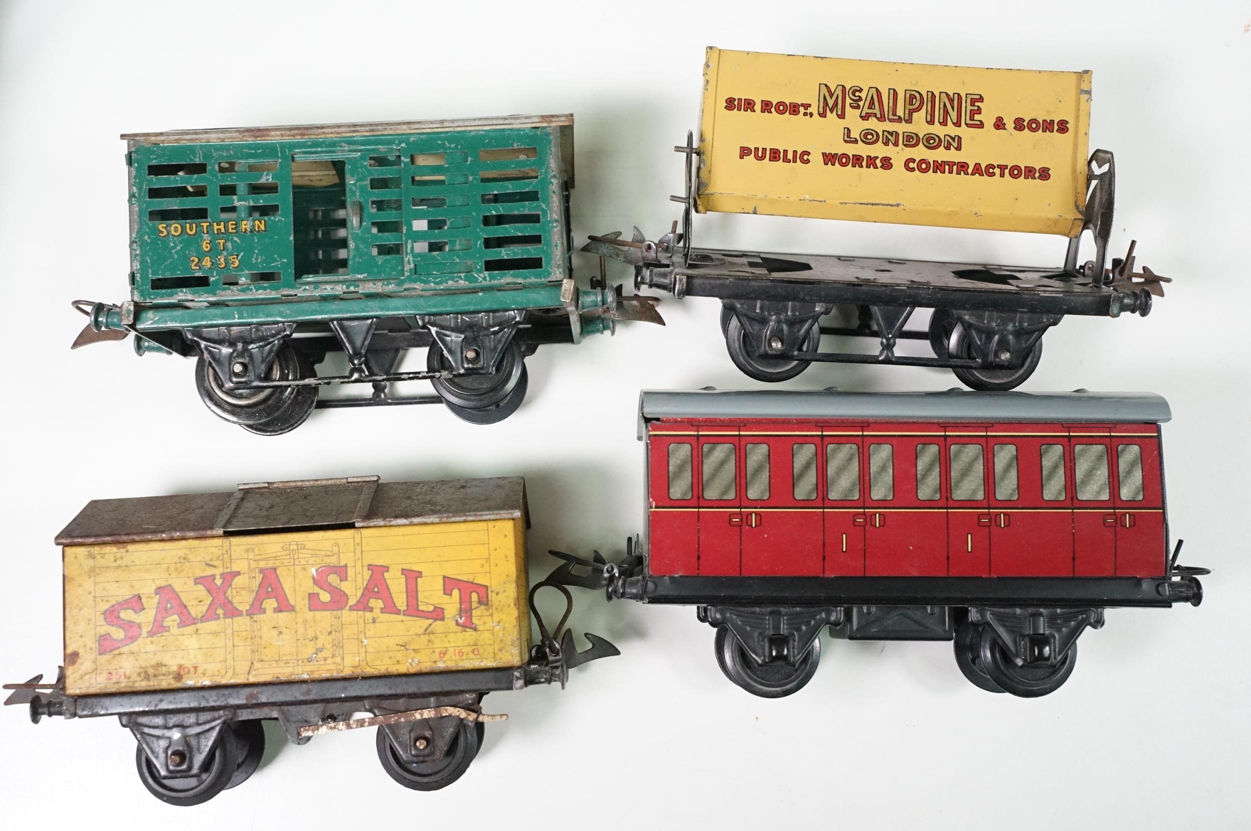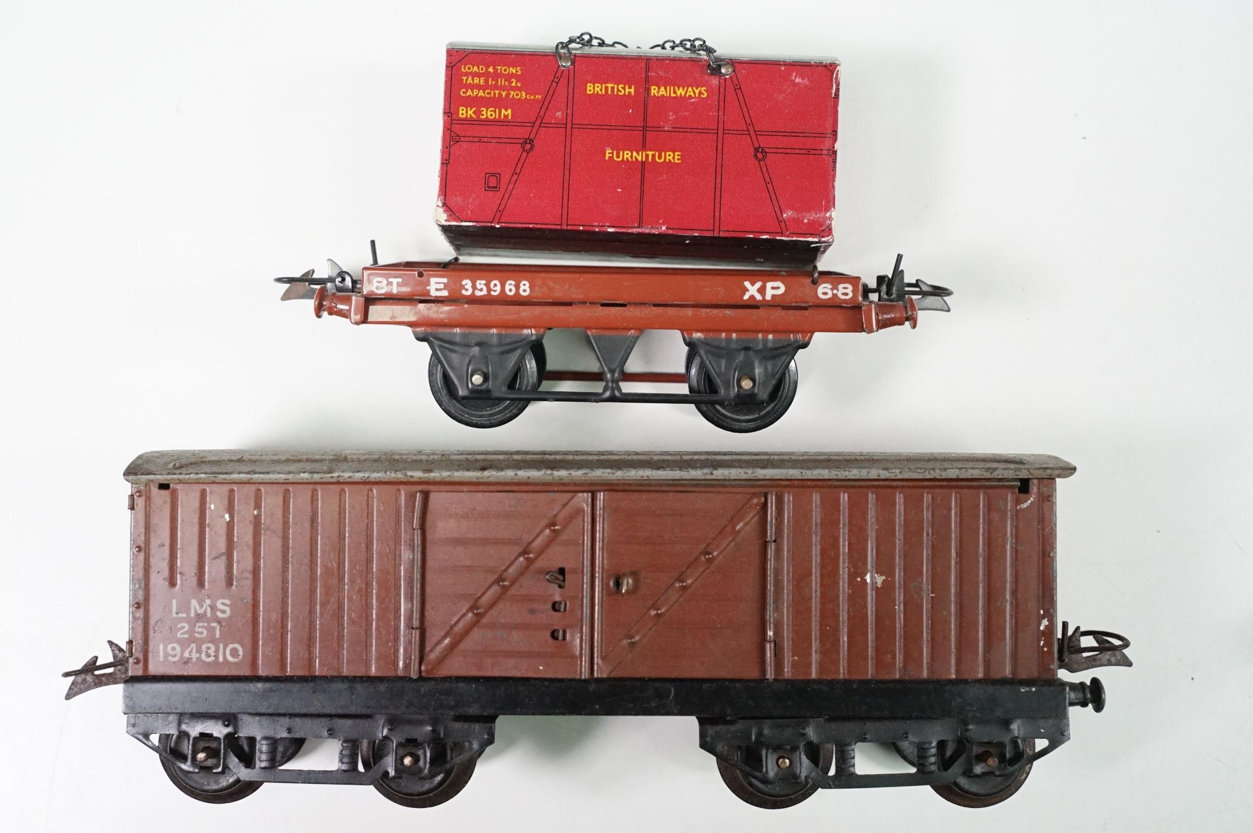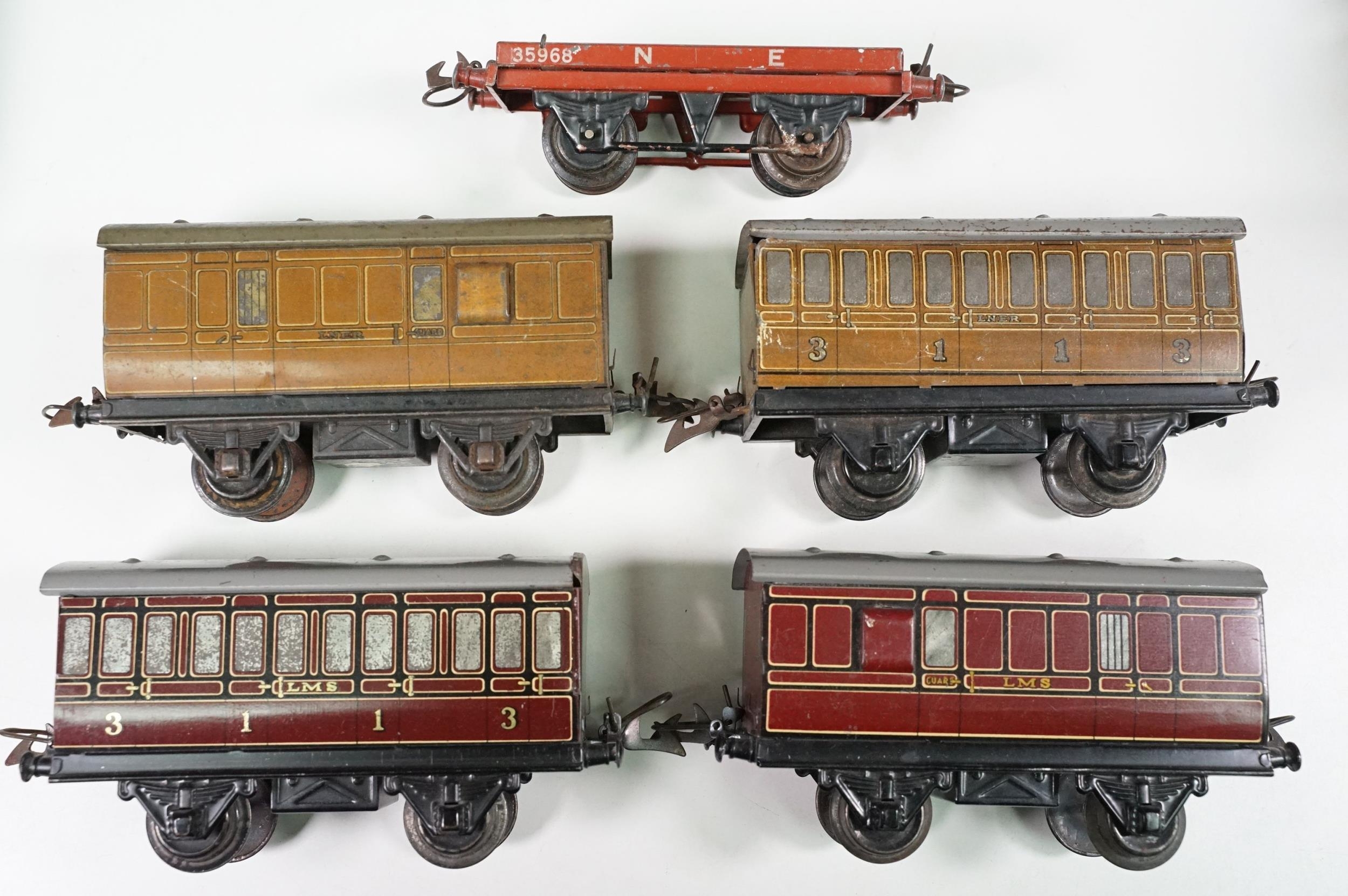 Collection of Hornby O gauge model railway to include 19 x items of rolling stock featuring Shell Lubricating Tanker, platform building, 3 x boxed No 1 Buffer Stop and a boxed Passenger Set No 21 with locomotive, coaches and track, plus a Marx O gauge New York Central 2-4-2 locomotive and tender (two boxes)