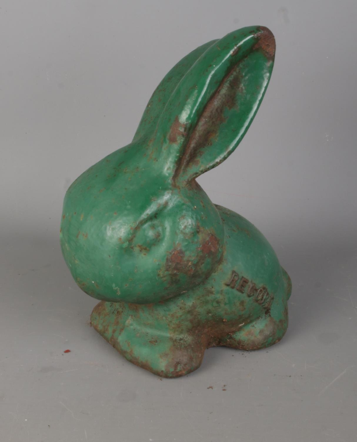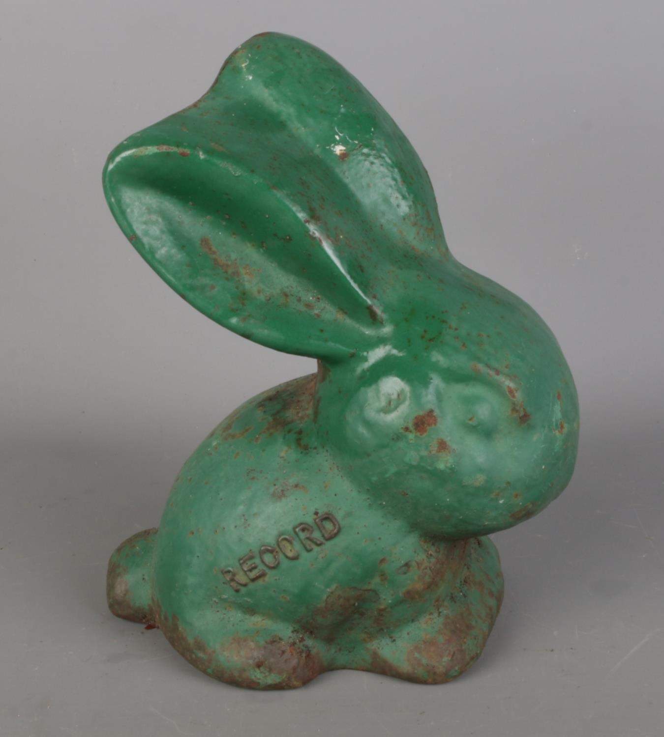 A rare cast iron green painted 'Record' model of a rabbit. H18cm.