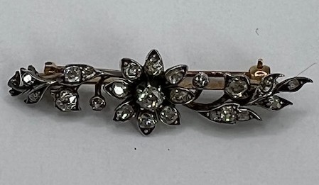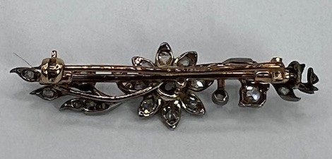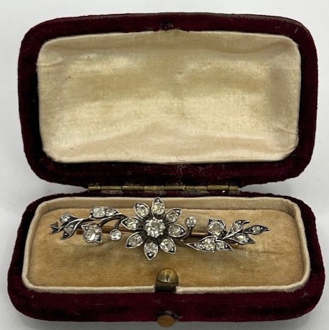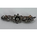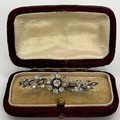 An early 20th century diamond floral bar brooch, 43 mm wide, boxed