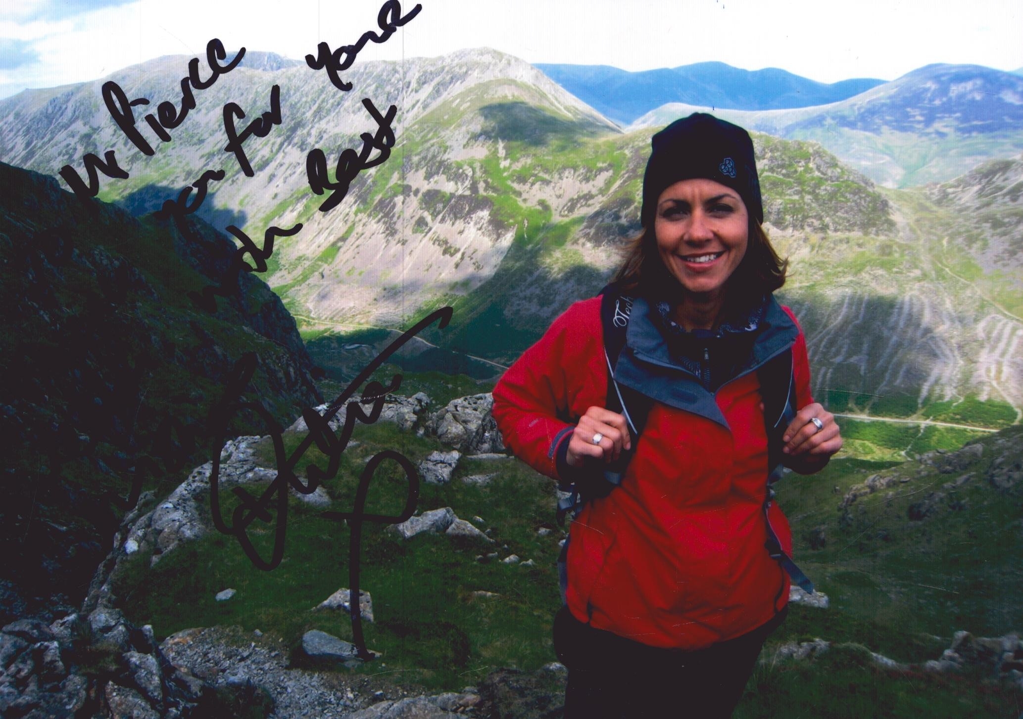 Julia Bradbury signed coloured photo, 7x5 inch, DEDICATED.
