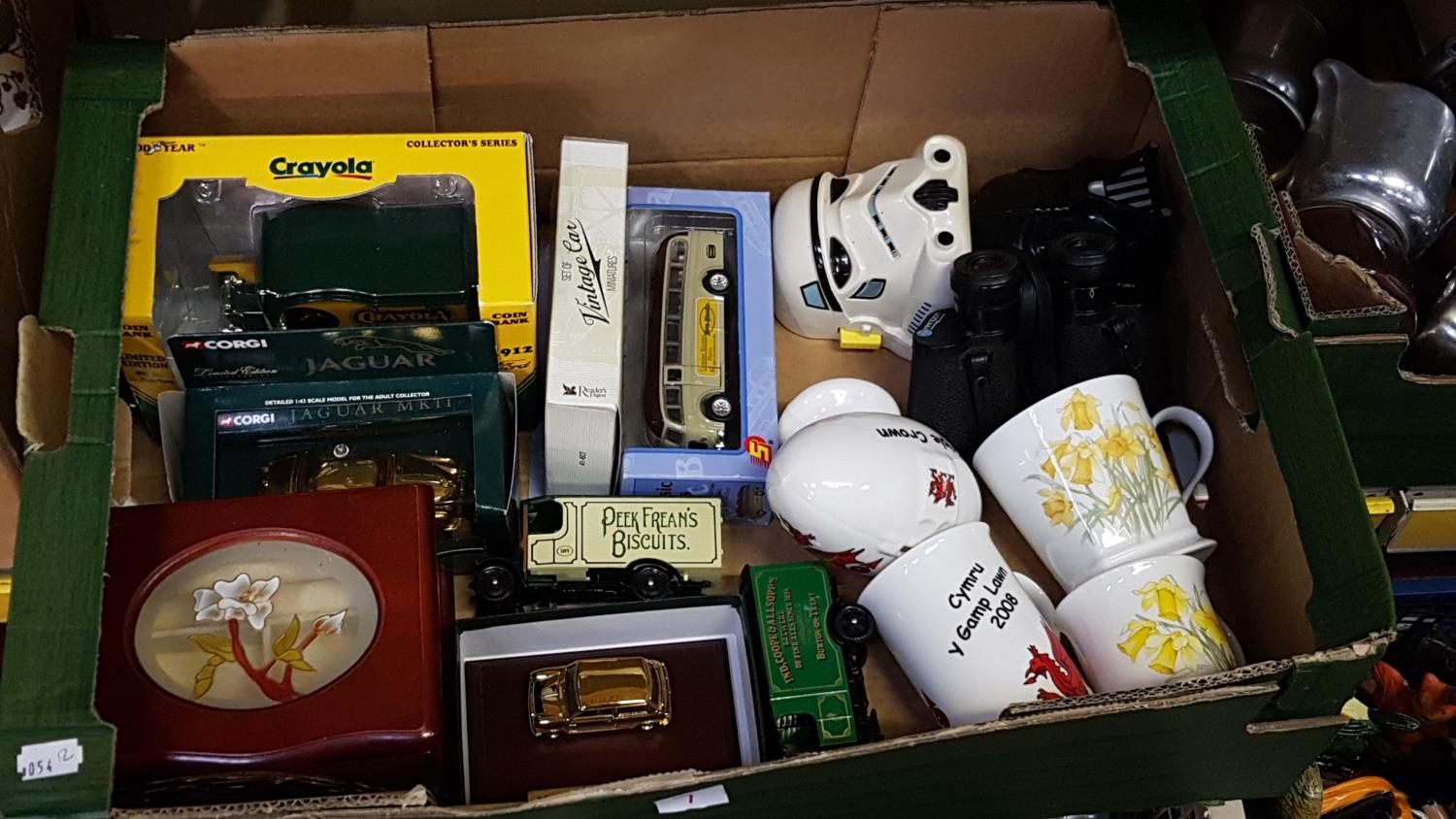 Box to Include Corgi Collectors Vehicles, Jewellery Cabinet, Star Wars Walkie Talkies, Binoculars etc.