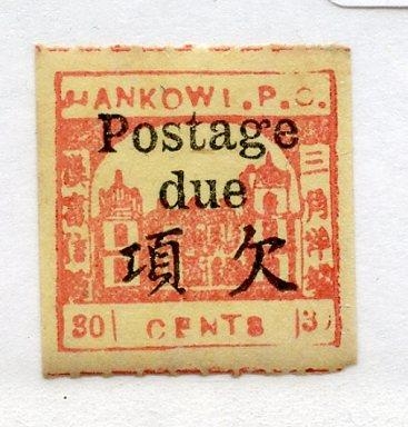 CHINA HANKOW 1894 30c red on greenish yellow um? Spot on reverse. SG DB. Cat £400.