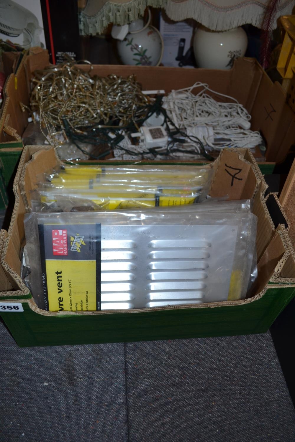 BOX OF HARDWARE AND BOX OF LIGHTING