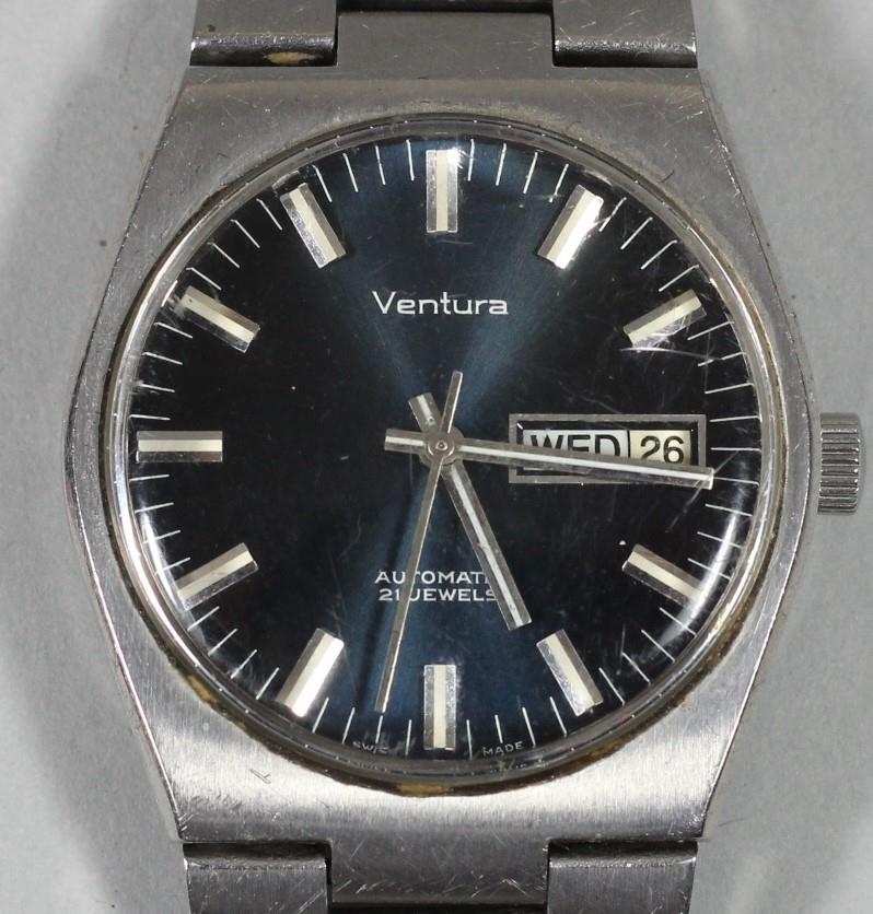 Ventura, a gentleman's stainless steel automatic day/date wristwatch, c1970's, paperwork, box.
