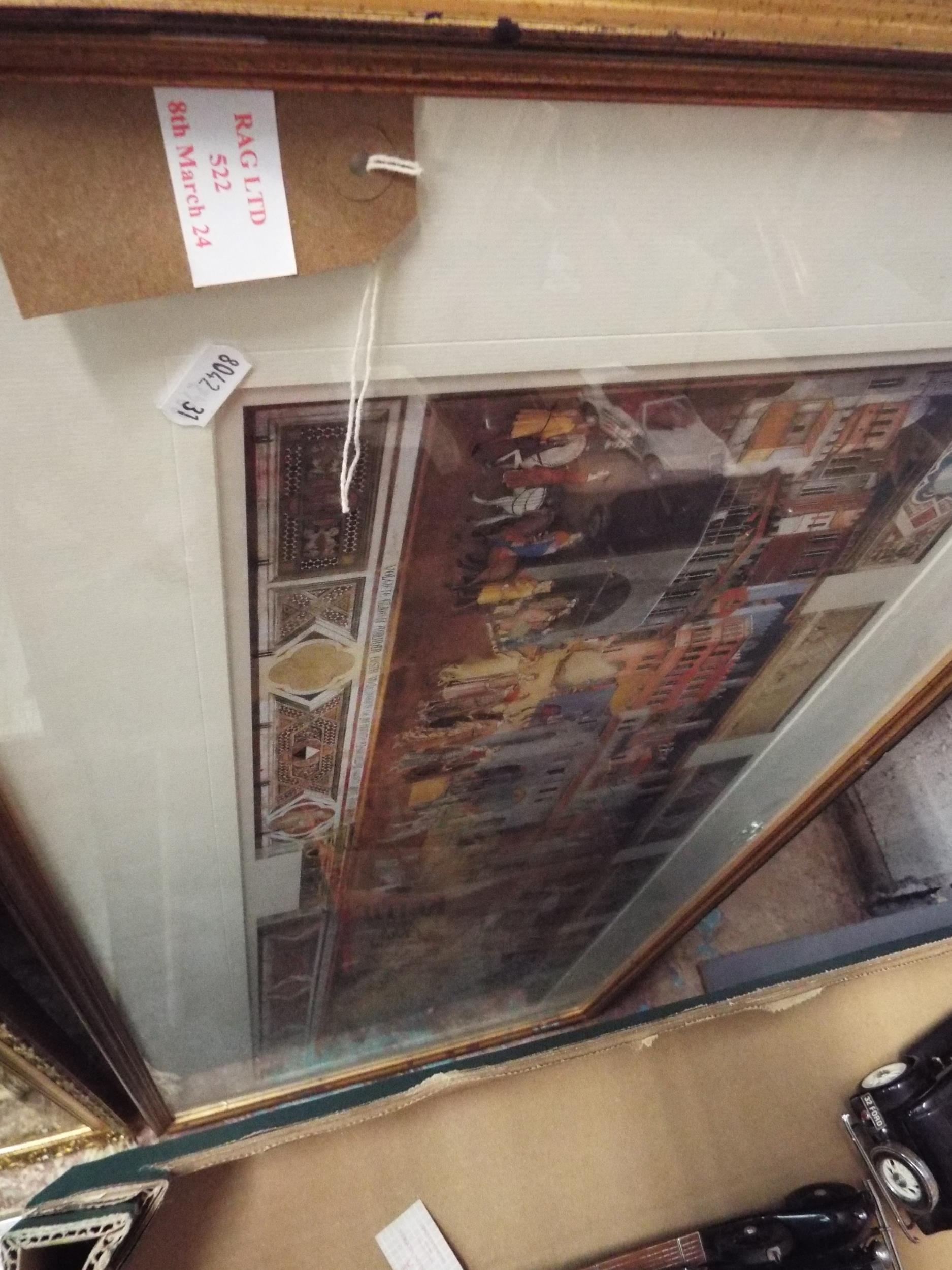 A framed print 'The Good Government on the City and State of Sienne' details verso