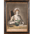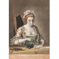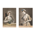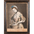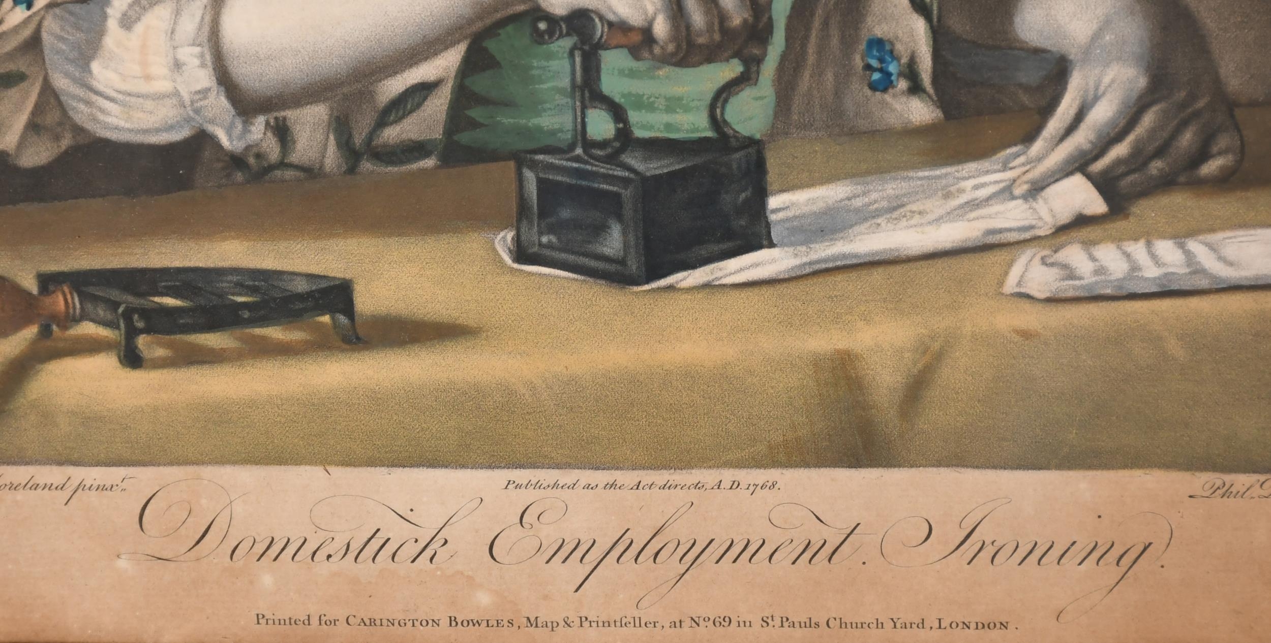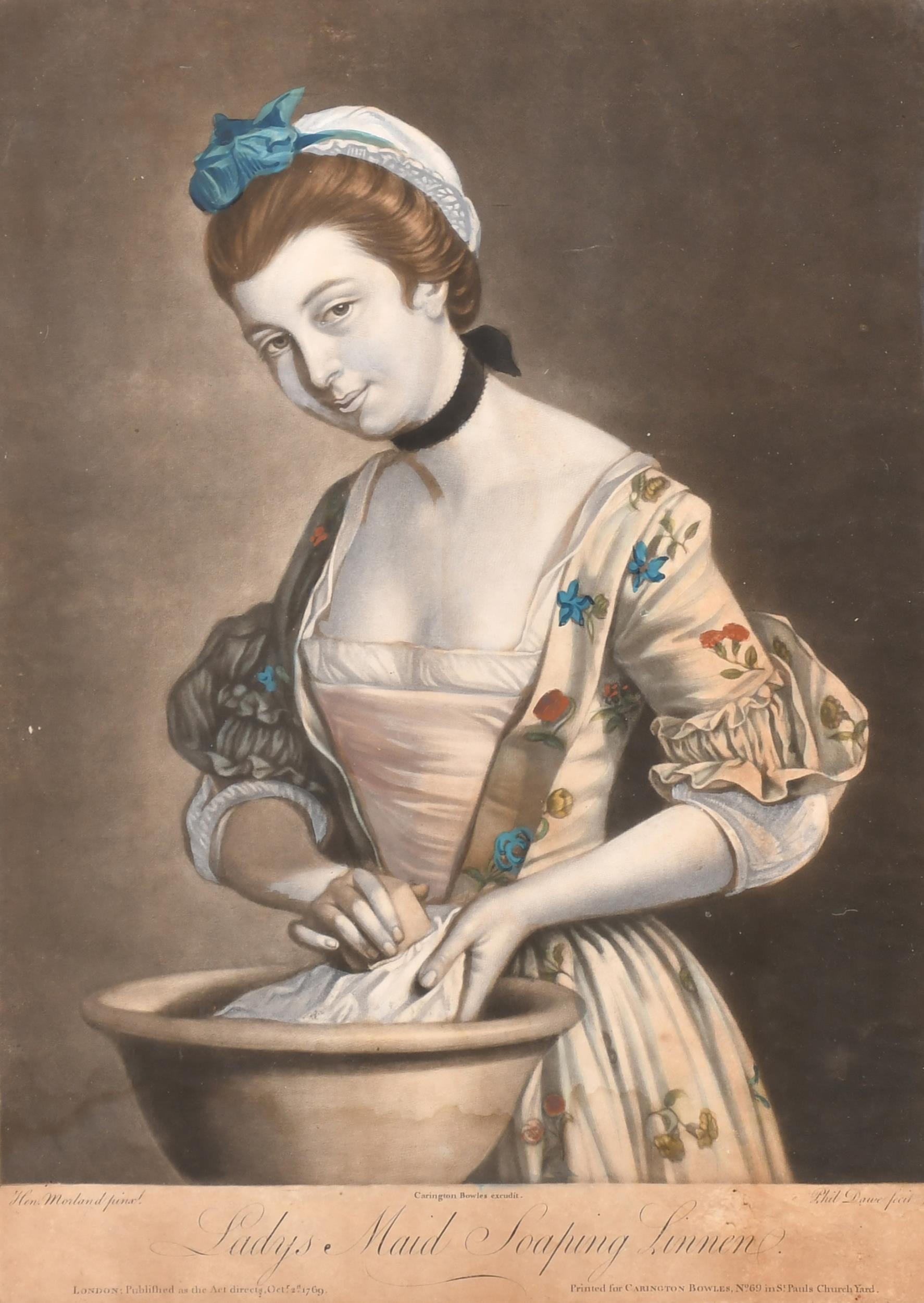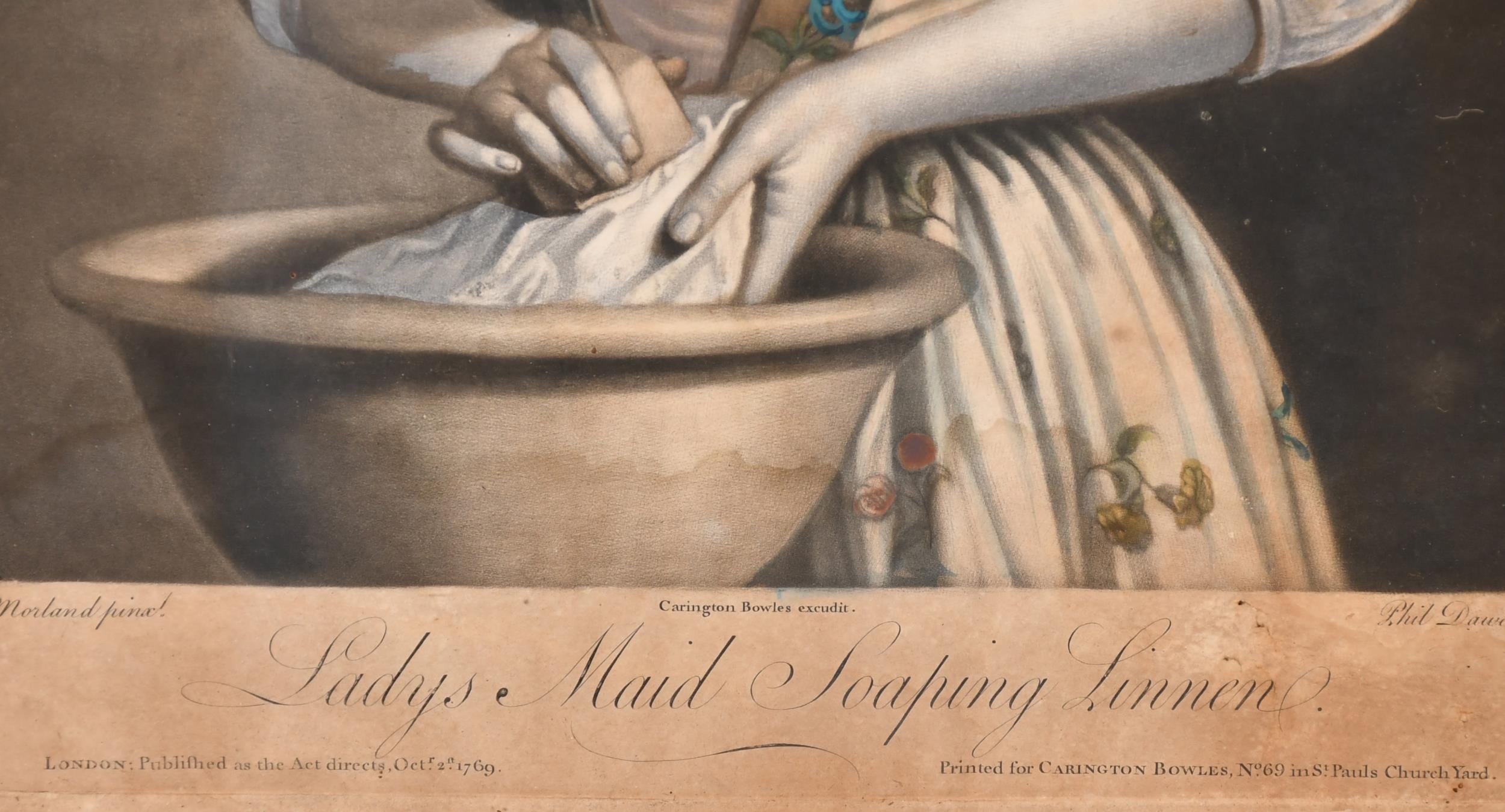 Henry Robert Morland (1716-1797) British. "Domestick Employment Ironing", Mezzotint by Philip Dawe, In a period frame, Overall 14.25" x 10.25" (36.2 x 26cm) and the companion piece "Lady's Maid Soaping Linnen", a pair (2)