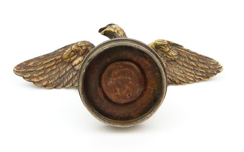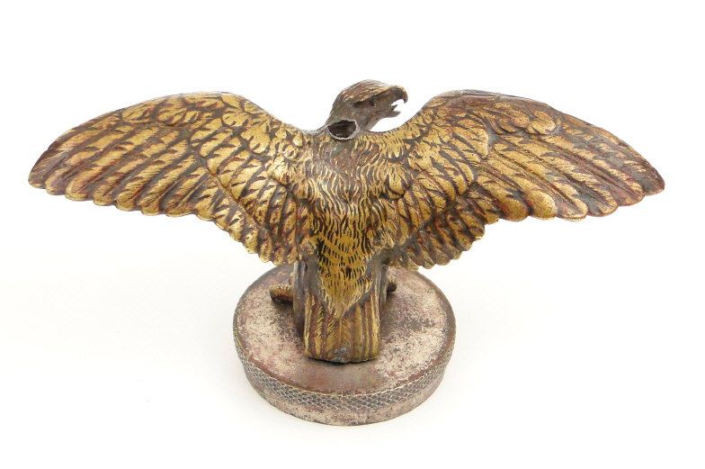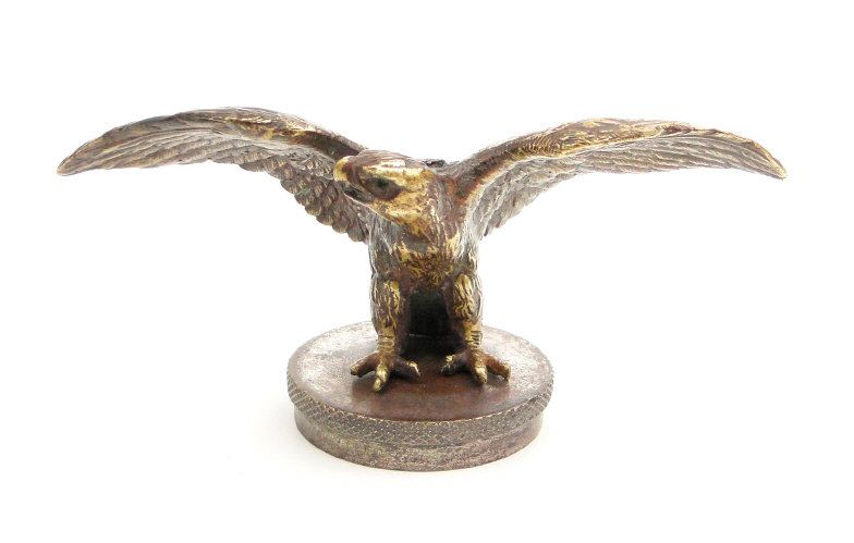 Brass eagle car radiator cap mascot, 12cm wingspan