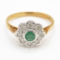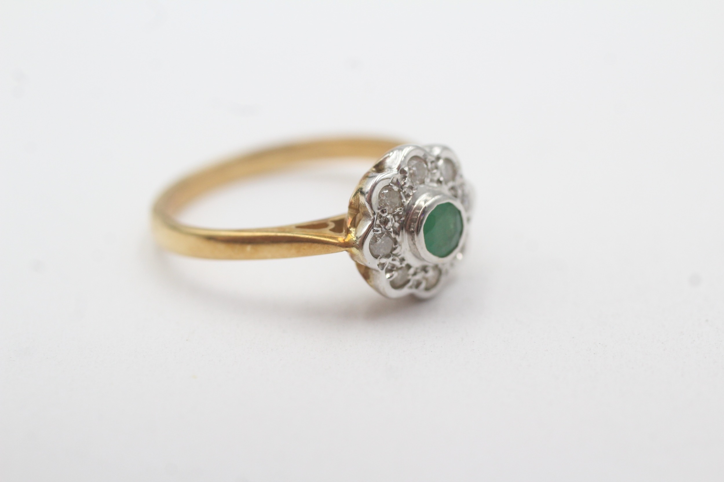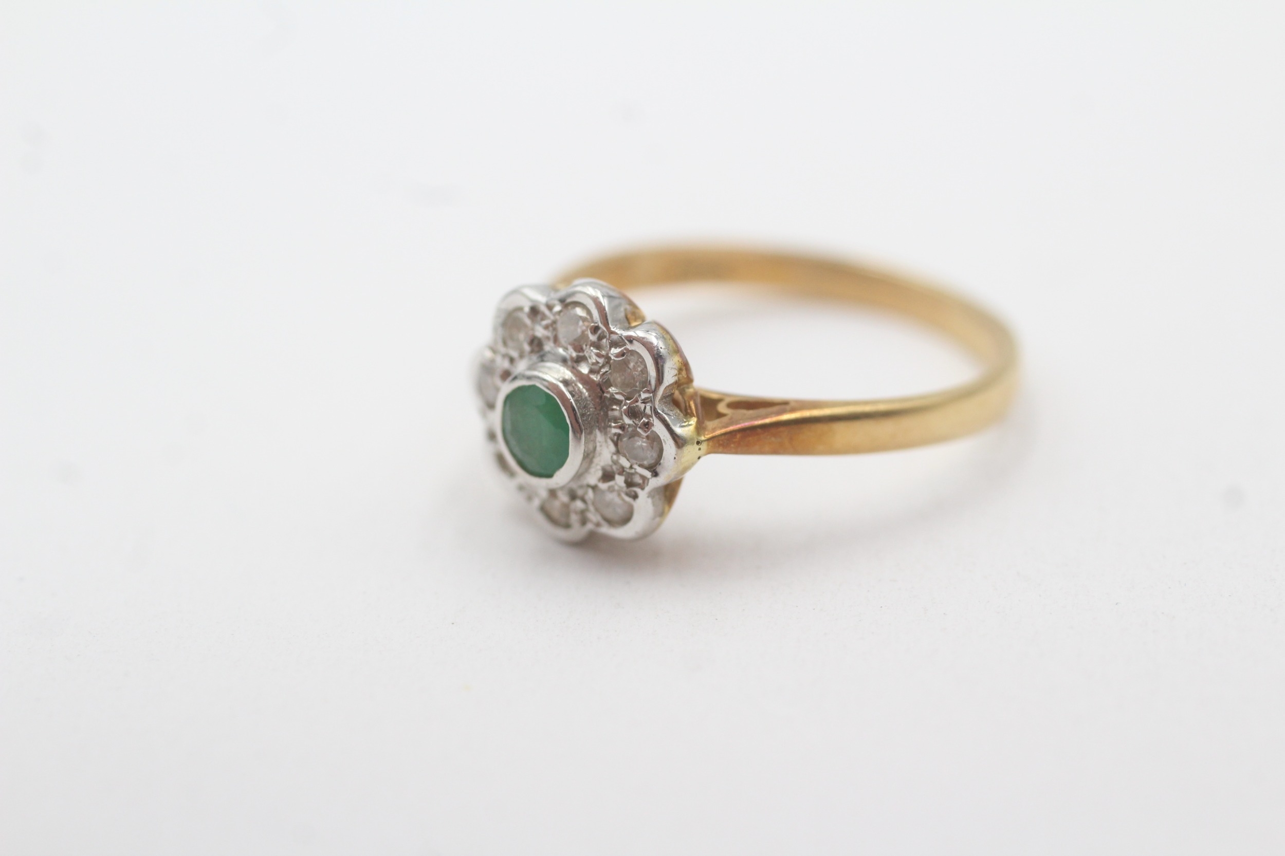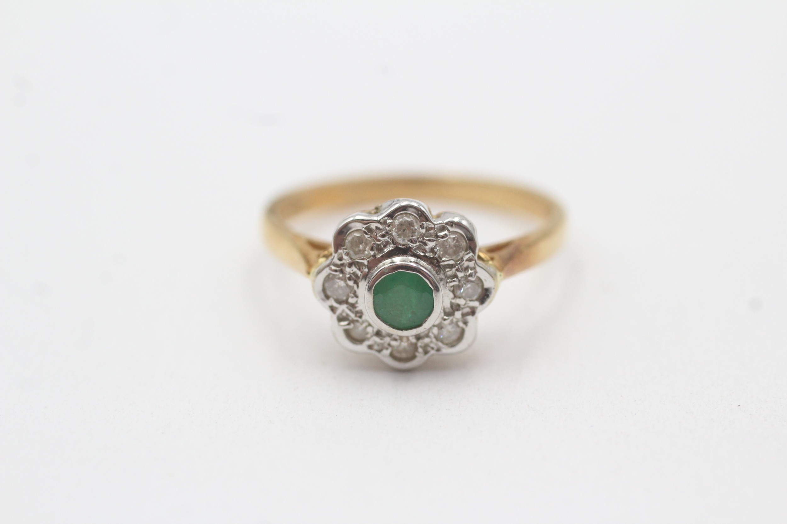 18ct gold diamond emerald cluster ring (3.2g) Size N