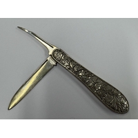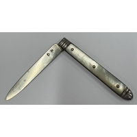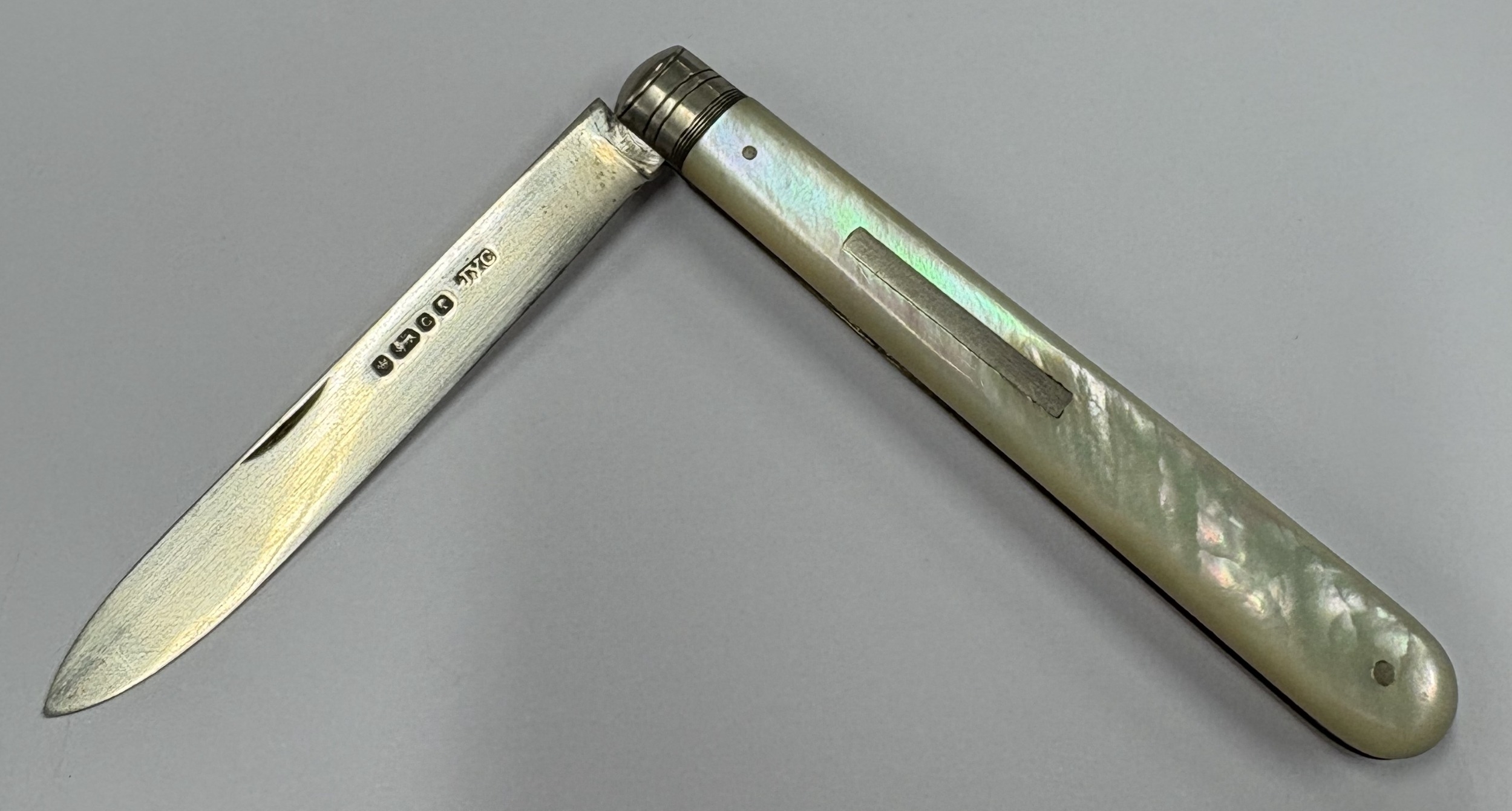 A large Victorian silver and MOP travelling knife. Sheffield 1870. By John Yeomans Cowlishaw. Approx. 28 grams. Est. £30 - £50.