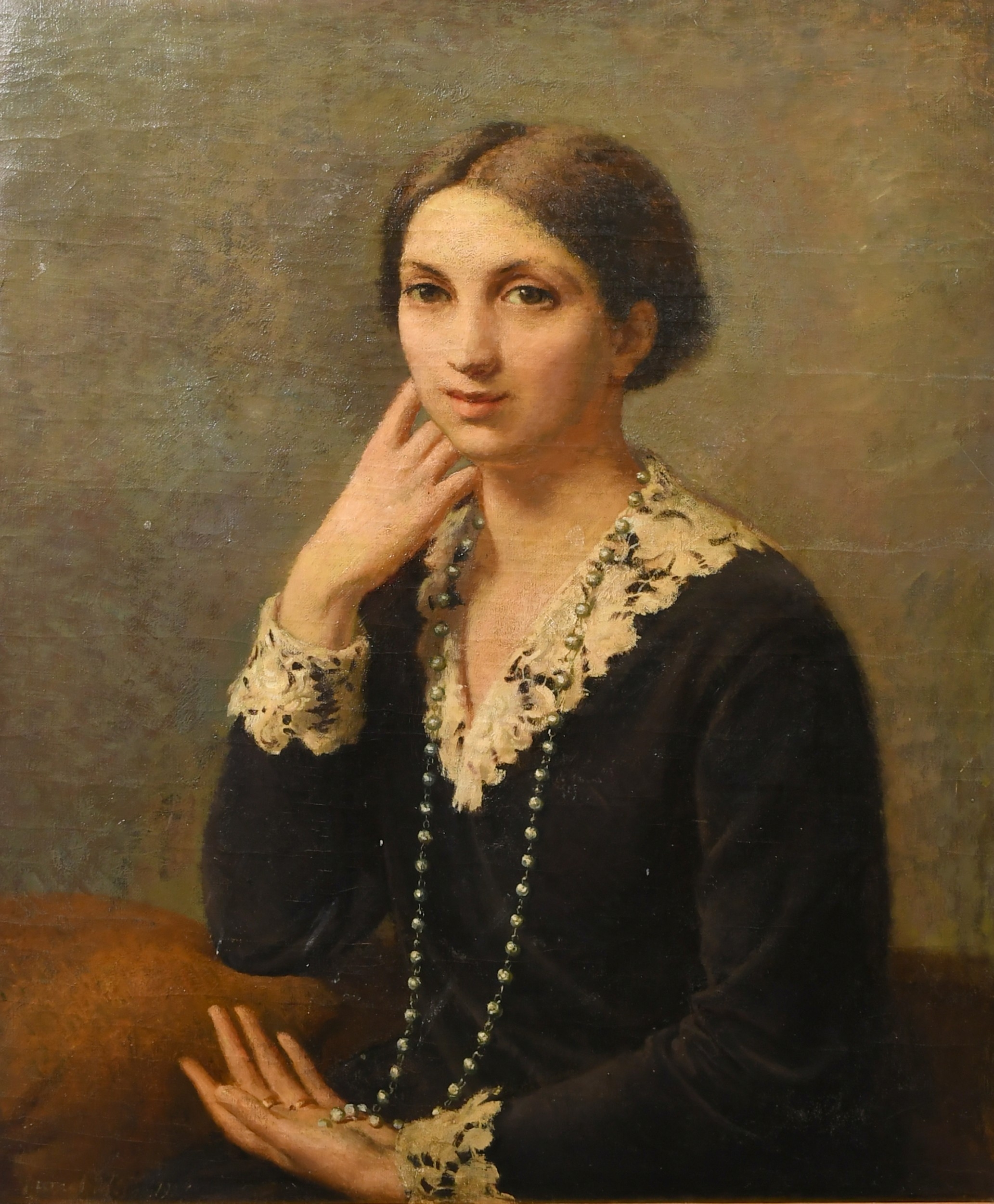 Lionel Ellis (1903-1988) British. Portrait of a Seated Lady, Oil on canvas, Signed and dated 1927, 30" x 25" (76.2 x 63.5cm)