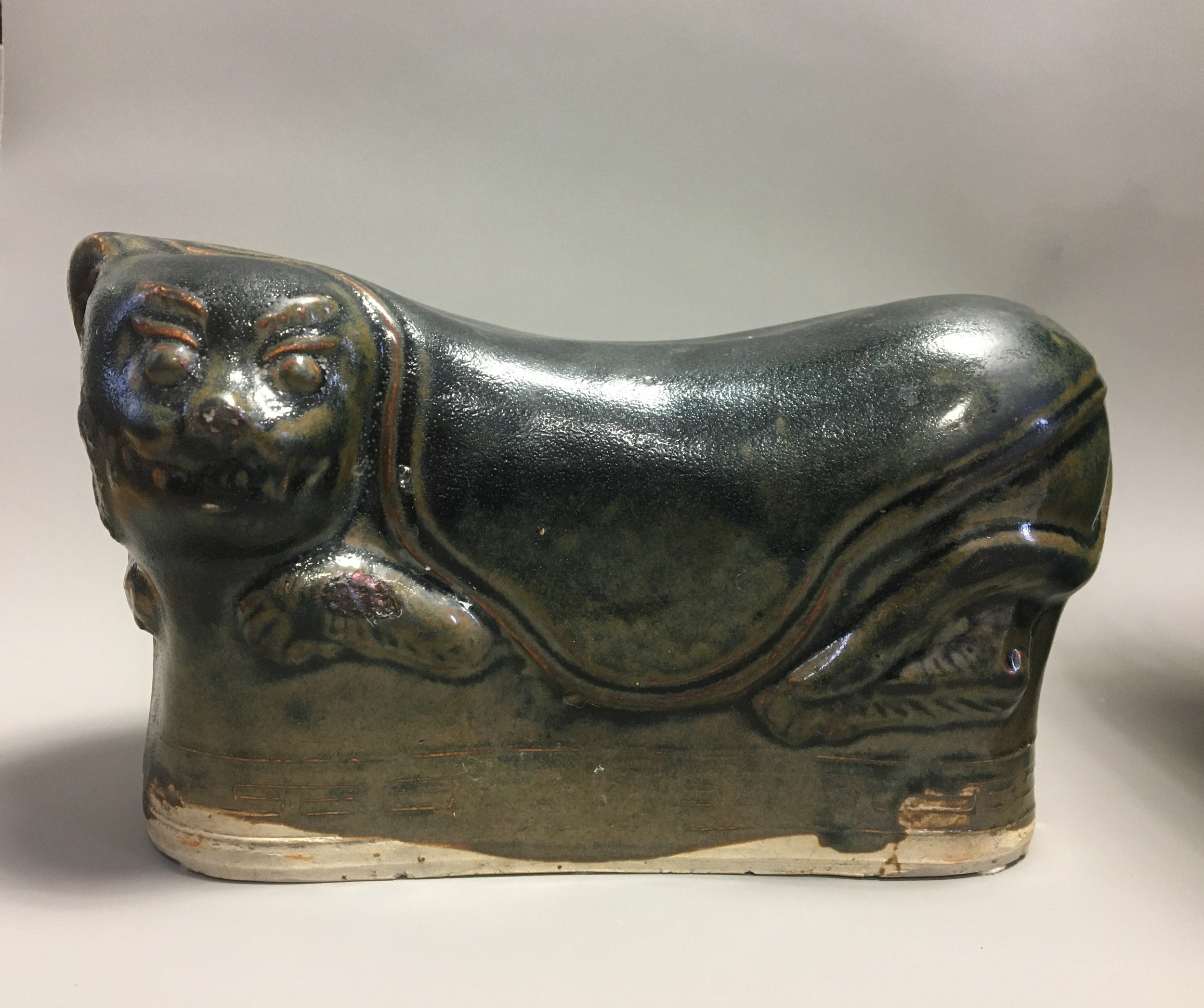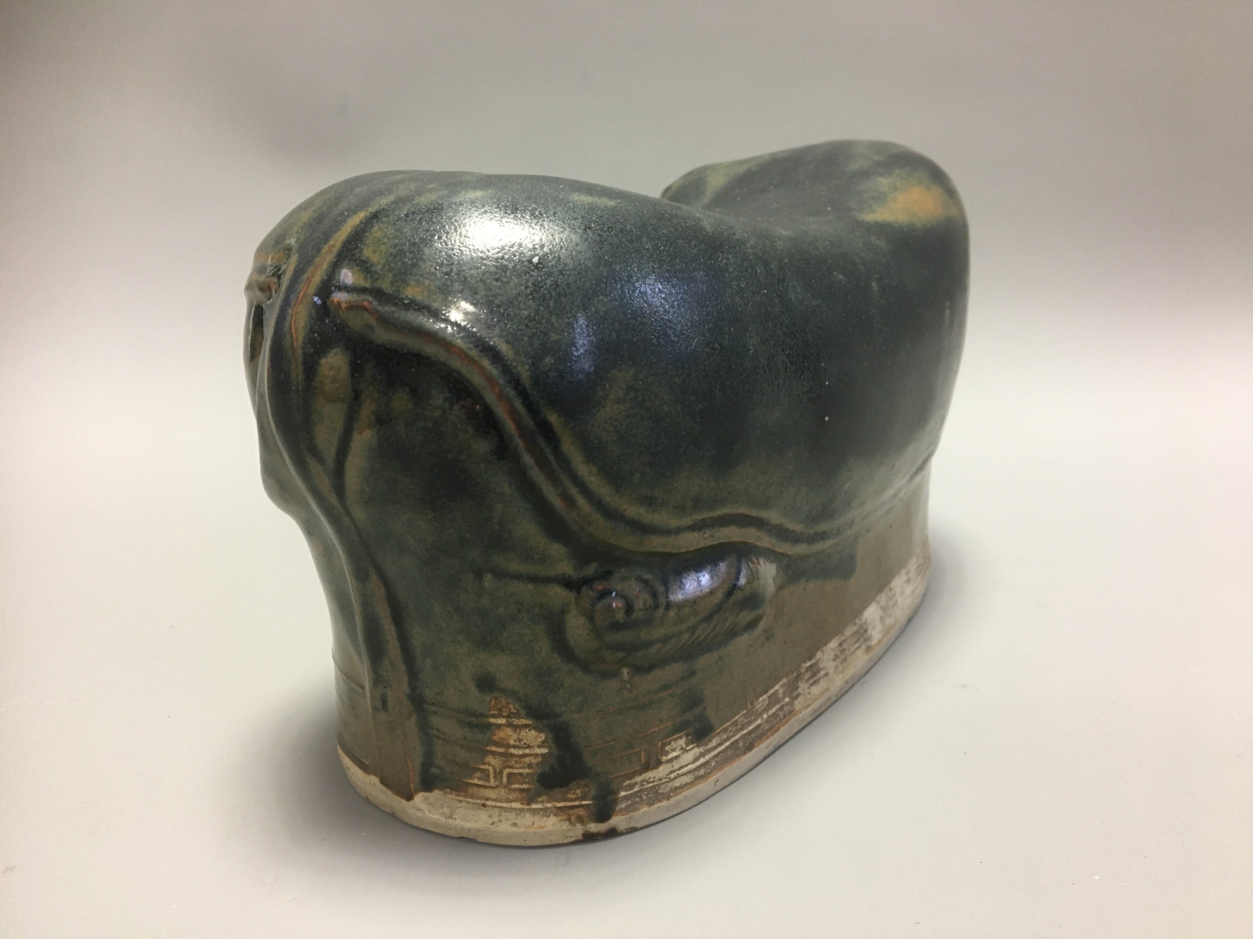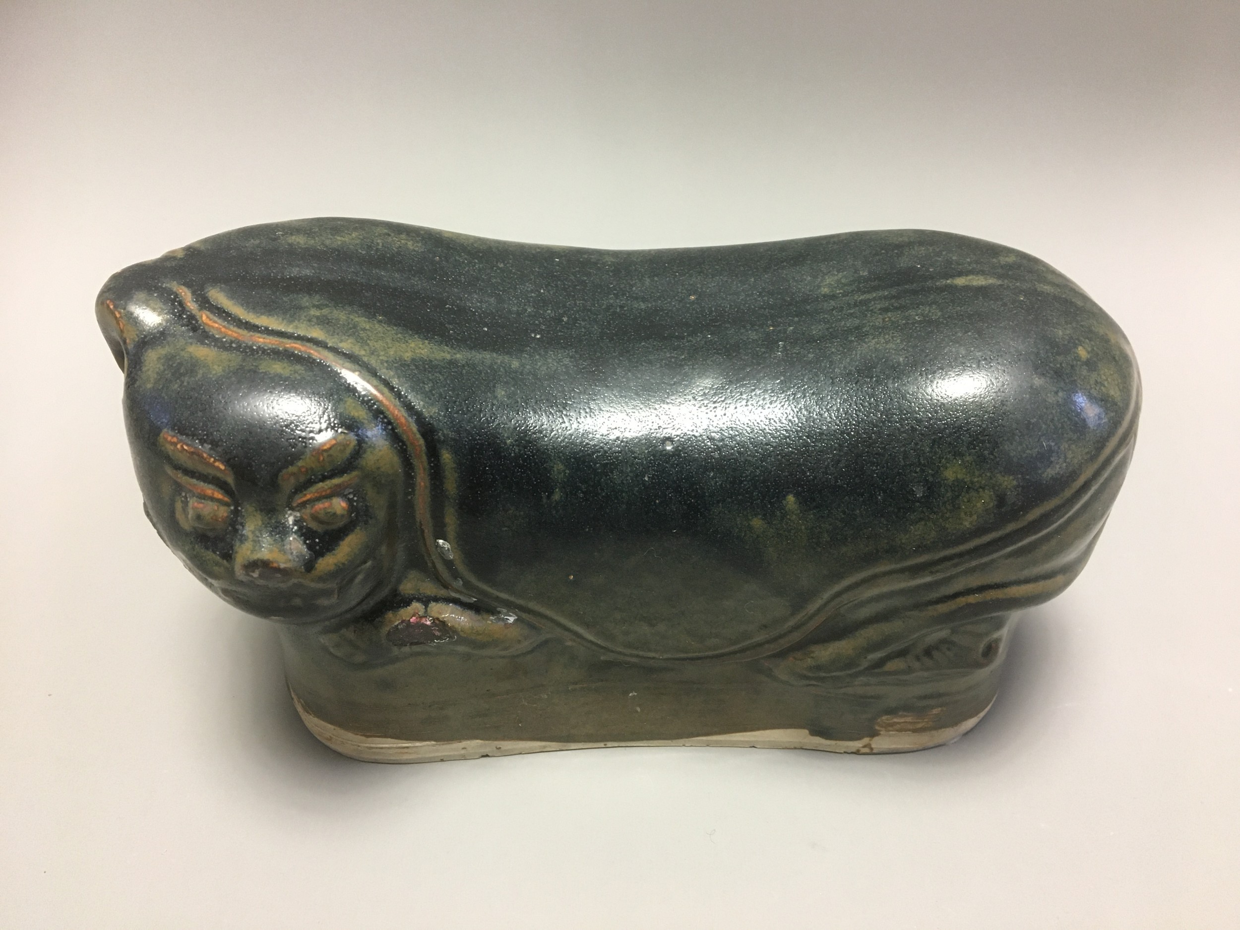 Chinese - AN EARLY CHINESE BLACK GLAZED POTTERY PILLOW possibly Tang Dynasty, formed as a recumbent beast.