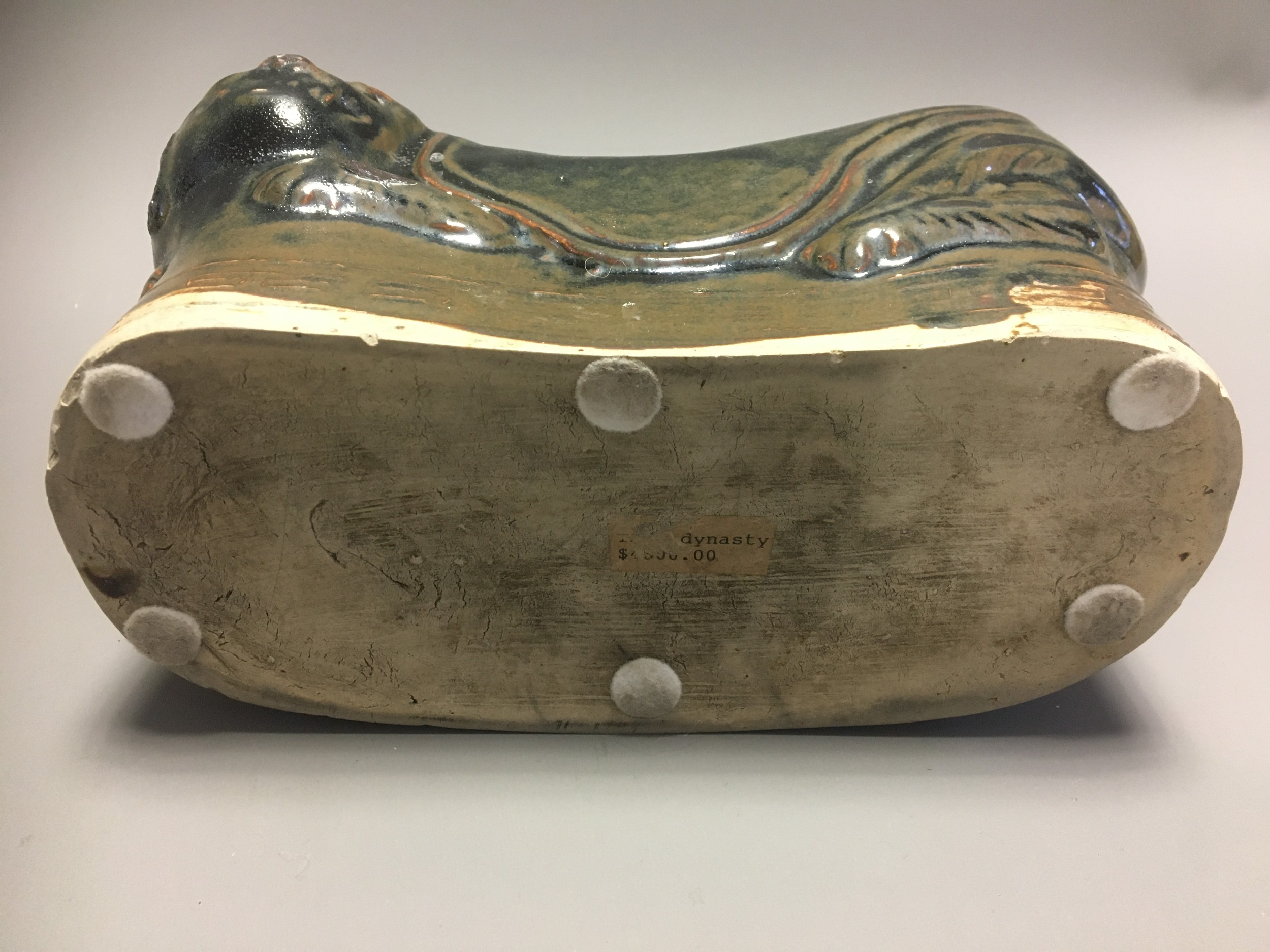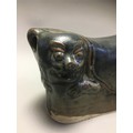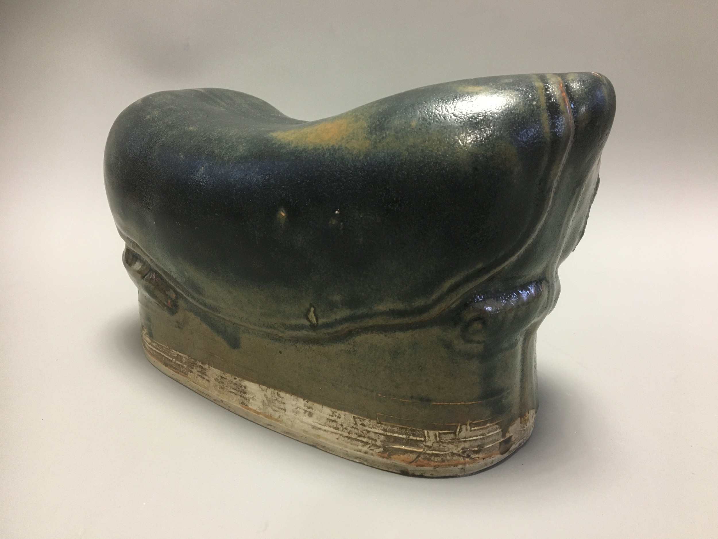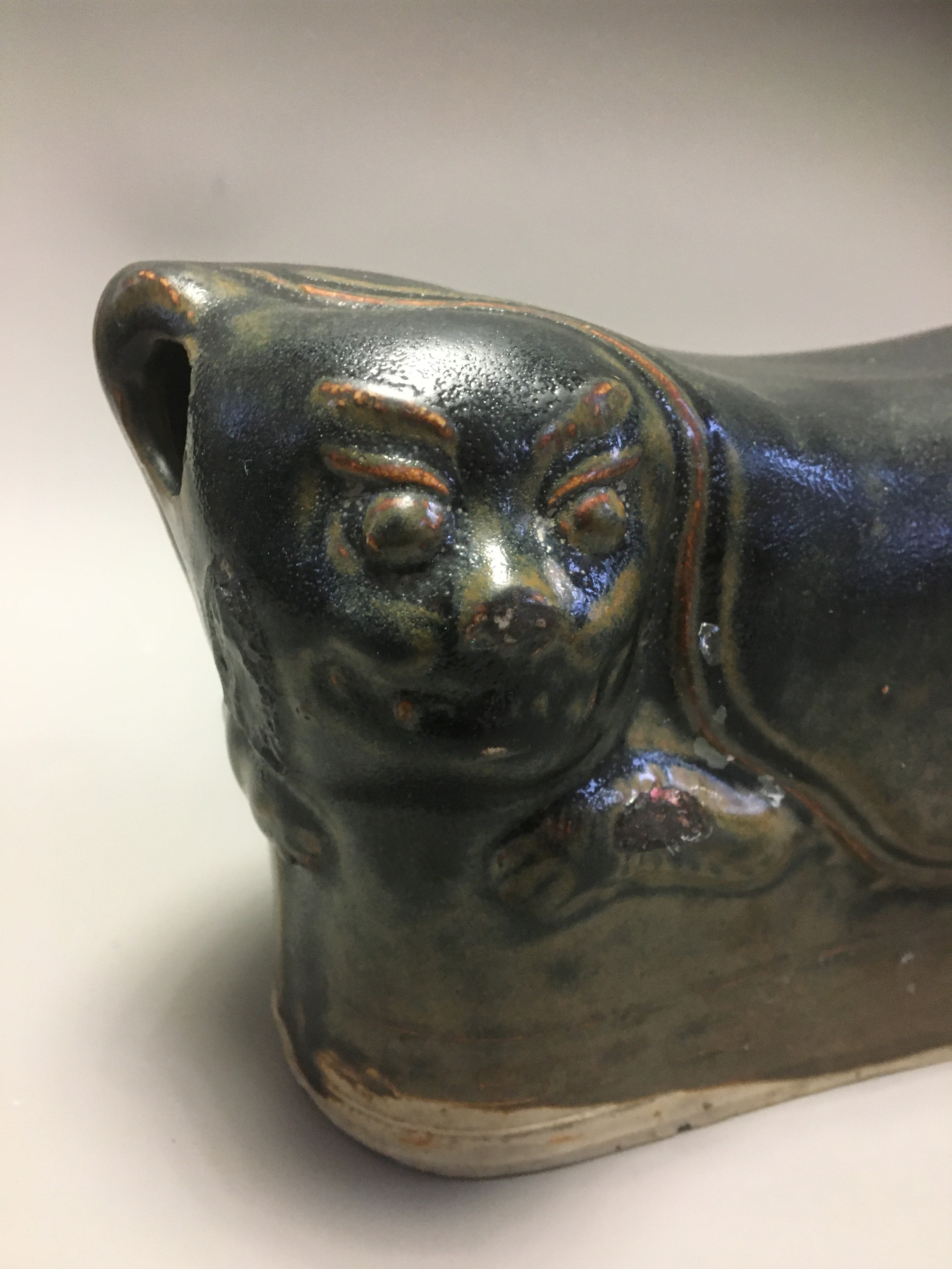 Chinese - AN EARLY CHINESE BLACK GLAZED POTTERY PILLOW possibly Tang Dynasty, formed as a recumbent beast.
