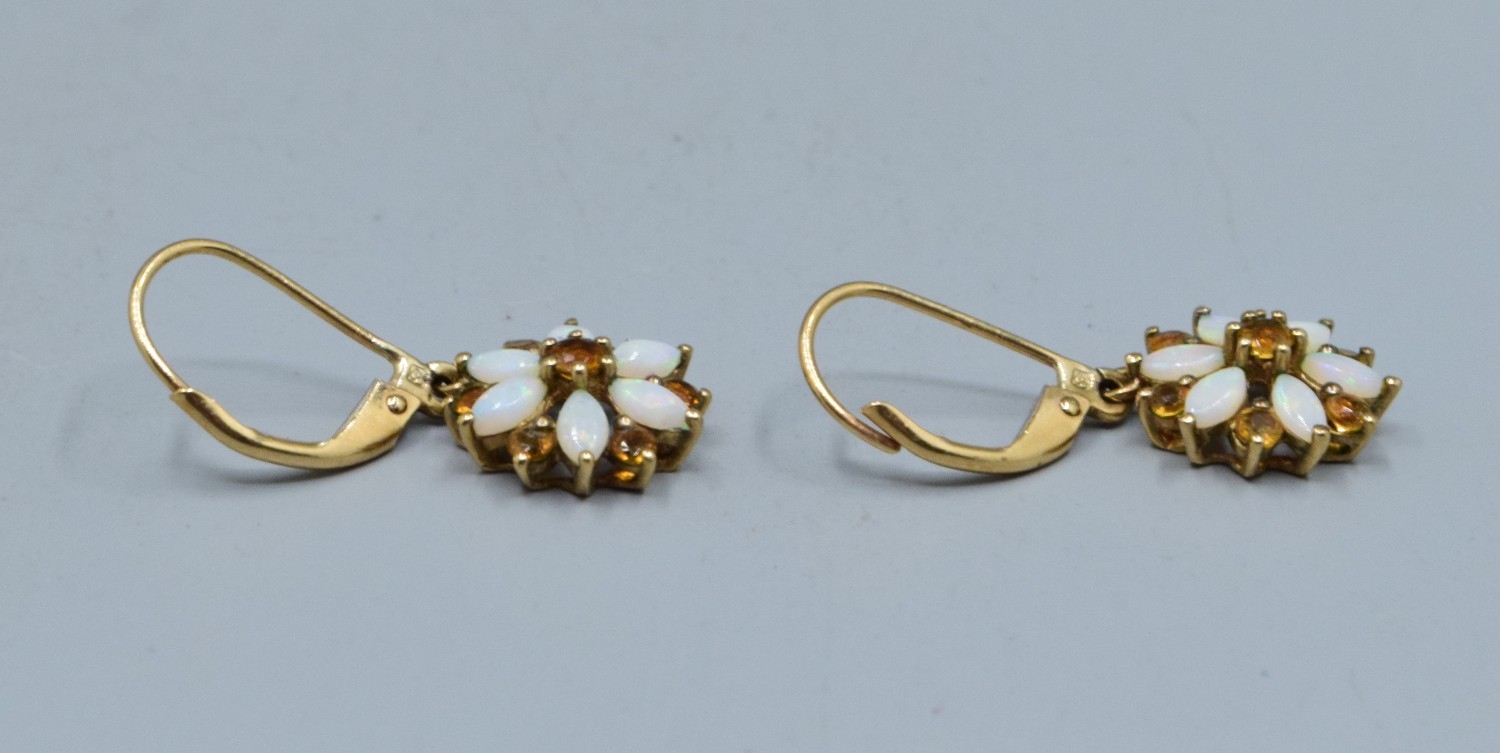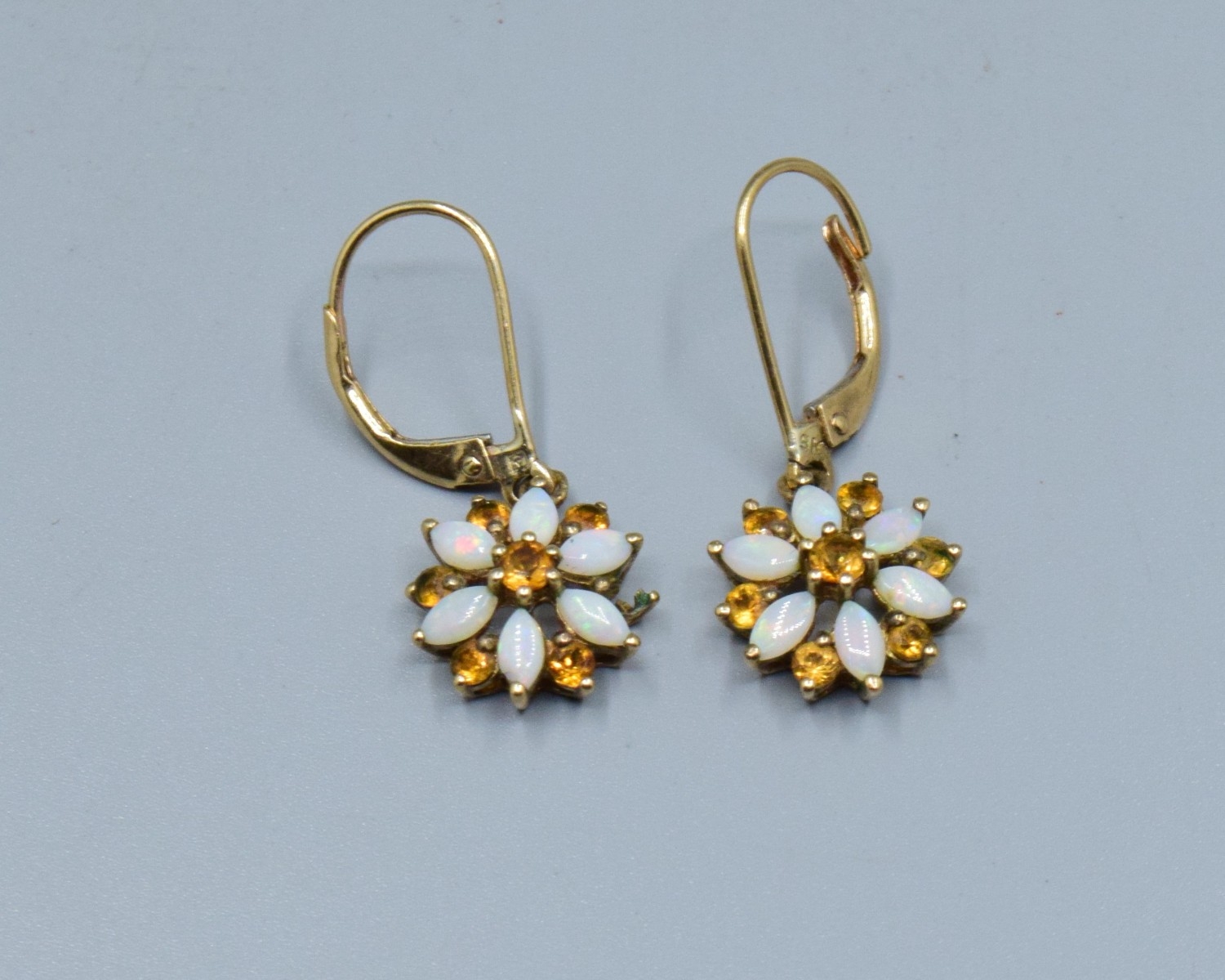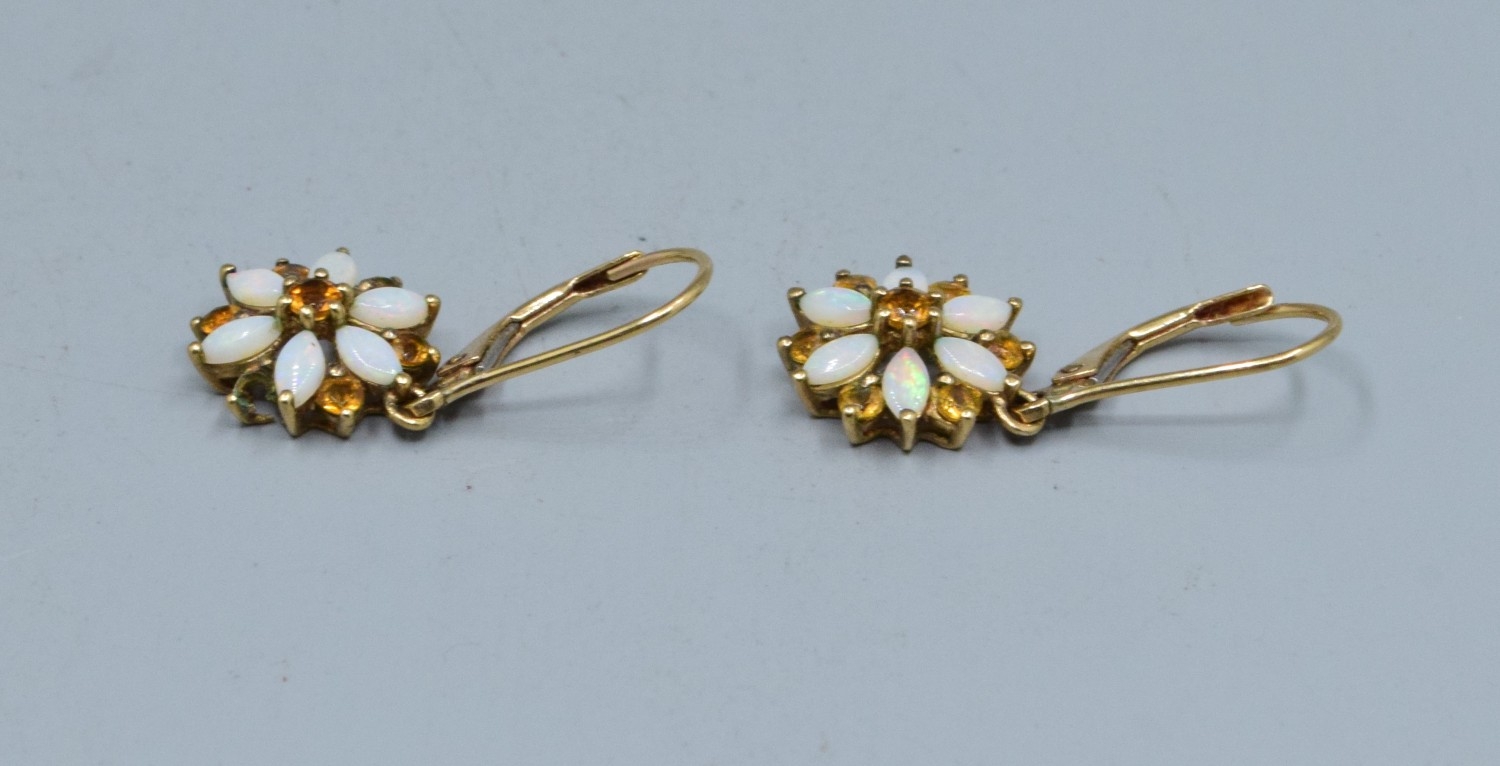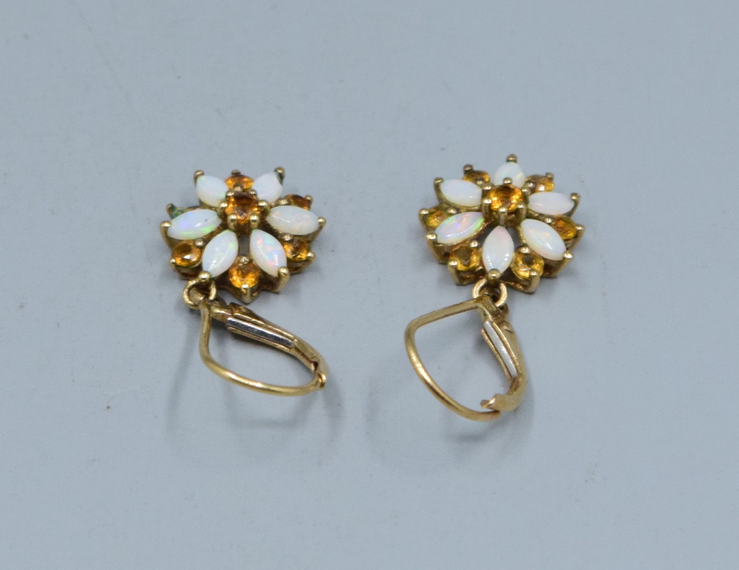 9ct gold ladies vintage Opal and Citrine star shape clip on earrings held in a claw design the earring is 11mm in diameter (please note one very small stone missing)
